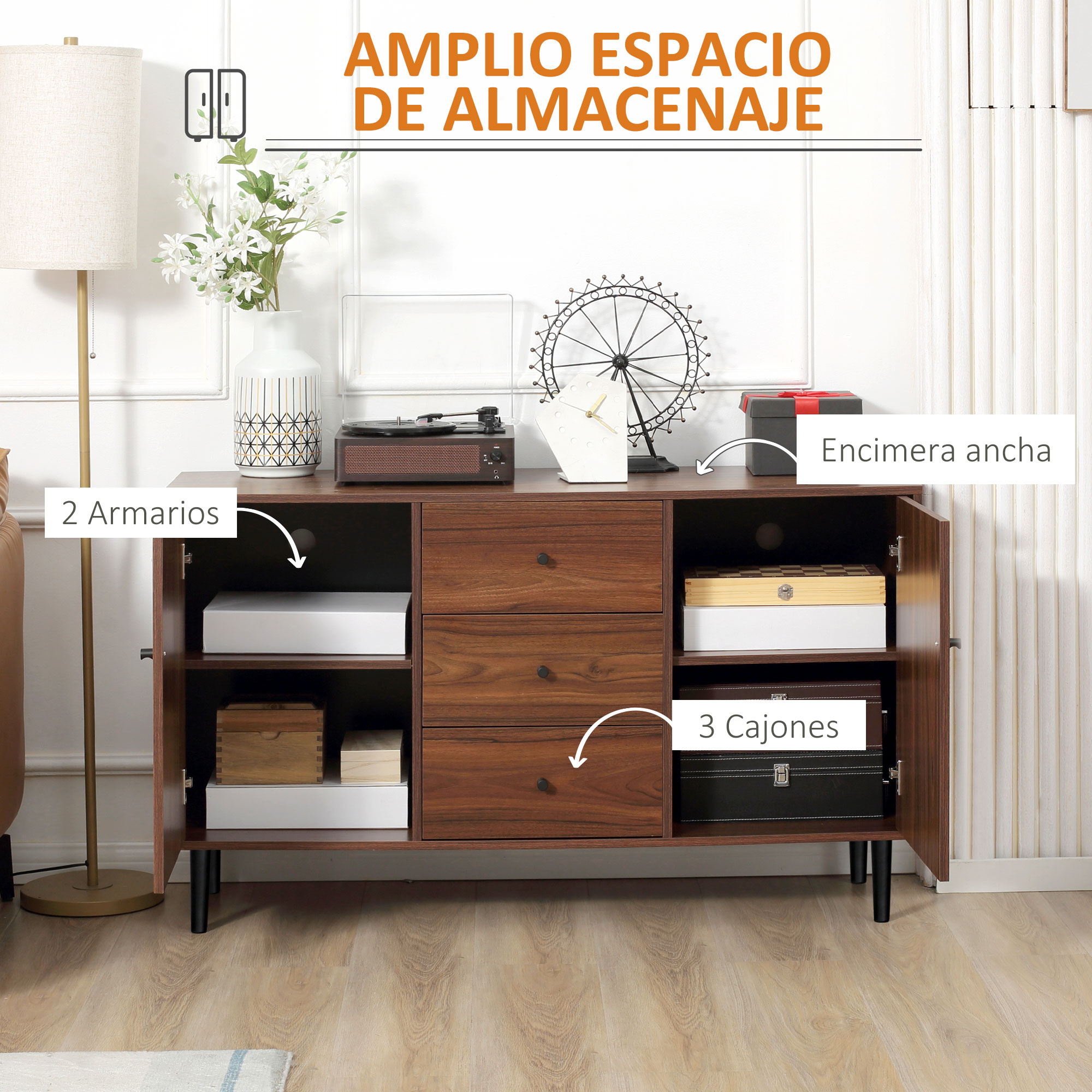 HOMCOM Aparador de Salón Aparador Buffet Moderno Mueble Auxiliar de Cocina con 2 Puertas y 3 Cajones para Comedor Dormitorio Oficina 127x40x76 cm Marrón
