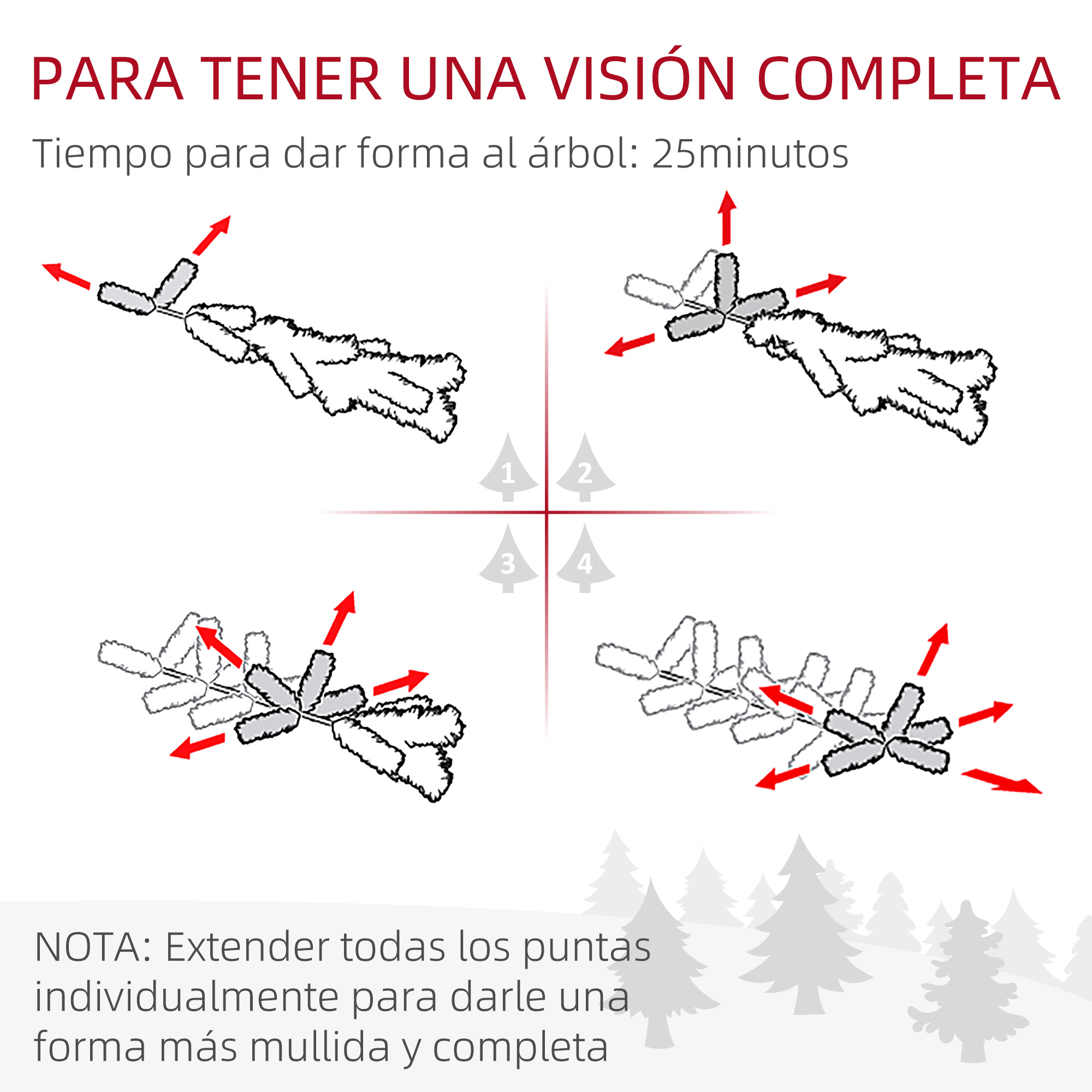 Este árbol de Navidad de aspecto natural y realista de HOMCOM te ofrece un ambiente navideño sin complicaciones. Pasar tiempo con los amigos y la familia es lo más importante en Navidad, y tu árbol es algo que no debería costarte demasiado trabajo montar y decorar. Con este precioso árbol de Navidad de 180 cm conseguirás que tu Navidad luzca increíble. Como es fácil de montar y desmontar, ¡en solo unos minutos tendrás un decorado impecable listo para las fiestas! Características: Árbol de Navidad artificial de 150 cm con un aspecto natural y realista Ramas con puntas de pino, creando la apariencia de un árbol de verdad Decoración festiva de interior que nunca se desvanece ni se marchita, sin mantenimiento Diseño estilizado para adaptarse perfectamente en espacios pequeños o entradas Montaje rápido gracias a su diseño de secciones articuladas Las ramas retardantes de llama mejoran la seguridad cerca de luces y calefactores Los pies metálicos robustos garantizan estabilidad y un apoyo firme Se requiere montaje Especificaciones: Color: verde Material: plástico, metal Medidas totales: Ø80×180 cm (DxAL) Número de puntas: 528 Referencia: 830-859V01GN Nota: Solo para uso interior, no apto para uso exterior. Para conseguir un aspecto más realista, hay que extender todas las puntas individualmente, lo que supone aproximadamente 25 minutos para dar forma al árbol El paquete incluye: ● 1 x Árbol de Navidad; ● 1 x Manual de instrucciones