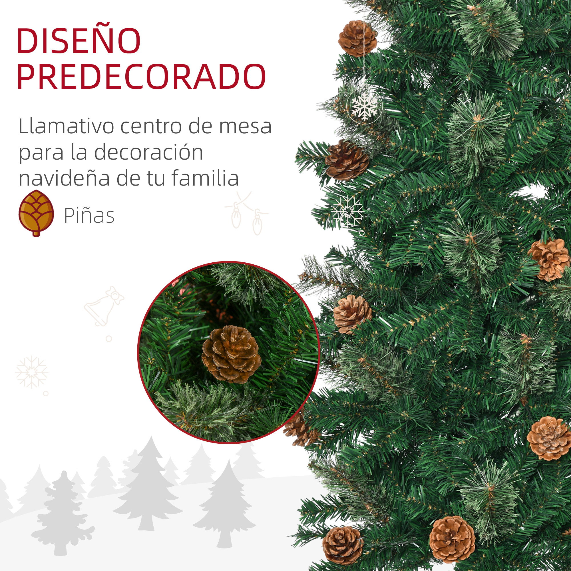 HOMCOM Árbol de Navidad Grande 225 cm Árbol de Navideño de 706 Ramas Árbol de Navidad Estrecho Forma de Lápiz con 56 Piñas Base Plegable Verde