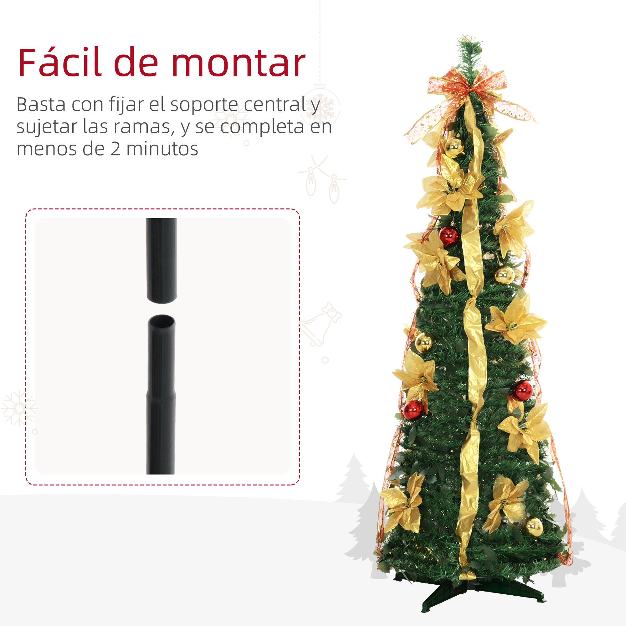 HOMCOM Árbol de Navidad 180 cm Árbol de Navidad con Luces LED Árbol de Navidad Artificial Plegable con Adornos Pre-instalados Árbol Navideño para Interior Verde