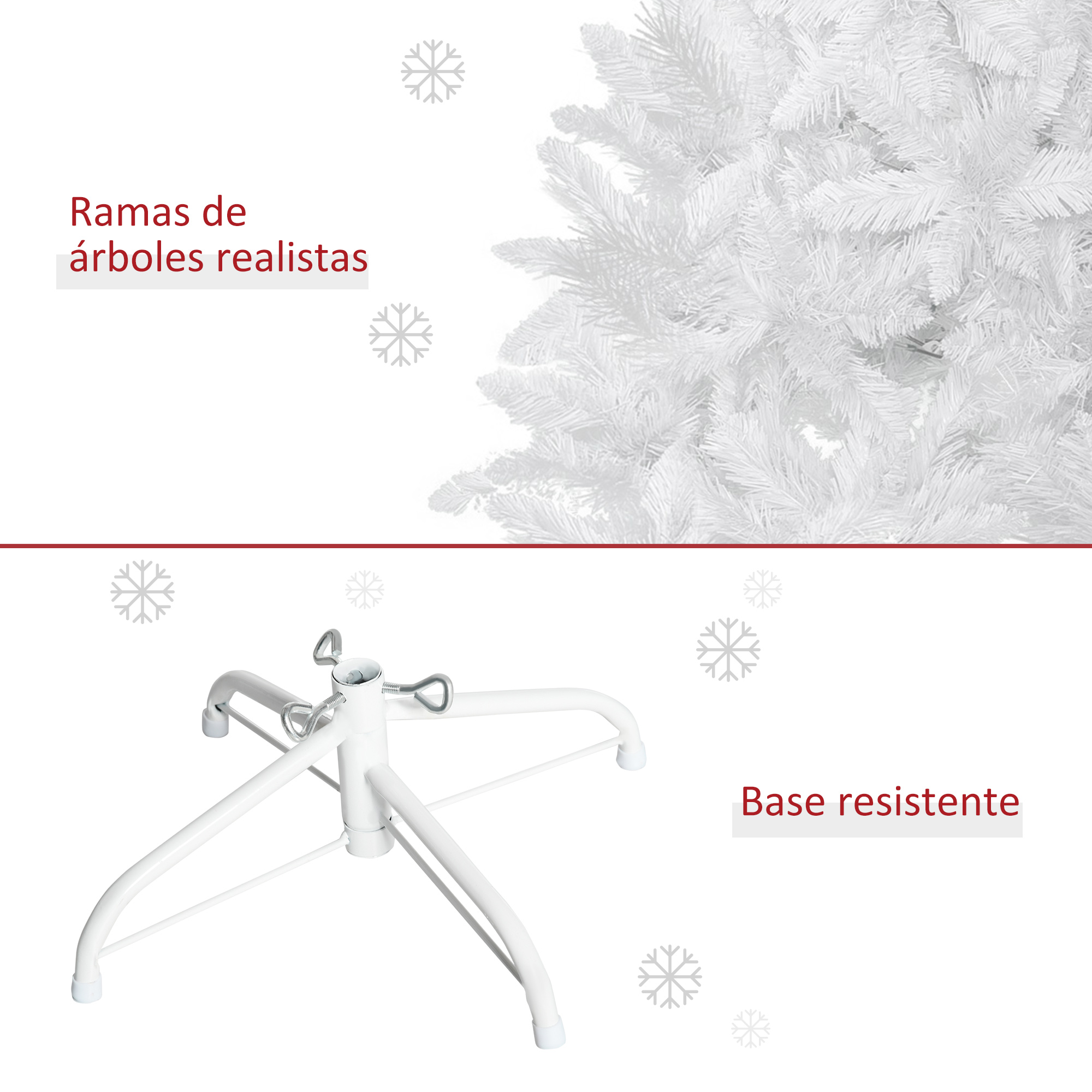 HOMCOM Árbol de Navidad Artificial Plegable 180 cm con 550 Ramas Hojas de Plástico de Apertura Fácil y Patas de Soporte Metálicas Decoración Navideña para Interiores Blanco