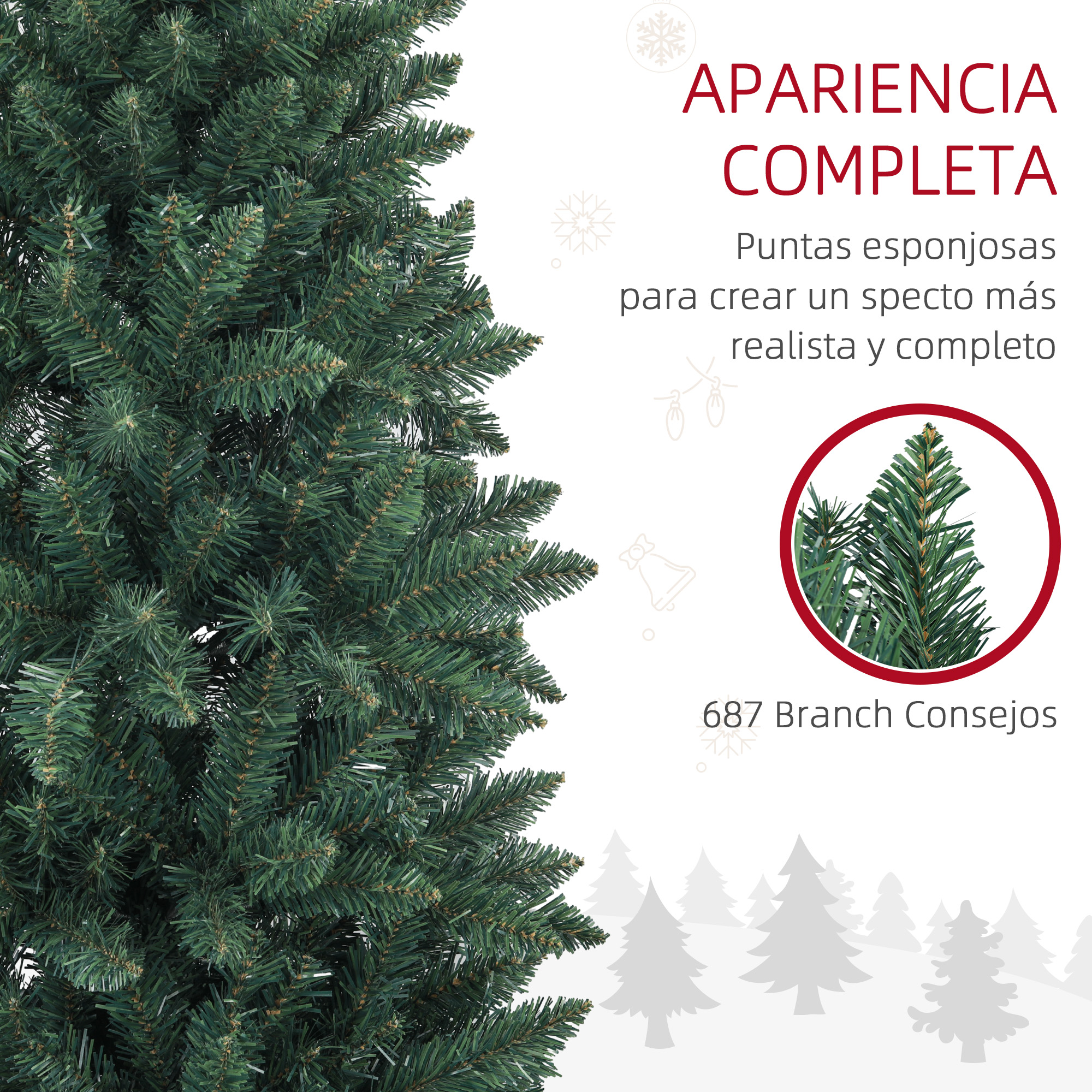Lleva el encanto navideño a cualquier espacio con este árbol de Navidad slim de 210 centímetros de HOMCOM. Ideal para hogares, oficinas o sitios pequeños, este árbol tipo lápiz es perfecto para pasillos y rincones estrechos. Con ramas ignífugas y una base metálica plegable, garantiza seguridad y estabilidad durante toda la temporada navideña. Características: Árbol de Navidad artificial de 210 cm con un aspecto natural y realista Gracias a su forma estilizada en forma de lápiz, no ocupará tanto espacio en el suelo, ideal para habitaciones pequeñas o con poco espacio, pasillos y más Las ramas y ramificaciones de aspecto realista añadirán un ambiente navideño perfecto Base de metal resistente ideal para un uso prolongado Este árbol de Navidad solo para uso en interiores, no apto para uso en exteriores Requiere un montaje sencillo y rápido Especificaciones: Color: verde Material: metal y plástico Medidas totales: Ø75×210 cm (DxAL) Número de ramas: 687 Referencia: 830-846V02GN Nota: Para conseguir un aspecto más realista, hay que extender todas las puntas individualmente, lo que supone aproximadamente 30 minutos El paquete incluye: ● 1 x Árbol de Navidad; ● 1 x Manual de instrucciones