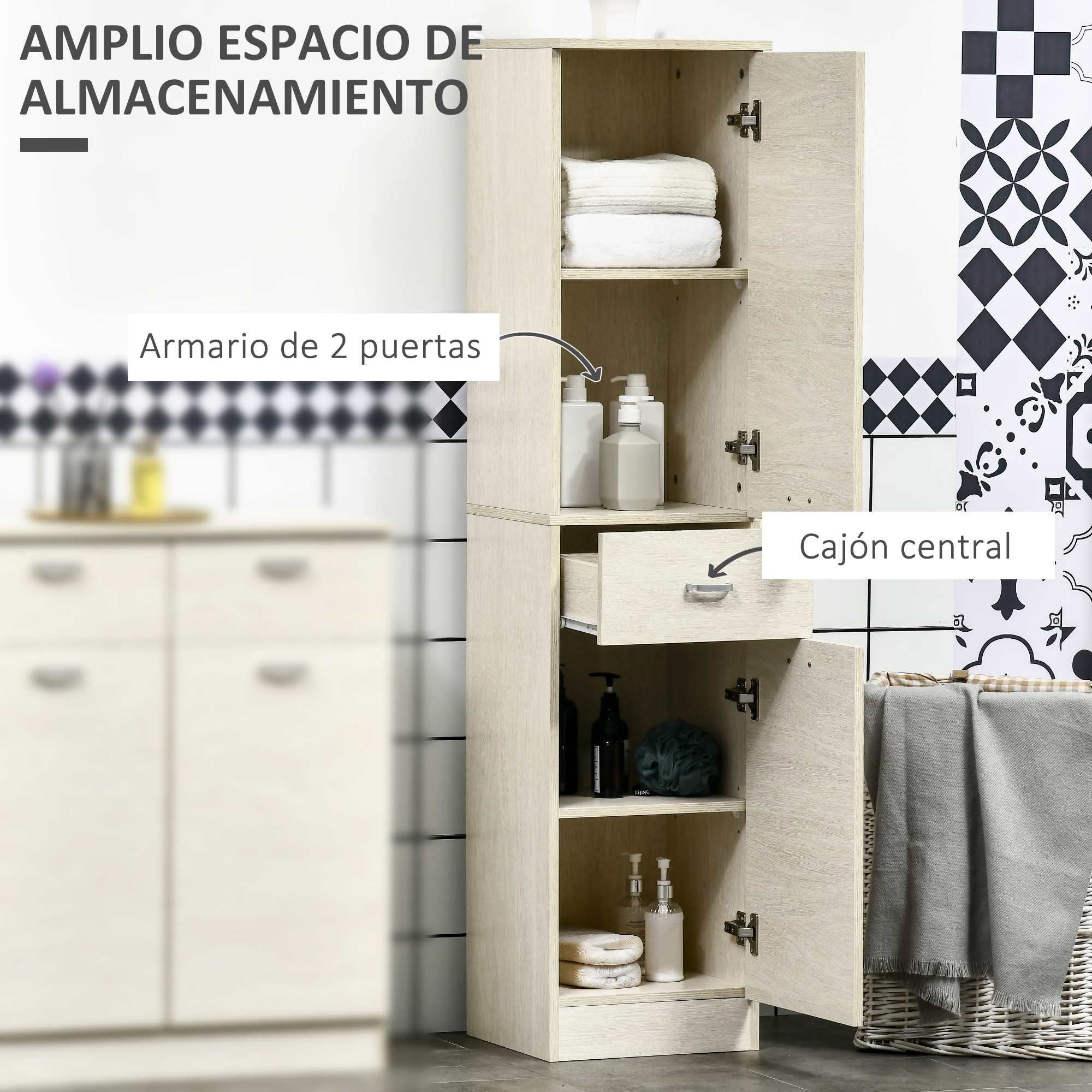 HOMCOM Armario Alto de Baño con 1 Cajón 2 Puertas y Estantes Interiores Ajustables Columna Auxiliar de Baño para Baño Salón Antivuelco 34x34x150 cm Natural