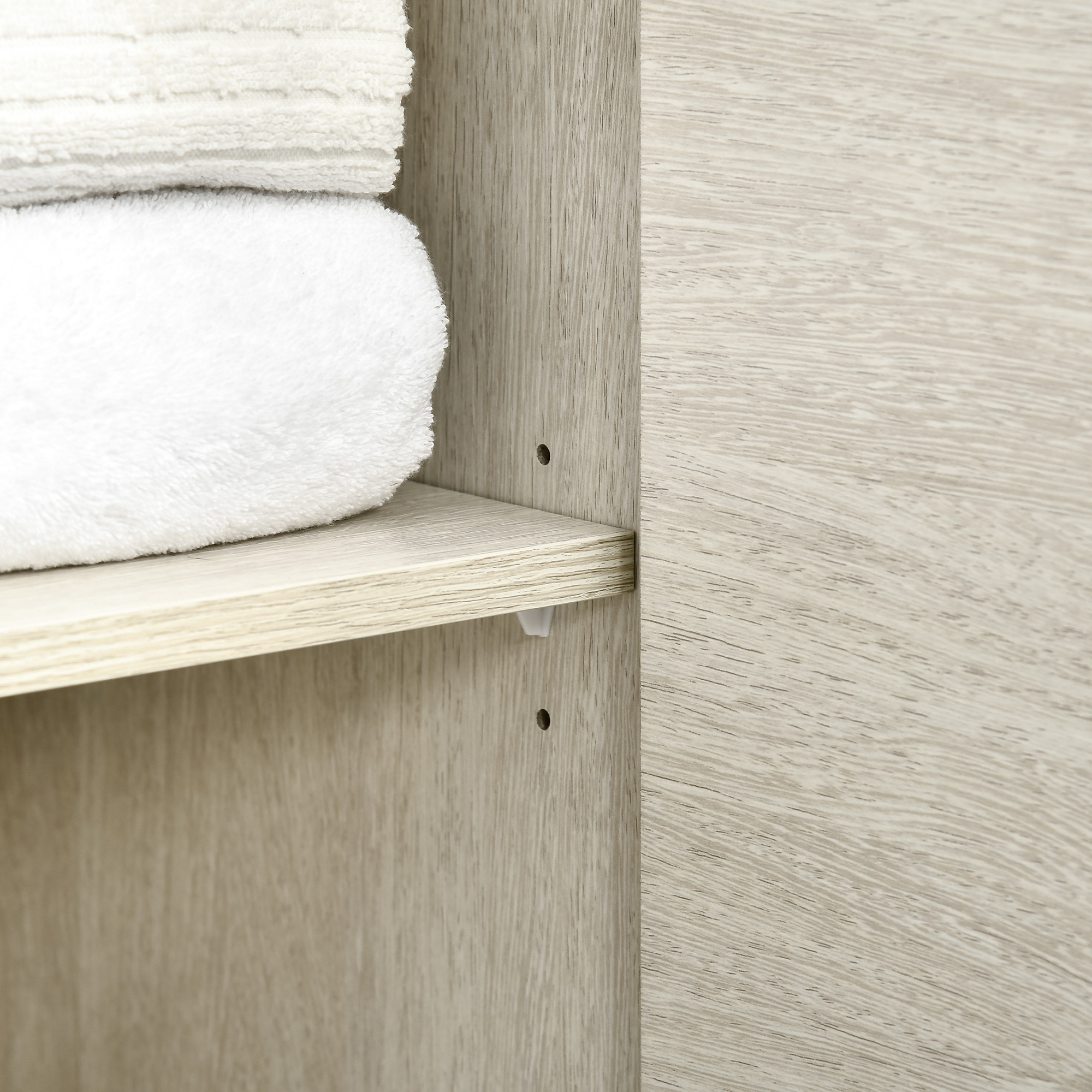 ¿Necesitas algún mueble auxiliar que te proporcione espacio de almacenamiento extra? Los muebles tipo columna son ideales porque son estrechos y aprovechan en altura. Este mueble para baño de HOMCOM, tiene una altura de 1,5 metros y cuenta con 2 puertas que ofrecen 4 estantes y un cajón en medio. Ideal para tener en la cocina como alacena, como columna de baño o como mueble supletorio en tu estudio. ¡Tú eliges! Características: Armario de dos puertas con espacio de 4 niveles y un cajón central Cada compartimento con puerta dispone de un estante interior ajustable en altura en 3 posiciones Mueble tipo columna con estructura resistente de melamina de madera Mueble multifuncional ideal para cocina, baño, sala de estar, estudio, etc. Dispone de un sistema antivuelco de seguridad para fijar a la pared y evitar que el mueble vuelque o se tambalee Los tiradores de metal facilitan la apertura y el cierre de las puertas y el cajón Requiere montaje Especificaciones: Color: madera natural Material: melamina de madera Medidas totales: 34x34x150 cm (LxANxAL) Medidas de los estantes: 31×29,6 cm (LxAN) Medidas del interior del cajón: 25,5×23,5×8,5 cm (LxANxAL) Carga máxima: 30 kg (total) y 3 kg (cada estante) Referencia: 838-207 El paquete incluye: ● 1 x Mueble de cocina; ● 1 x Manual de instrucciones