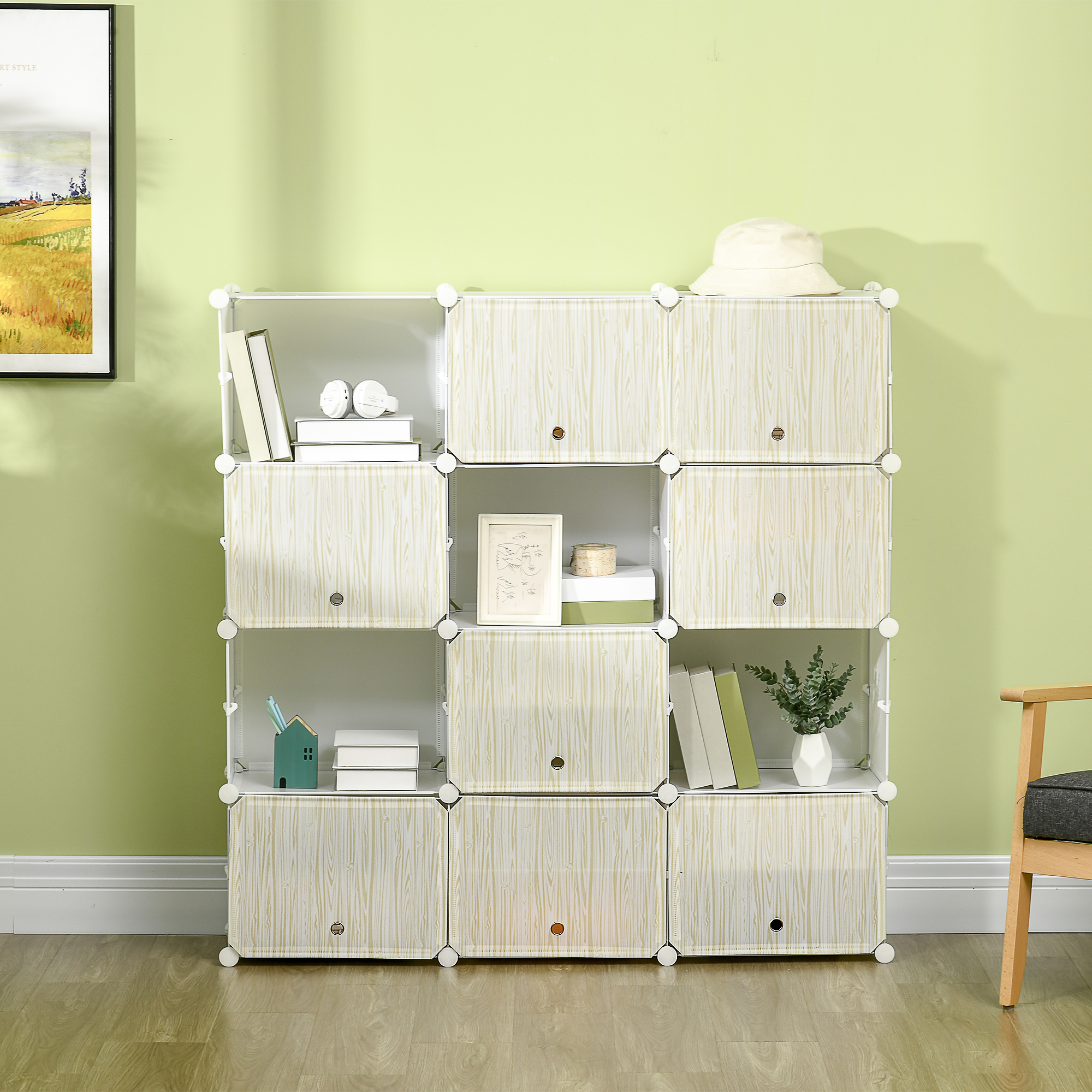 HOMCOM Armario Modular de Plástico Cajas de Zapatos con 12 Cubos Zapatero Organizador para Entrada Pasillo Dormitorio 125x32x125 cm Blanco y Natural