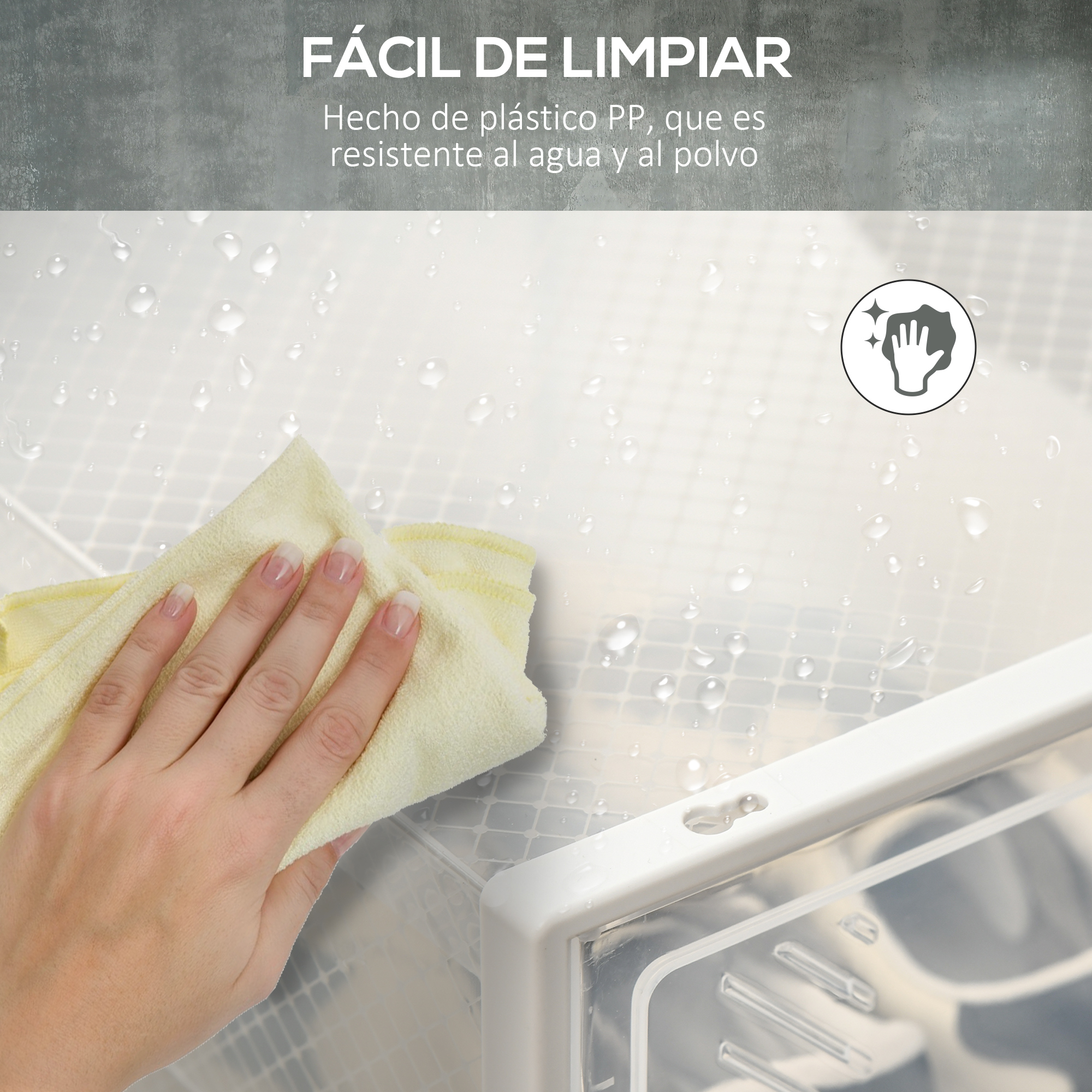 ¿Estás cansado de tener tus zapatos siempre a la vista y desorganizados? ¡Este zapatero modular de HOMCOM es perfecto para tu hogar! Fabricado en plástico resistente, esta estantería modular de 8 cubos es personalizable y se adapta a cualquier espacio y entorno. Además, también se puede utilizar para organizar libros, juguetes, entre otros. ¡Es la solución de almacenamiento perfecta para tu hogar! Características: Se puede apilar de muchas maneras para adaptarse a tus gustos, necesidades y espacio disponible Hecho de plástico PP, que es duradero y fácil de mantener Los 8 cubos, ofrecen un amplio espacio para tus zapatos, con un tamaño máximo de 8,5(UK)/43(EU) Las puertas con asa y cierre magnético, protegen tus zapatos del polvo y son fáciles de abrir y cerrar Al ser las puertas transparentes, permite ver los zapatos y elegirlos desde fuera Los agujeros de ventilación en la parte trasera proporcionan una buena circulación de aire y hacen que los zapatos no huelan tanto Práctico para guardar zapatos, juguetes, cuentos y más Fácil de montar sin herramientas Especificaciones: Color: transparente y blanco Material: polipropileno (PP) Medidas de cada cubo: 25x35x19 cm (LxANxAL) Capacidad: hasta 8 pares de zapatos Talla máxima de calzado: 8,5 (UK) / EU43 Referencia: 850-173 El paquete incluye: ● 8 x Módulo para zapatos; ● 1 x Manual de instrucciones
