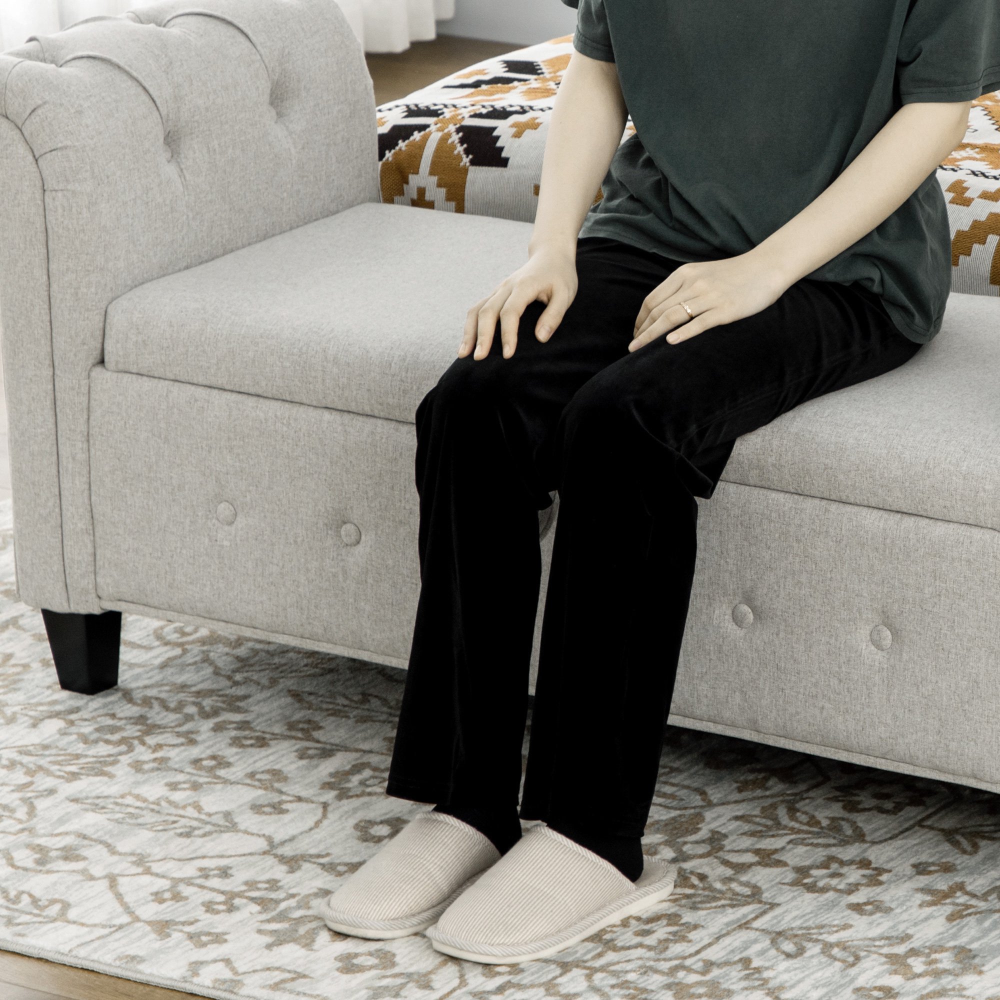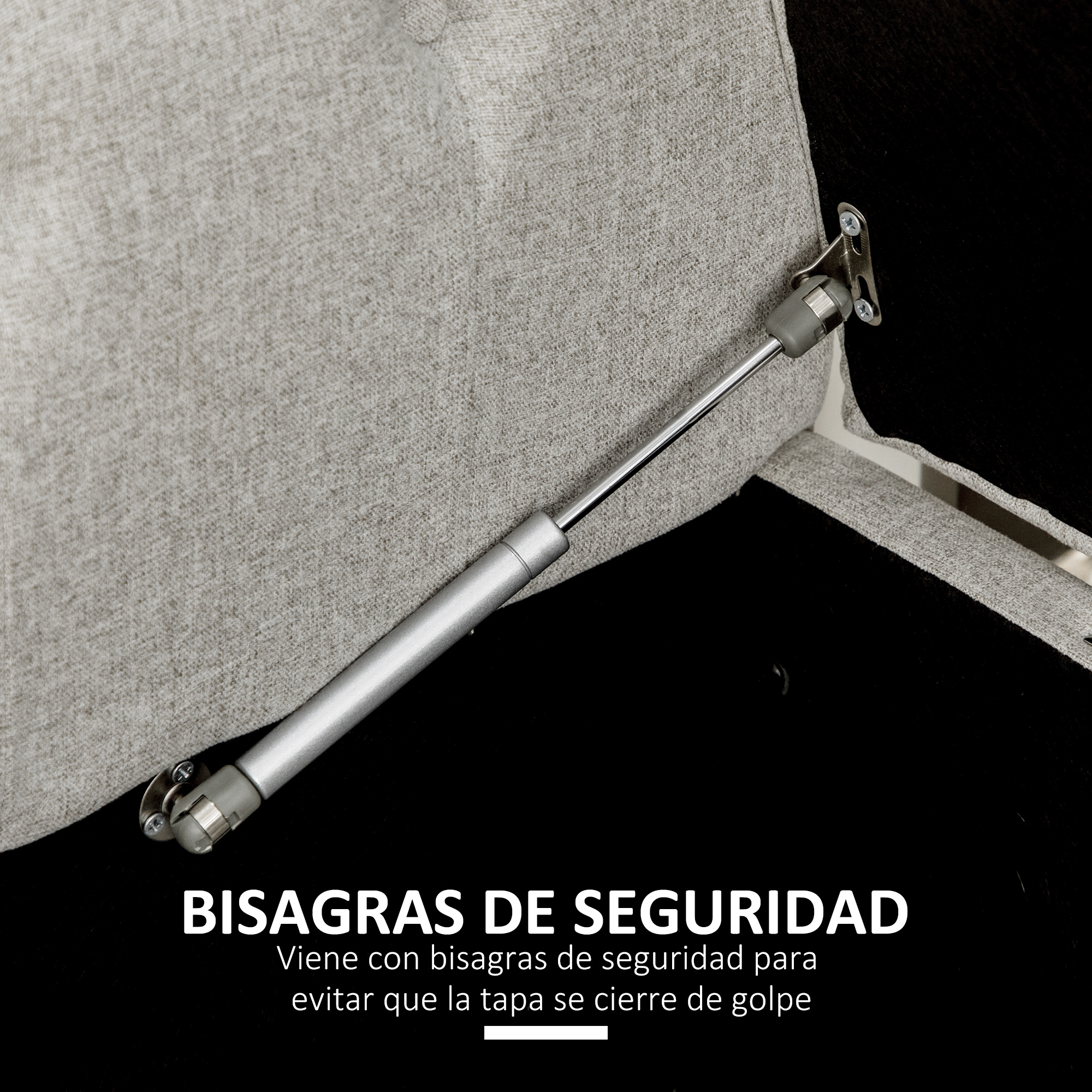 HOMCOM Banco de Almacenamiento Taburete de Almacenaje de Lino con Tapa de Bisagras Patas de Madera y Reposabrazos Enrollados para Dormitorio Salón Pasillo Carga 150 kg 146,5x49x74,5 cm Gris Claro