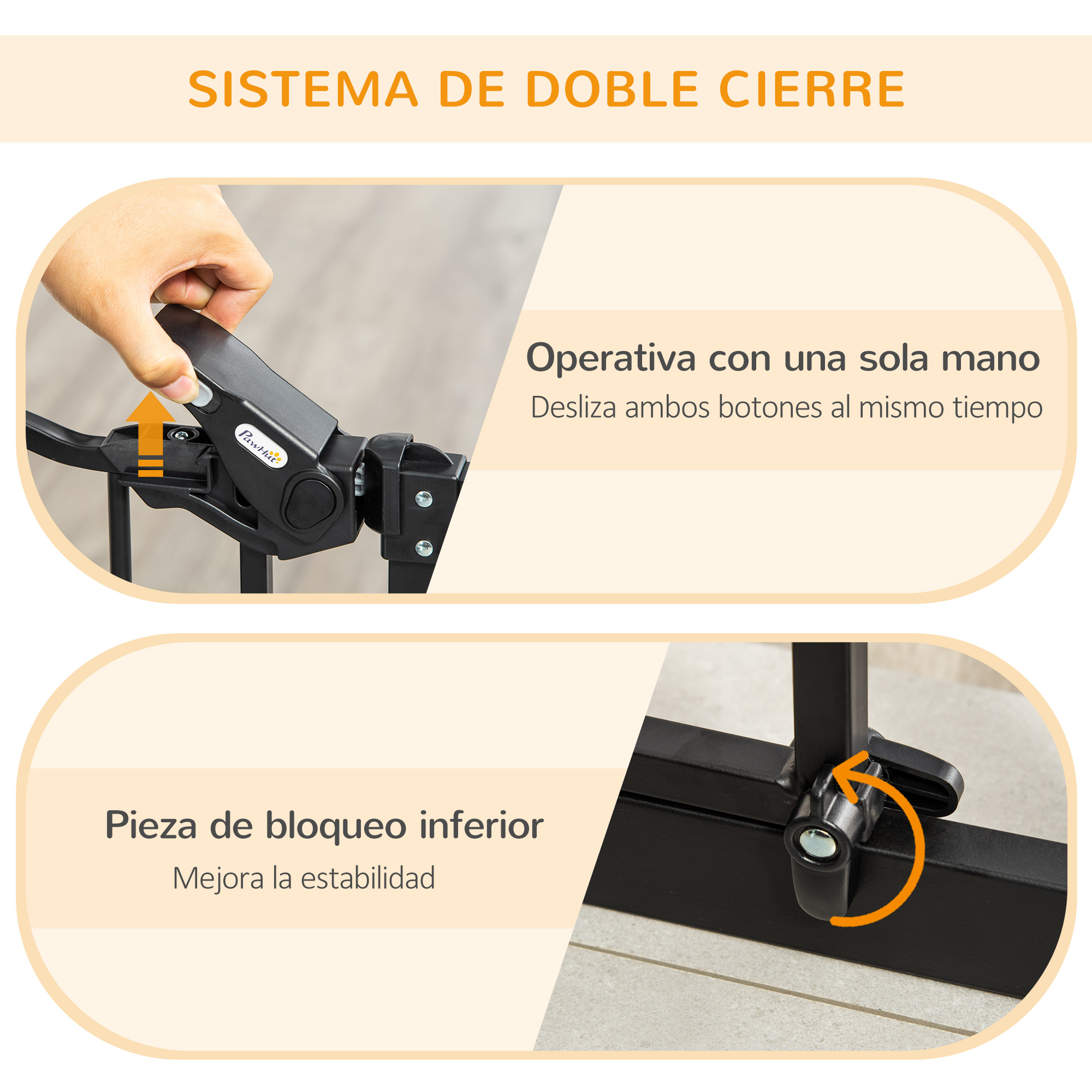 Si tienes mascotas en casa y necesitas limitar su espacio o protegerlas de las escaleras, esta barrera para mascotas de PawHut es ideal. Cuenta con una puerta con cerradura de sistema de cierre automático y una pequeña puerta para facilitar el paso de los animales de un lado a otro. Fabricada en acero, incluye 4 tornillos de ajuste para aberturas entre 74 y 101 cm de ancho, siendo perfecta para familias con mascotas. Características: El sistema de bloqueo doble asegura que tu mascota permanezca en un solo lugar, proporcionando la máxima seguridad Barrera de seguridad ideal para hogares con mascotas y adecuado para puertas, pasillos, escaleras, etc. La puerta se cierra automáticamente cuando el ángulo de apertura es inferior a 90° Cuenta con 2 cerraduras en la parte inferior para determinar la dirección de apertura de la puerta Fácil acceso mediante el pestillo en la parte superior, que se puede abrir con una sola mano Barrera para perros con estructura de acero con superficie tratada sin plomo para mayor resistencia y durabilidad Por favor, mide tu abertura antes de comprar el producto para asegurar su compatibilidad Se requiere montaje Especificaciones: Color: negro Material: acero y plástico Medidas totales: 68×104,1 cm (ANxAL)(sin tornillo de ajuste) Rango de anchura: 74-101 cm Espacio entre barras laterales: 5-5,5 cm Ancho de apertura: 50 cm Medidas de la puerta: 16×25,8 cm (ANxAL) Referencia: D06-124V01BK El paquete incluye: ● 1 x Barrera para mascotas; ● 1 x Manual de instrucciones