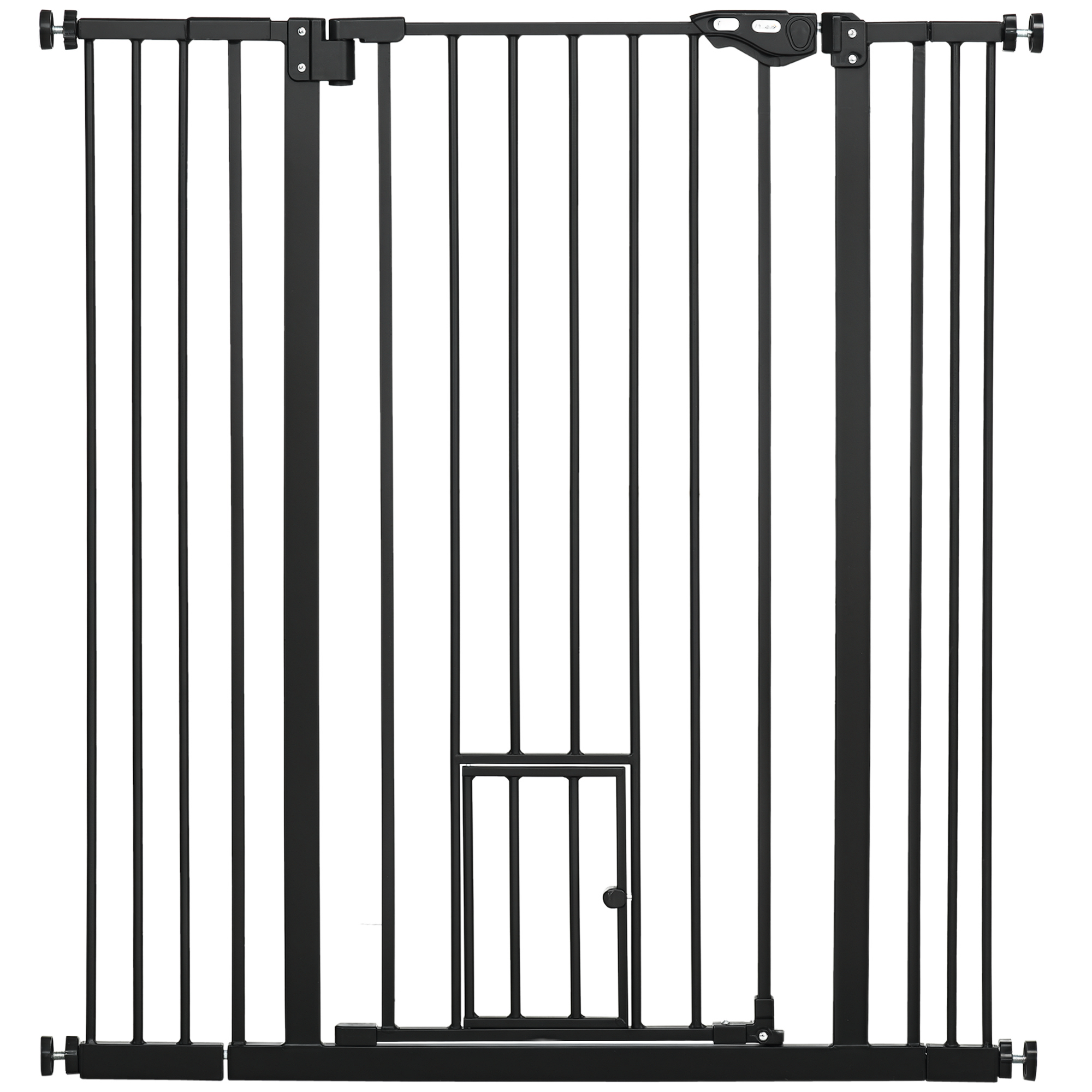 PawHut Barrera de Seguridad para Perros con 1 Puerta Pequeña 74-101×104,1 cm Barrera para Mascotas Extensible con Cierre Automático y Sistema de Doble Bloqueo para Puerta Pasillo Escalera Negro