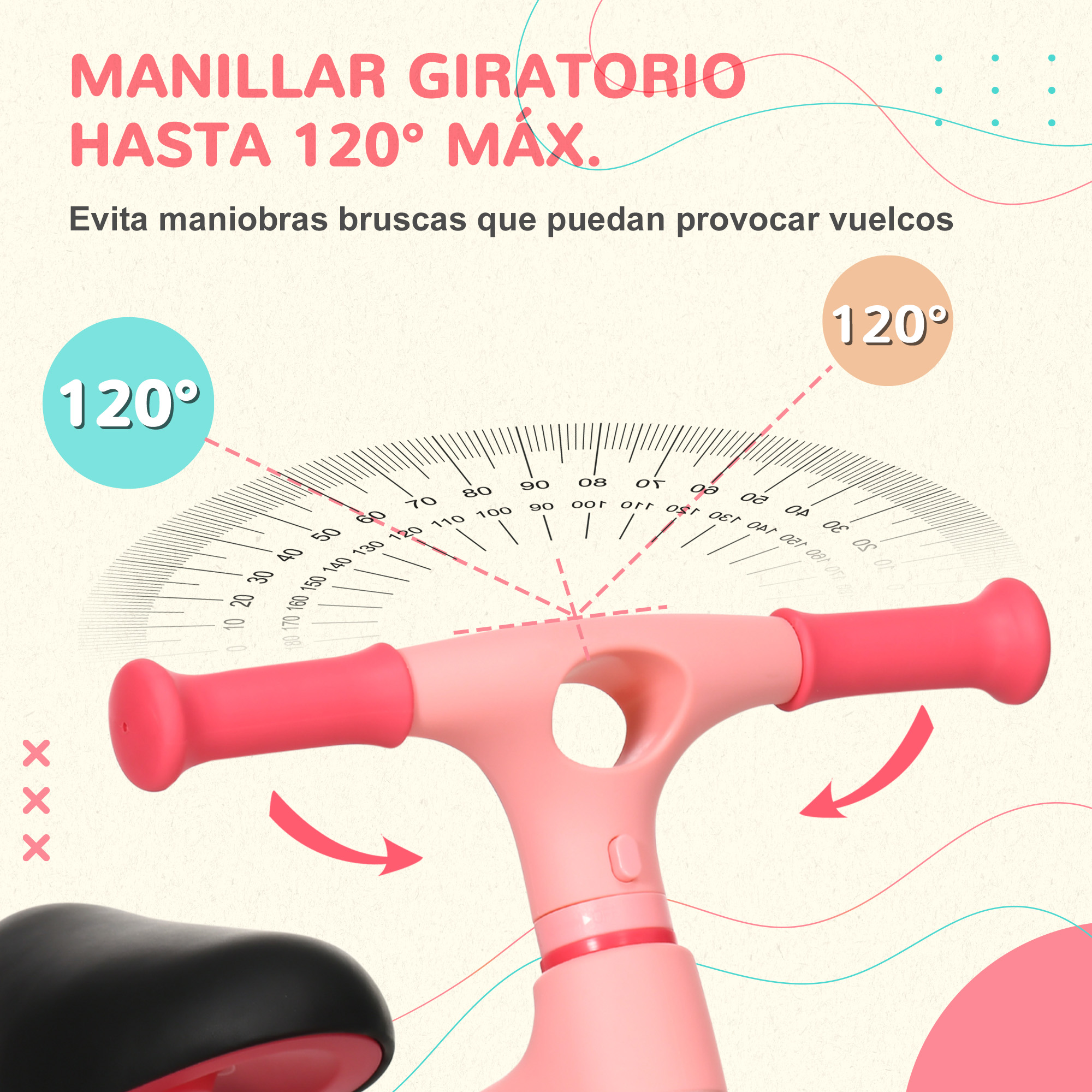 AIYAPLAY Bicicleta sin Pedales para Niños de 18-36 Meses Bicicleta de Equilibrio con Asiento Ajustable en Altura Carga 25 kg 67,5x32x44 cm Rosa