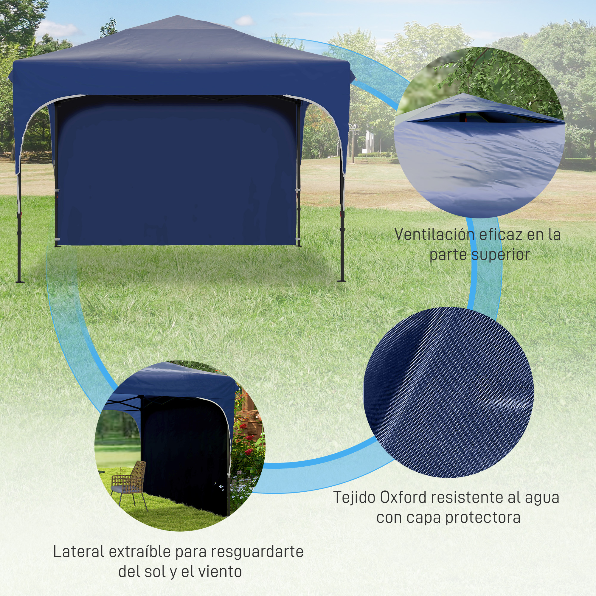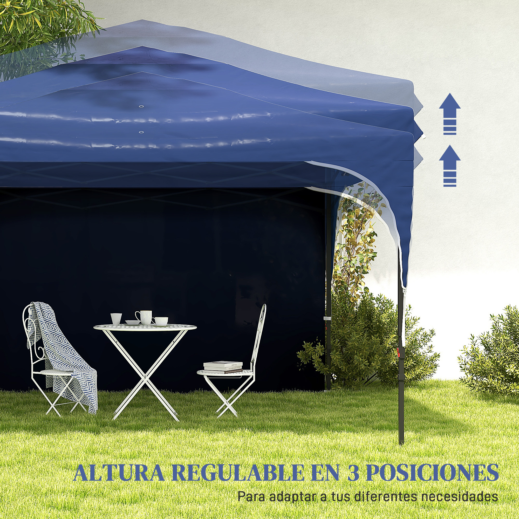 Outsunny Carpa Plegable 3×3 m Cenador de Jardín con Altura Ajustable 1 Pared Lateral Impermeable 4 Bolsas de Arena y Bolsa de Transporte Gazebo para Exterior Patio Fiestas Azul