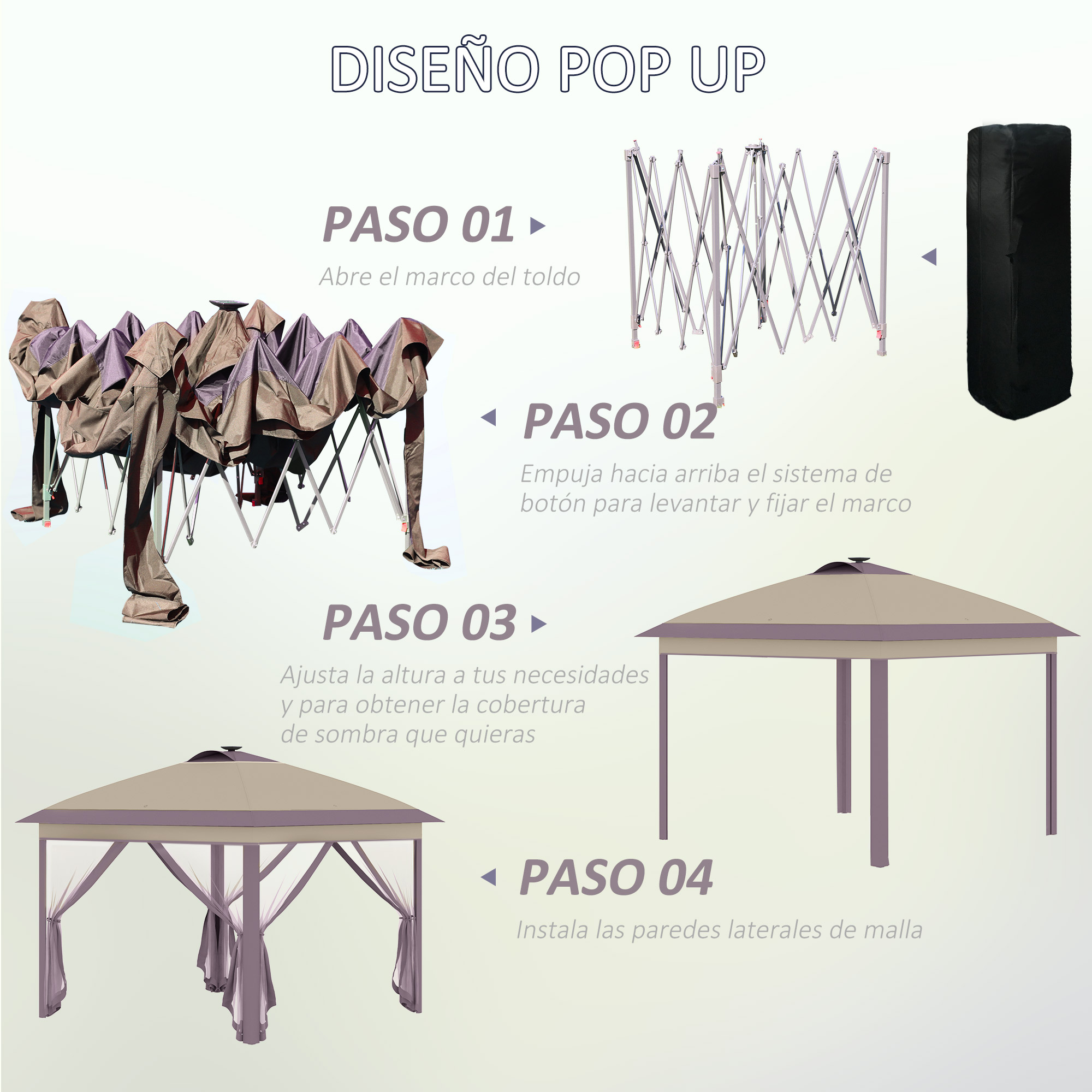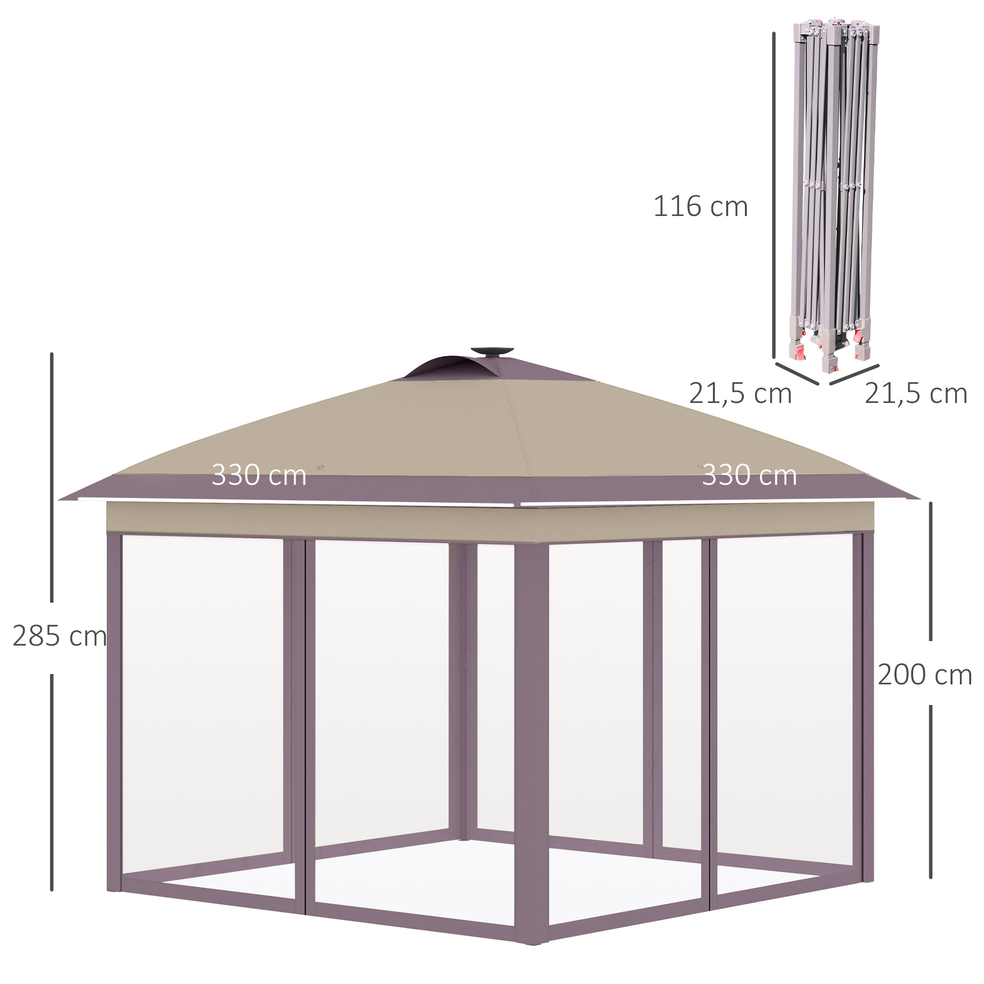 Outsunny Carpa Plegable Exterior 3x3x2,9 m con Luces LED y Control Remoto Cenador de Jardín con 4 Mosquiteras Extraíbles y Bolsa de Transporte Impermeable Gazebo para Exterior Camping Fiestas Beige