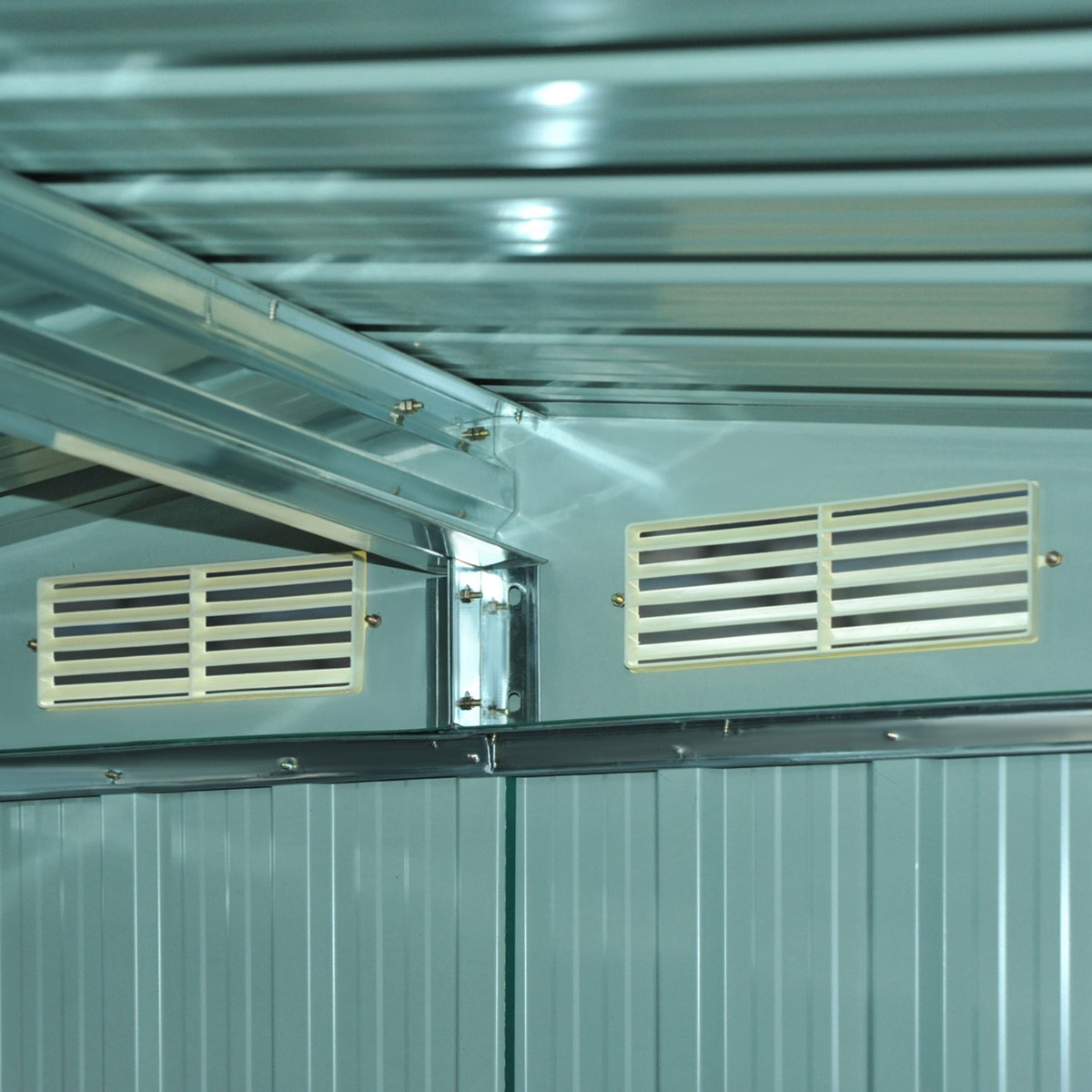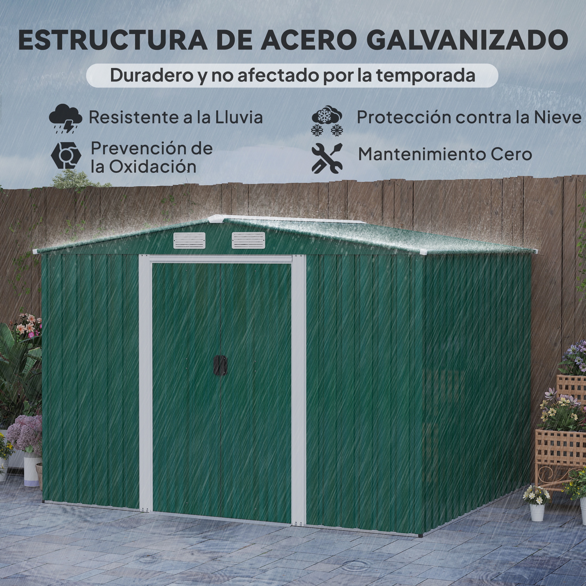 Outsunny Caseta de Jardín Exterior 258x206x178 cm 5,3m² Cobertizo de Jardín Exterior con Base Puertas Correderas y Ventilaciones para Almacenamiento de Herramientas Jardinería Verde