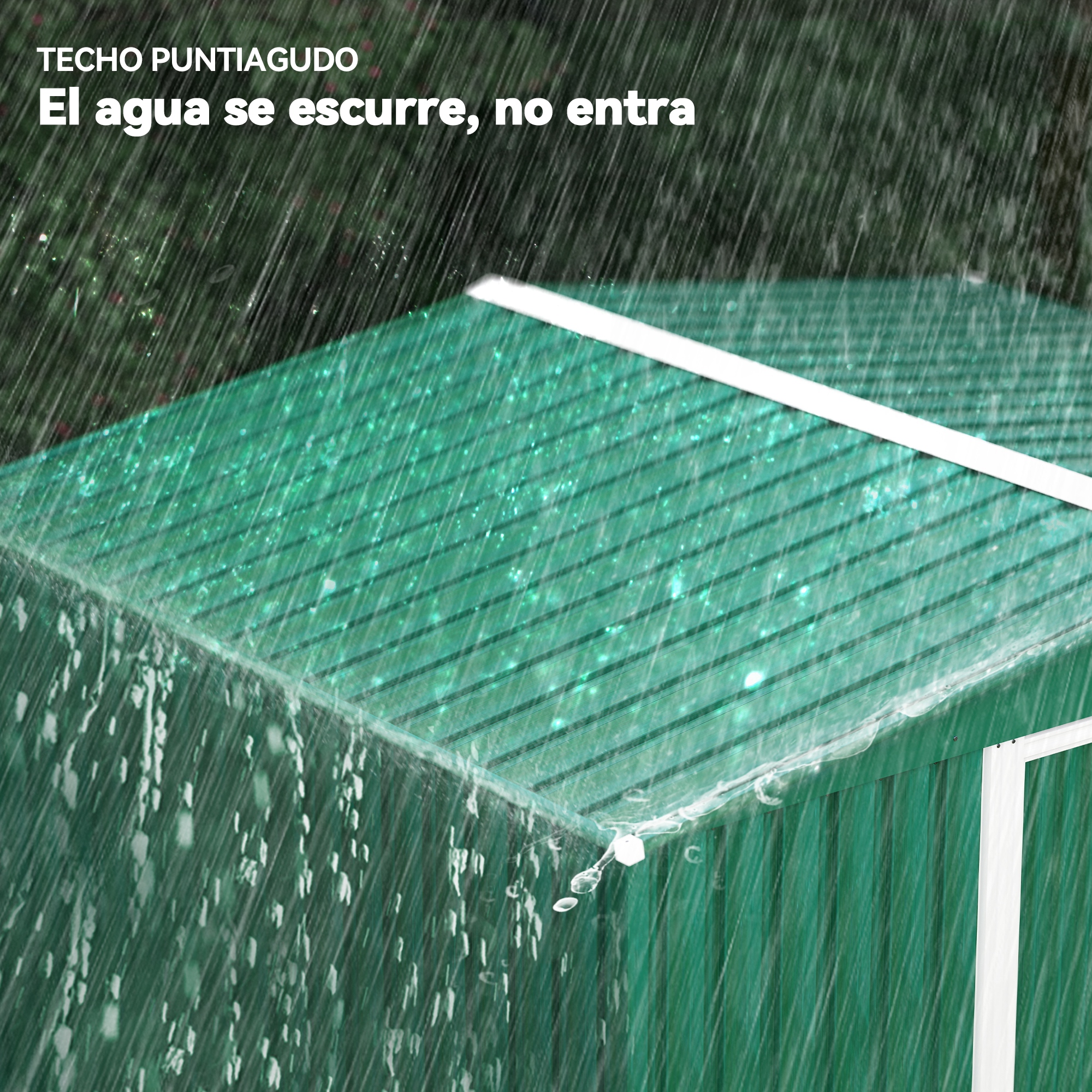 Si buscas un cobertizo espacioso, este de Outsunny te gustará. Ideal para tener tus herramientas de jardín, bicicletas y otros elementos ordenados. Hecho de acero galvanizado, reforzado por la parte inferior (suelo no incluido) para que puedas colocar incluso algunos de tus artículos encima y no entren en contacto directo con el suelo. Su techo inclinado evita que el agua se estanque y propicie la oxidación. Características: Gran espacio de almacenaje para herramientas, equipamiento de jardinería y más Hecho de acero galvanizado con recubrimiento adecuado para estar a la intemperie Doble puerta corredera para un acceso fácil Techo inclinado para evitar el encharcamiento de agua 4 rejillas de ventilación proporcionan una óptima ventilación, evitando la acumulación de moho Base reforzada (suelo no incluido), con todas las partes pre cortadas y pre taladradas Se recomienda el uso de guantes para su instalación Se requiere montaje Especificaciones: Color: verde oscuro Material: acero, plástico Medidas totales: 258x206x178 cm (LxANxAL) Medidas interiores: 243x184x175 cm (LxANxAL) Medidas de la puerta: 95,5×154 cm (LxAN) Referencia: 845-078 El paquete incluye: ● 1 x Caseta de jardín; ● 1 x Manual de instrucciones