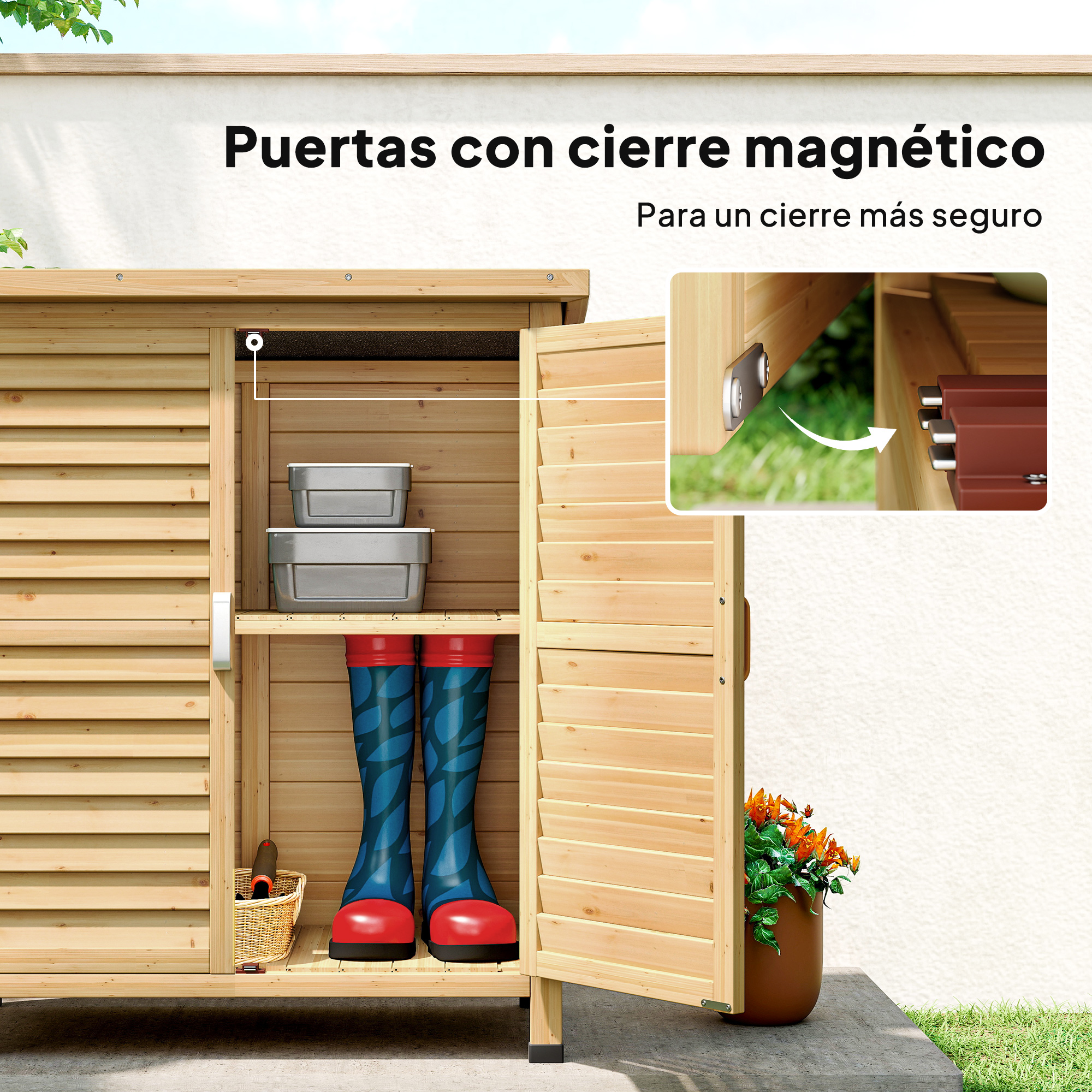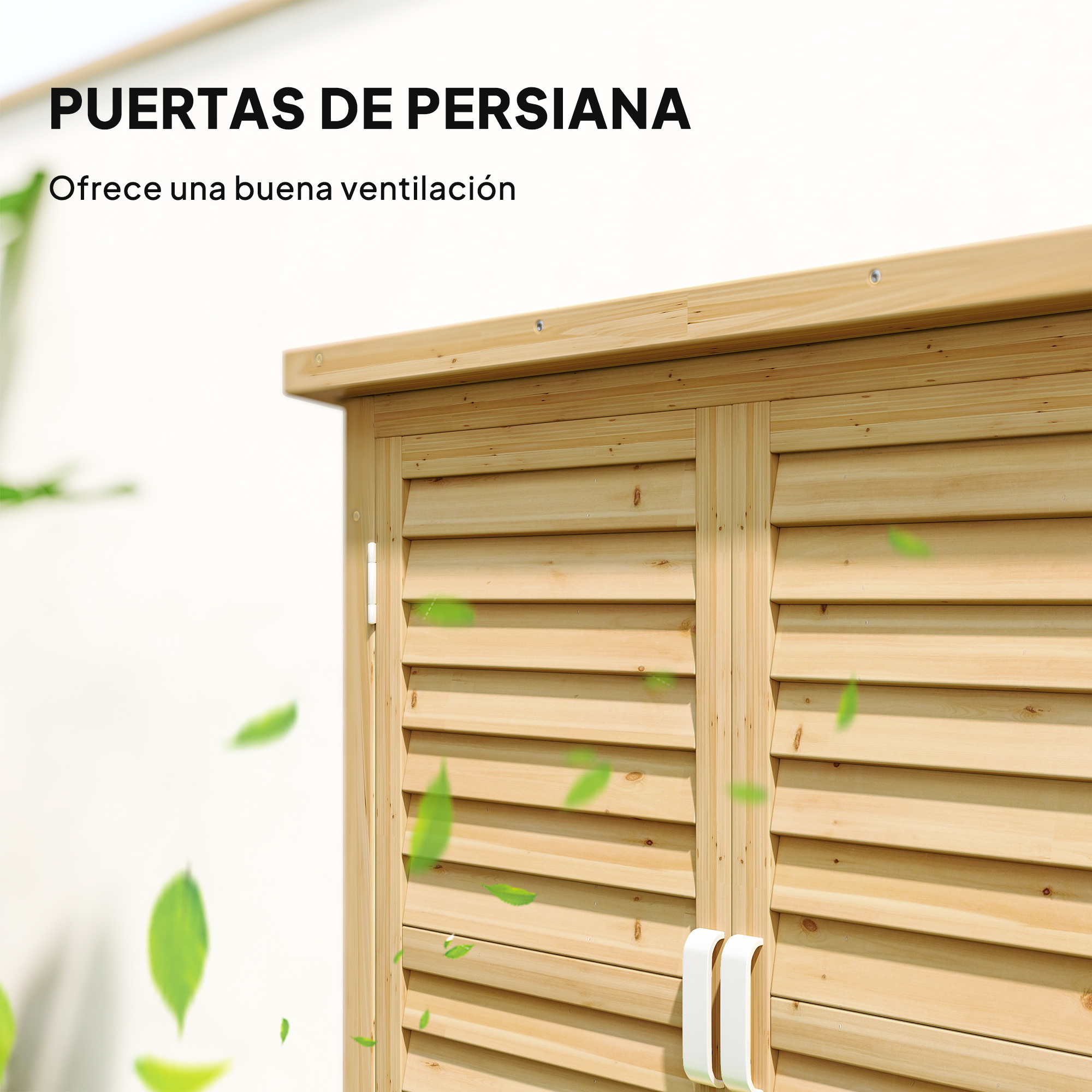 ¿Buscas un armario para organizar las cosas en tu jardín? ¡Este armario de madera de terraza de Outsunny es perfecto! Fabricado con madera de abeto y con un techo asfáltico inclinado, es robusto e ideal para un uso prolongado. Cuenta con 2 amplios estantes en su interior para que puedas guardar tus herramientas de jardinería o la manguera, entre otros. Además, las puertas de persiana proporcionan una ventilación óptima en el interior. ¡Aprovecha esta oportunidad y consigue el tuyo! Características: Armario de jardín ideal para almacenar herramientas de jardinería, mangueras, entre otros Fabricado en resistente madera de abeto e ideal para un uso prolongado Dispone de tiradores de aluminio para facilitar la apertura y el cierre de las puertas Las puertas cuentan con cierre magnético Tiene un techo de tela asfáltica inclinado, para evitar que el agua entre y dañe tus objetos Dispone de 2 estantes en su interior para almacenar objetos de diferentes tamaños Requiere montaje Especificaciones: Color: natural Material: madera de abeto Medidas totales: 87×46,5×96,5 cm (LxANxAL) Medidas de los estantes: 75,9x36x1 cm (LxANxAL) Altura de los estantes (de arriba a abajo): 32,5/44 cm Medidas de las puertas (cada una): 79,4×36,3 cm (LxAL) Medidas del techo: 87×46,5×3 cm (LxANxAL) Carga máxima: 30 kg (cada estante) Referencia: 845-248 El paquete incluye: ● 1 x Armario de jardín; ● 1 x Manual de instrucciones