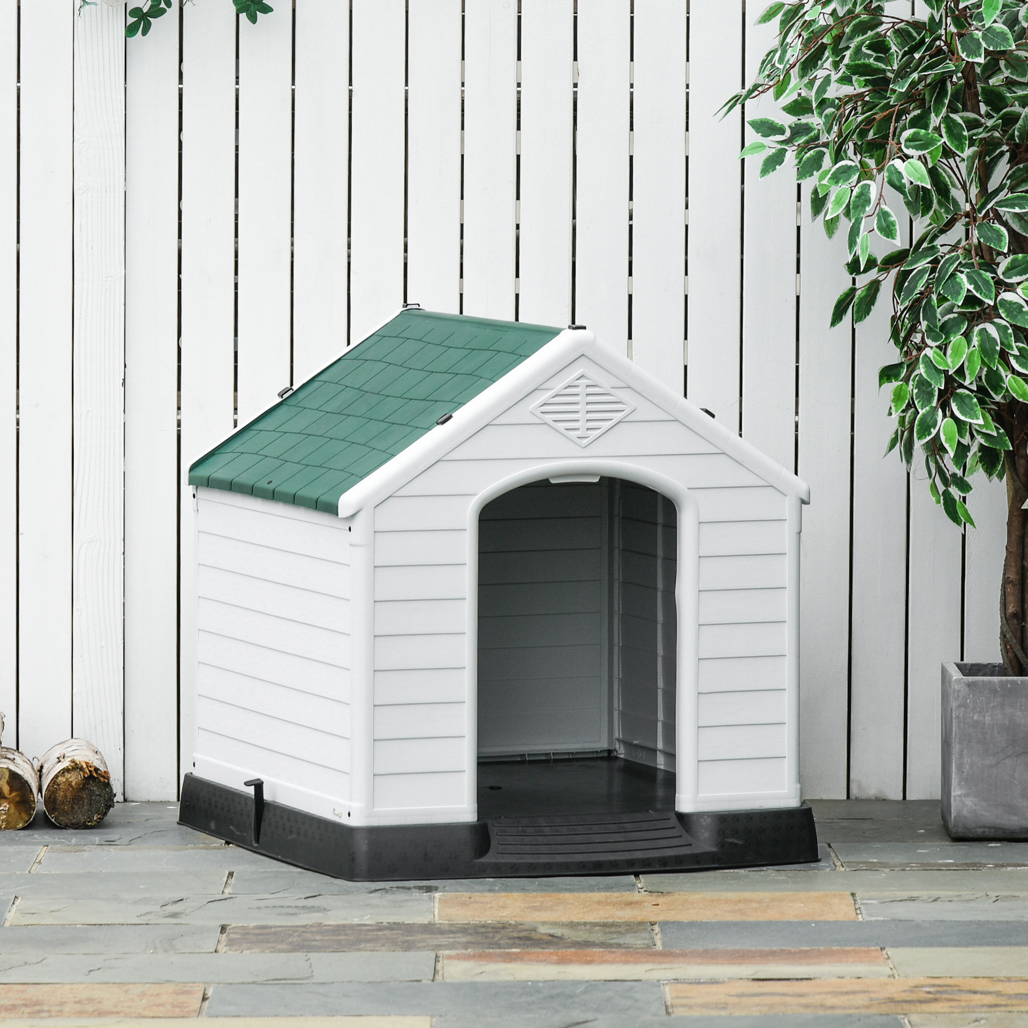 PawHut Caseta de Perro Casa para Perros Medianos con Puerta Metálica con Cerradura Techo Inclinado Base Elevada para Interior Exterior 78x87x81 cm Blanco y Verde