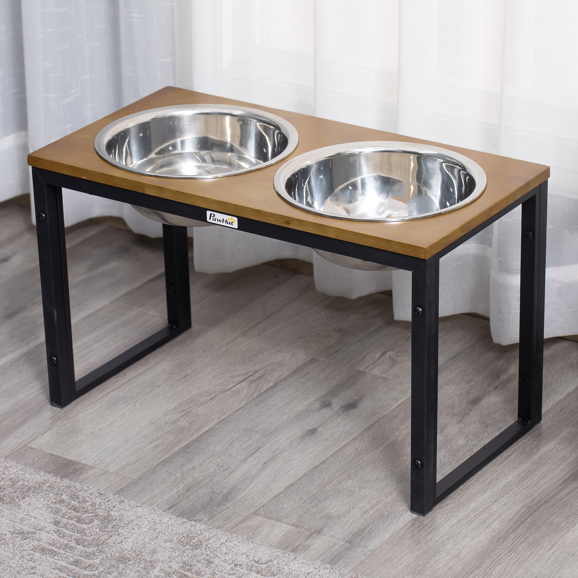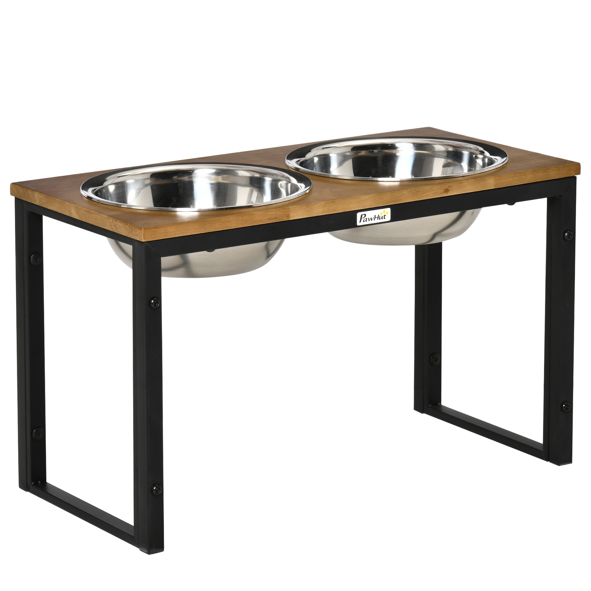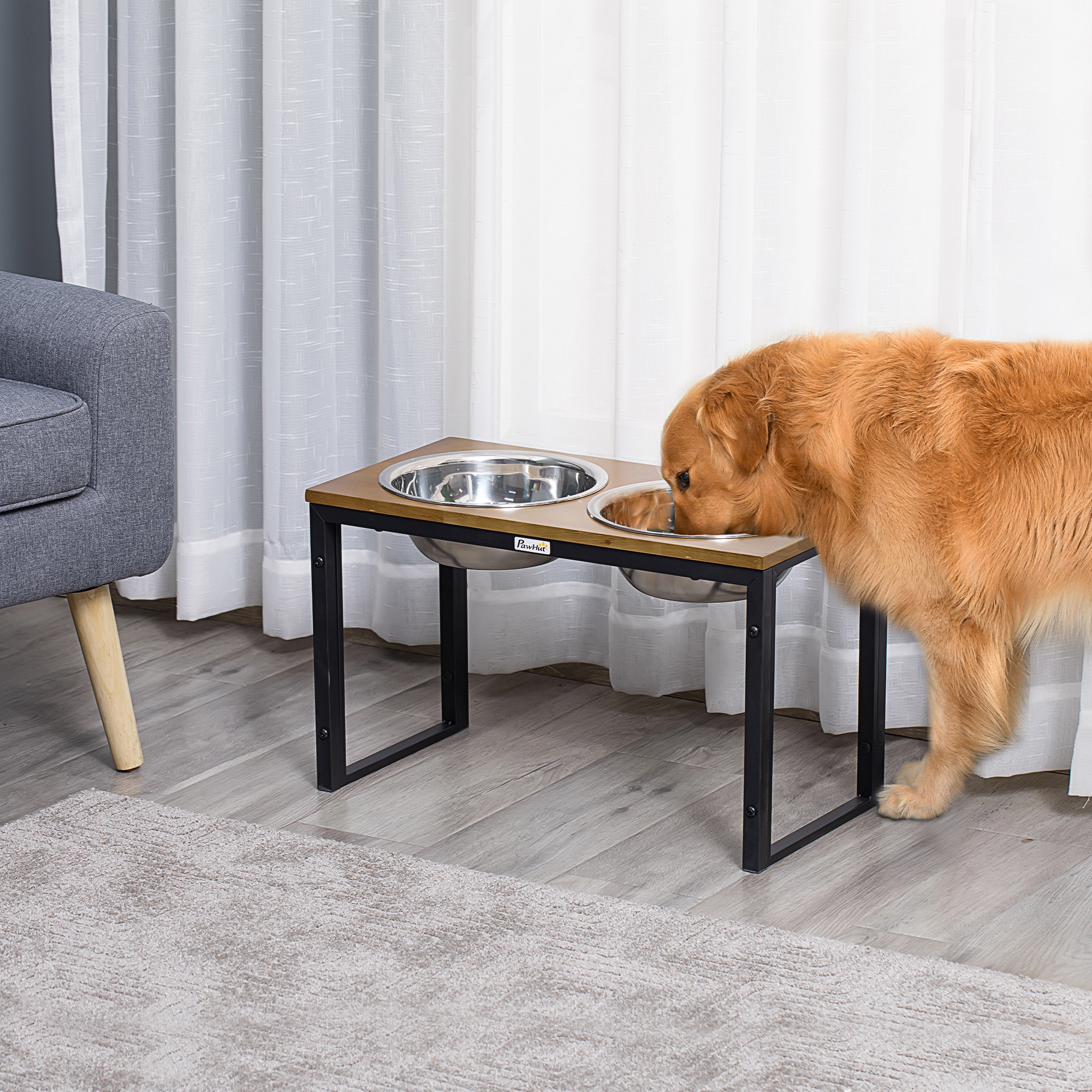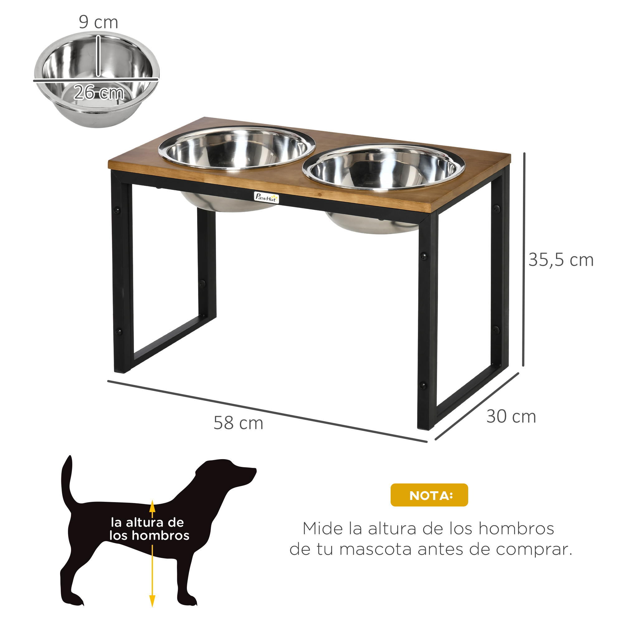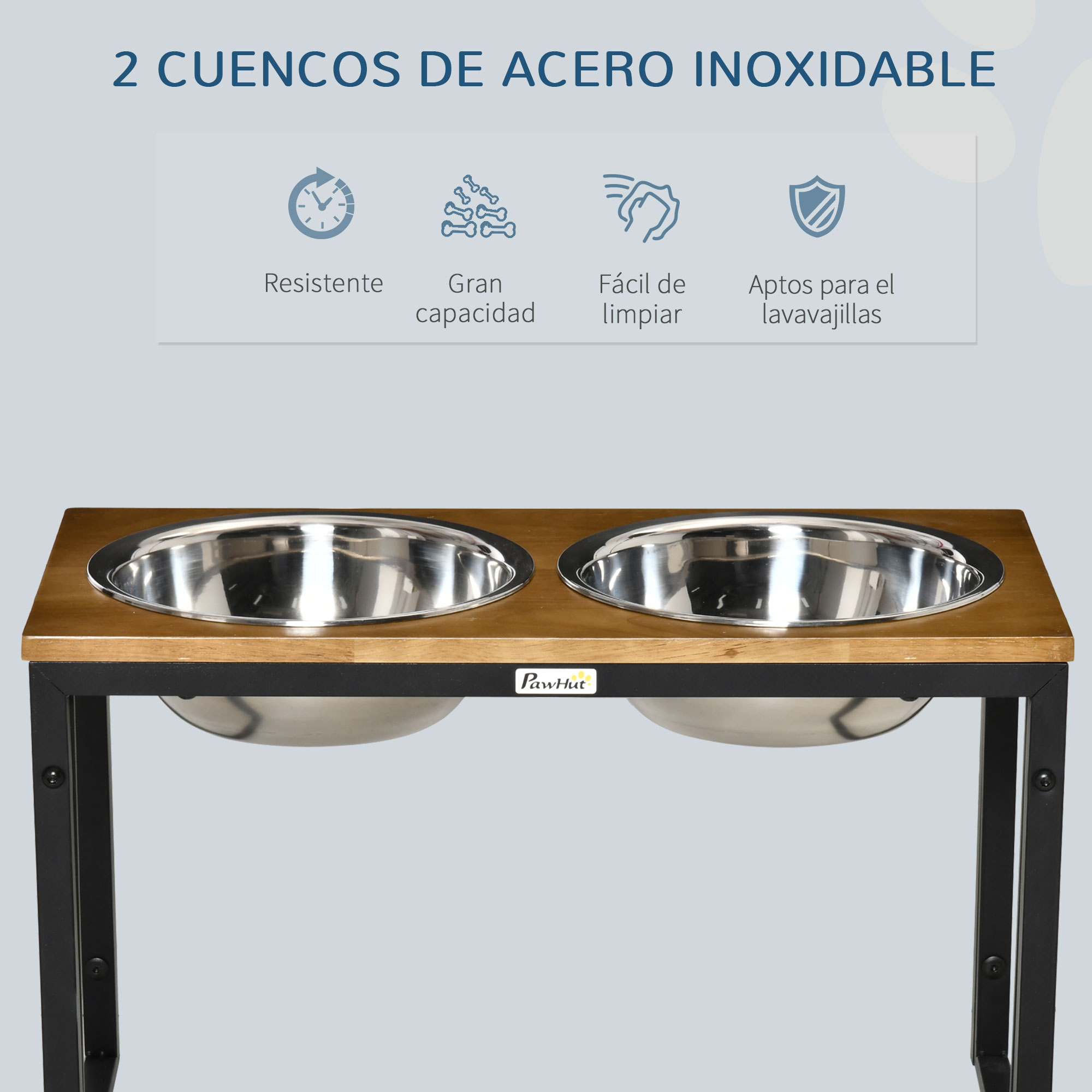 PawHut Comedero para Perros Elevado con 2 Cuencos de Acero Inoxidable Desmontables Alimentador de Agua Comida para Mascotas Grandes Medianos 58x30x35,5 cm Negro y Roble