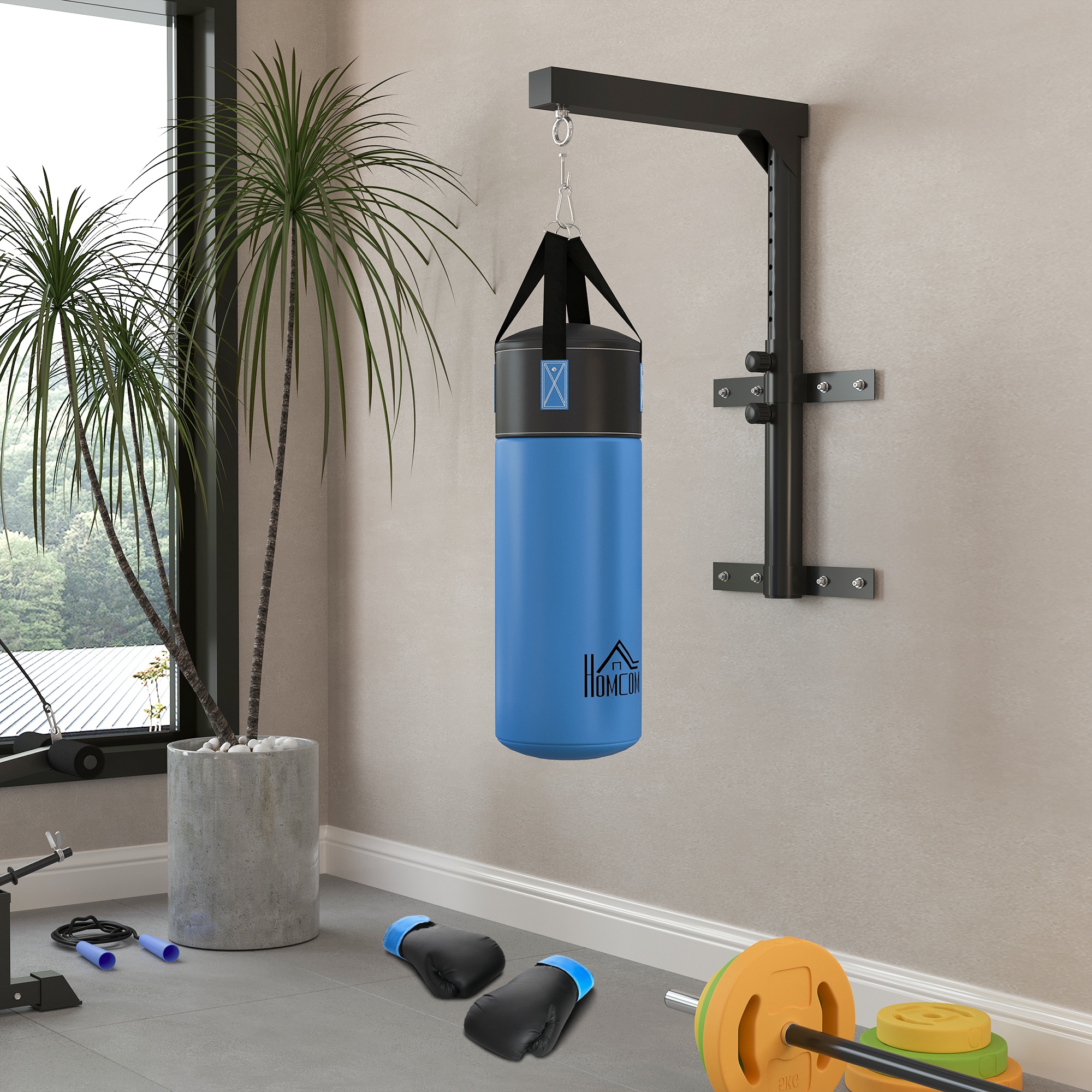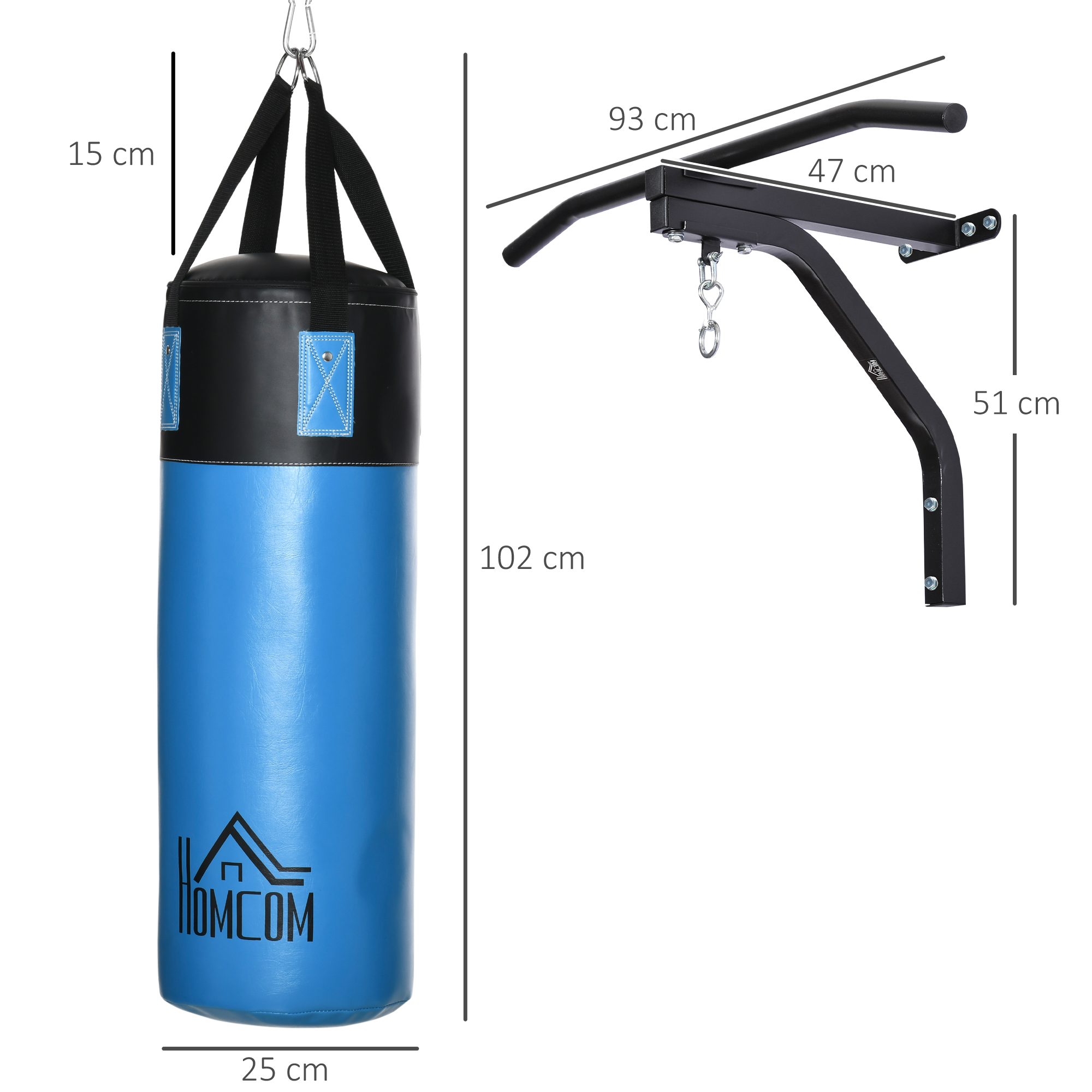 HOMCOM Conjunto de Saco de Boxeo Profesional y Soporte con Barra de Dominadas para Pared para Entrenamiento en Hogar Oficina Gimnasio Ø25×102 cm 93x47x51 cm Azul y Negro