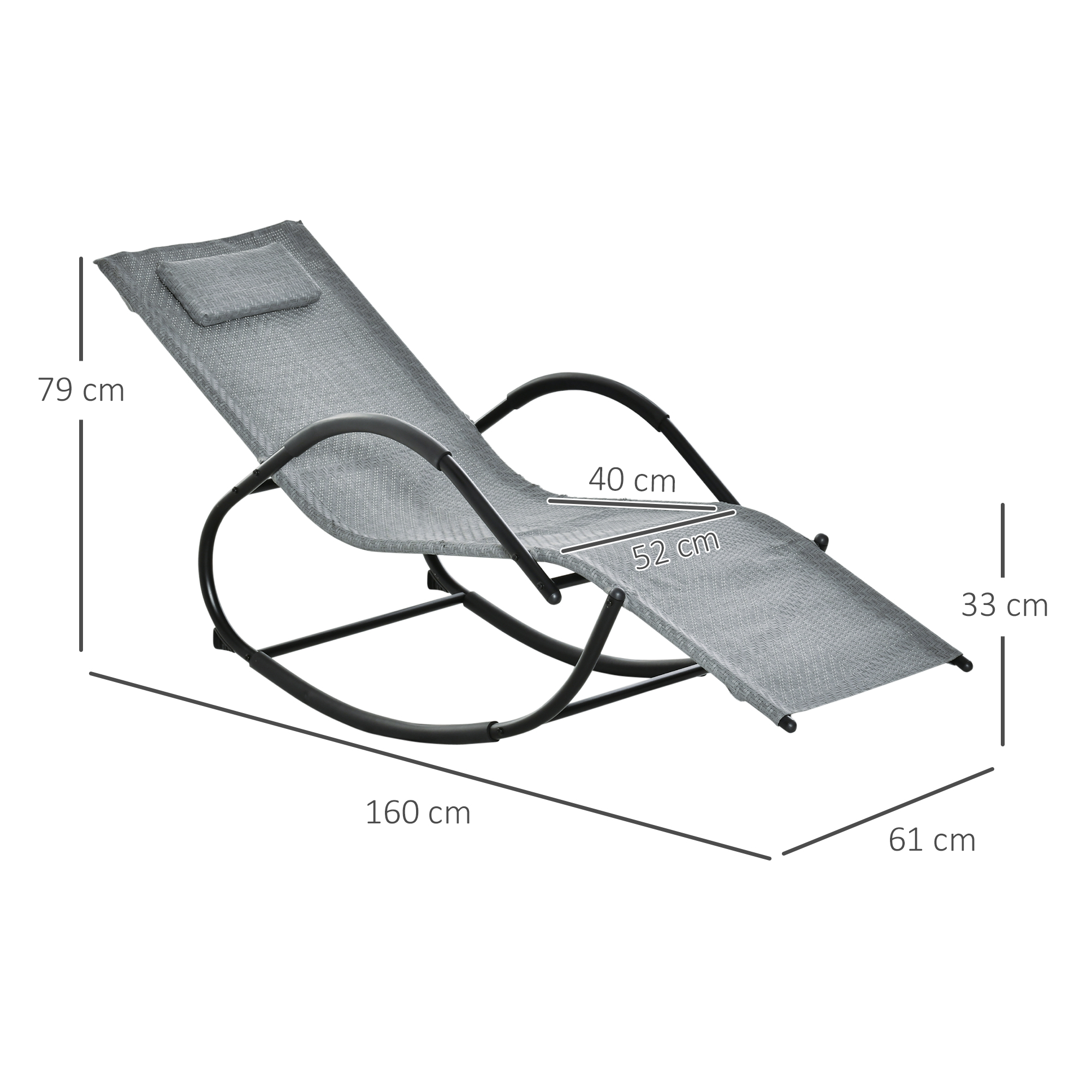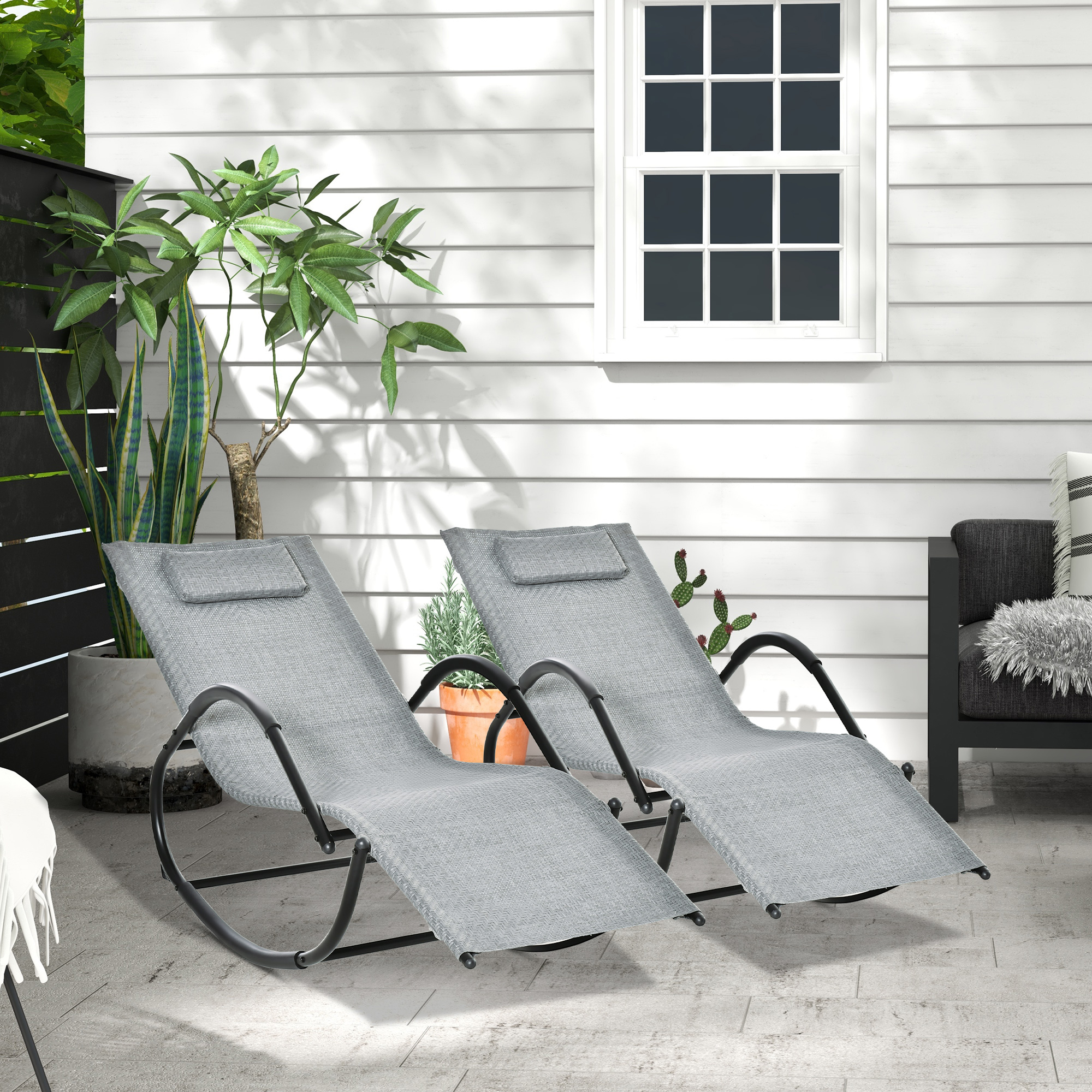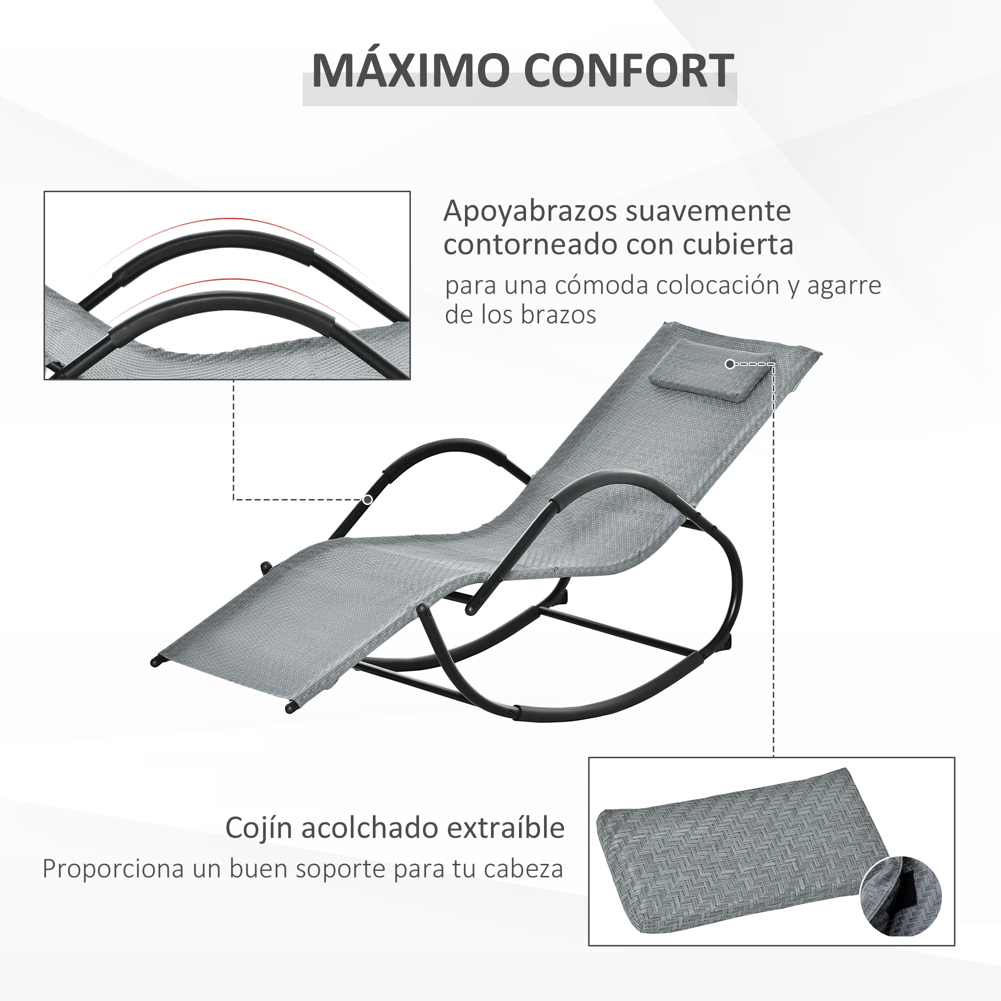 Outsunny Conjunto de 2 Mecedoras de Exterior Tumbonas Mecedoras con Reposabrazos Reposacabezas y Efecto de Ratán Carga 160 kg para Jardín Terraza 160x61x79 cm Gris