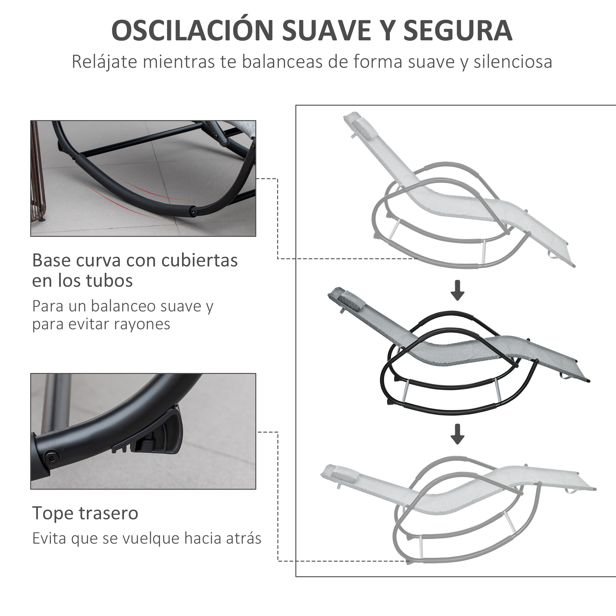 Tumbonas balanceantes para exteriores de Outsunny ideales para relajarse junto a la piscina o en el jardín. Incorporan un reposacabezas extraíble y unos reposabrazos contorneados para que, junto a su forma, tumbarte en ellas y relajarte sea uno de tus momentos preferidos del día. ¿A qué esperas para sacarle el máximo partido a tu espacio exterior? Con estas mecedoras para exterior será súper sencillo. Características: Tumbonas mecedoras perfectas para relajarse en el exterior Estructura ligera de metal para que, aunque resistente hasta para 160 kg, sea fácil de transportar de un lugar a otro El patrón de tejido imita el tejido de ratán para una apariencia elegante Forma de diseño ergonómica que se adapta mejor a ti proporcionando un apoyo perfecto Máxima comodidad con reposacabezas acolchado extraíble y reposabrazos suavemente contorneado Las envolturas en los brazos y en la parte inferior crean un acabado suave para evitar que se raye la estructura Perfectas para jardín, patio, piscina o camping Se requiere montaje Especificaciones: Color: gris Material: texteline y metal galvanizado Medidas totales: 61x160x79 cm (LxANxAL)(cada tumbona) Medidas del asiento: 52×40 cm (LxAN) Altura del asiento: 33 cm Altura del respaldo: 90 cm Longitud del reposapiés: 45 cm Altura del brazo: 65 cm Medidas del cojín: 30x16x4 cm (LxANxAL) Carga máxima: 160 kg (cada una) Cumplen con: EN581-1-2 Referencia: 84B-P182 El paquete incluye: ● 2 x Tumbona de jardín (referencia: 84B-679GY); ● 2 x Cojín extraíble; ● 1 x Manual de instrucciones