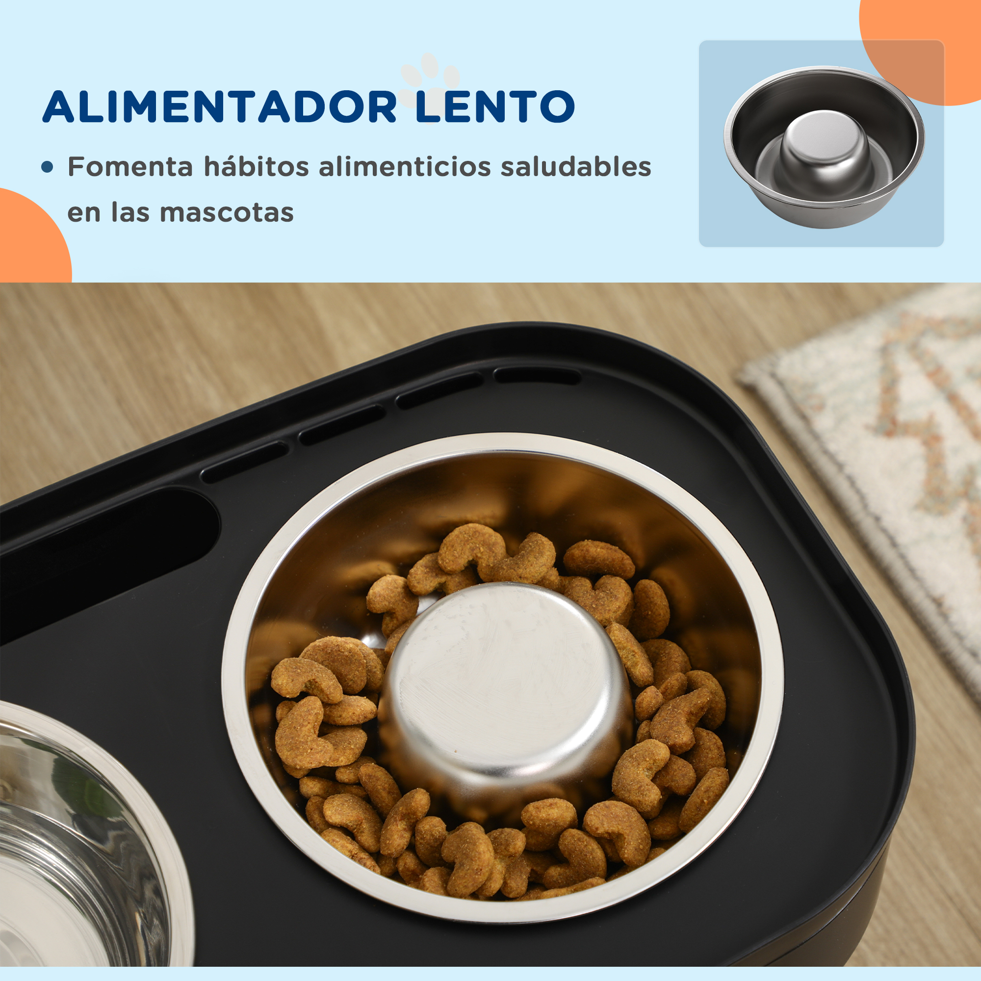 Este pack incluye un corral para perros de PawHut y un comedero ajustable. El corral proporciona un espacio seguro para que tu mascota juegue y haga ejercicio, mientras que el comedero permite a tus mascotas comer cómodamente y a su propio ritmo. Características: Pack compuesto por un parque para perros de 8 piezas (referencia: D06-025) y un comedero elevado con 2 cuencos (referencia: D08-047V00BK) Los 8 paneles del parque se pueden configurar en diferentes formas como rectángulo, cuadrado, octágono u otras formas Fácil montaje y plegado sin necesidades de herramientas Ambos productos son adecuados para su uso en interiores y exteriores Adecuado para perros pequeños (altura de los hombros: 25-40 cm), perros medianos (altura de los hombros: 40-50 cm, 45-55 cm) y perros grandes (altura de los hombros: 50-60 cm) Especificaciones: Color: negro Material: alambre de acero, polipropileno, acero inoxidable Medidas totales: Ø180×61 cm (DxAL)(parque para mascotas) Medidas de cada valla: 71×61 cm (LxAL) Medidas de la puerta: 35×47 cm (LxAL) Distancia entre los alambres: 3,1 cm Medidas totales: 43x25x30 cm (LxANxAL)(comedero) Altura del estante: 11 cm, 23 cm, 26 cm, 29 cm (desde el suelo) Medidas de los cuencos: Ø18×6 cm (DxAL), Ø18×5,5 cm(DxAL) Capacidad de los recipientes: 1 L, 0,6 L Bordes elevados: 1,5 cm Referencia: D06-P015 El paquete incluye: ● 1 x Parque para mascotas; ● 1 x Comedero elevado; ● 1 x Cuenco de acero inoxidable; ● 1 x Comedero lento; ● 2 x Manual de instrucciones