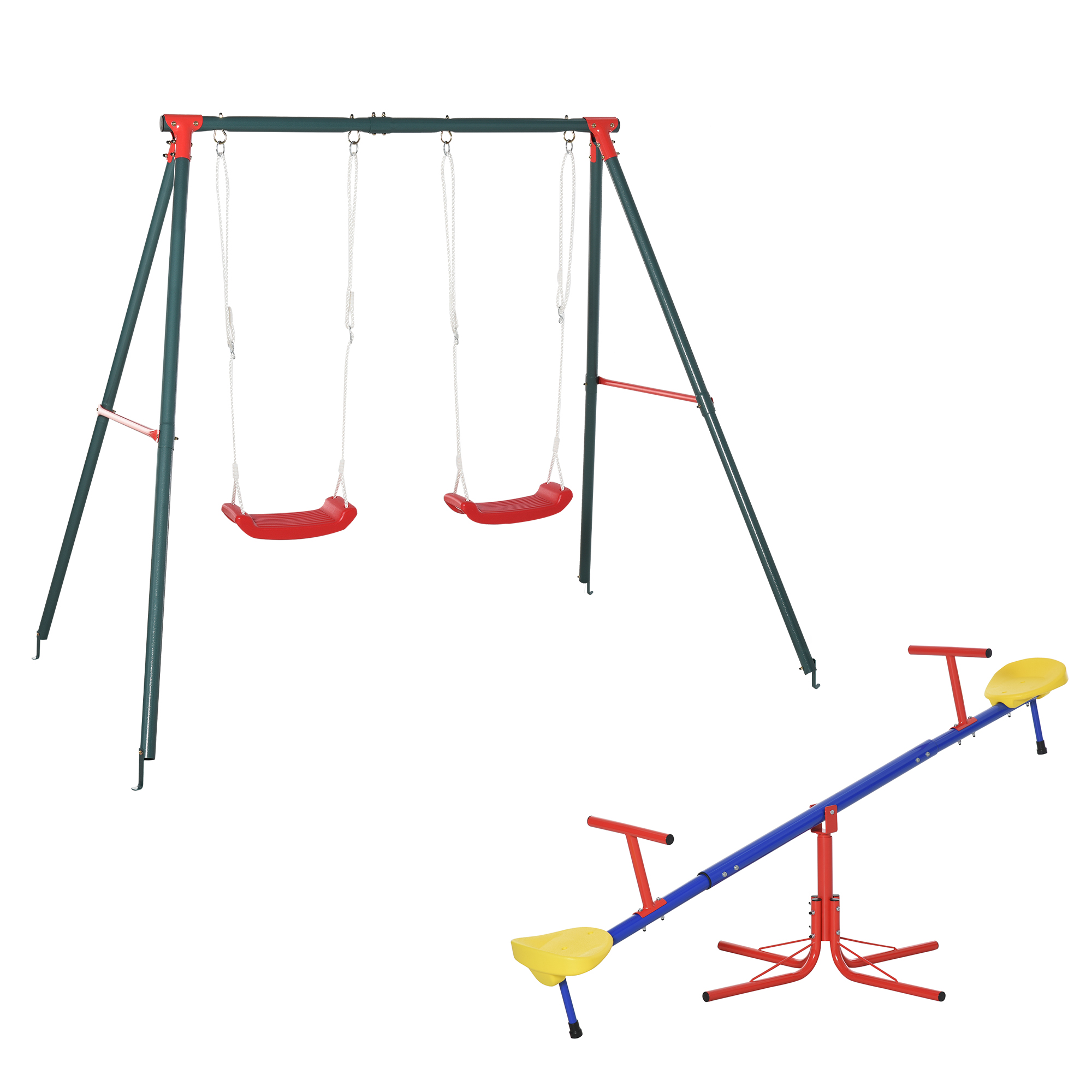 Outsunny Conjunto para Niños Juego de Balancín para Niños Giratorio 360° y Columpio Doble Infantil con Cuerda Ajustable para Jardín Parque 184x76x71 cm 239x156x180 cm Multicolor