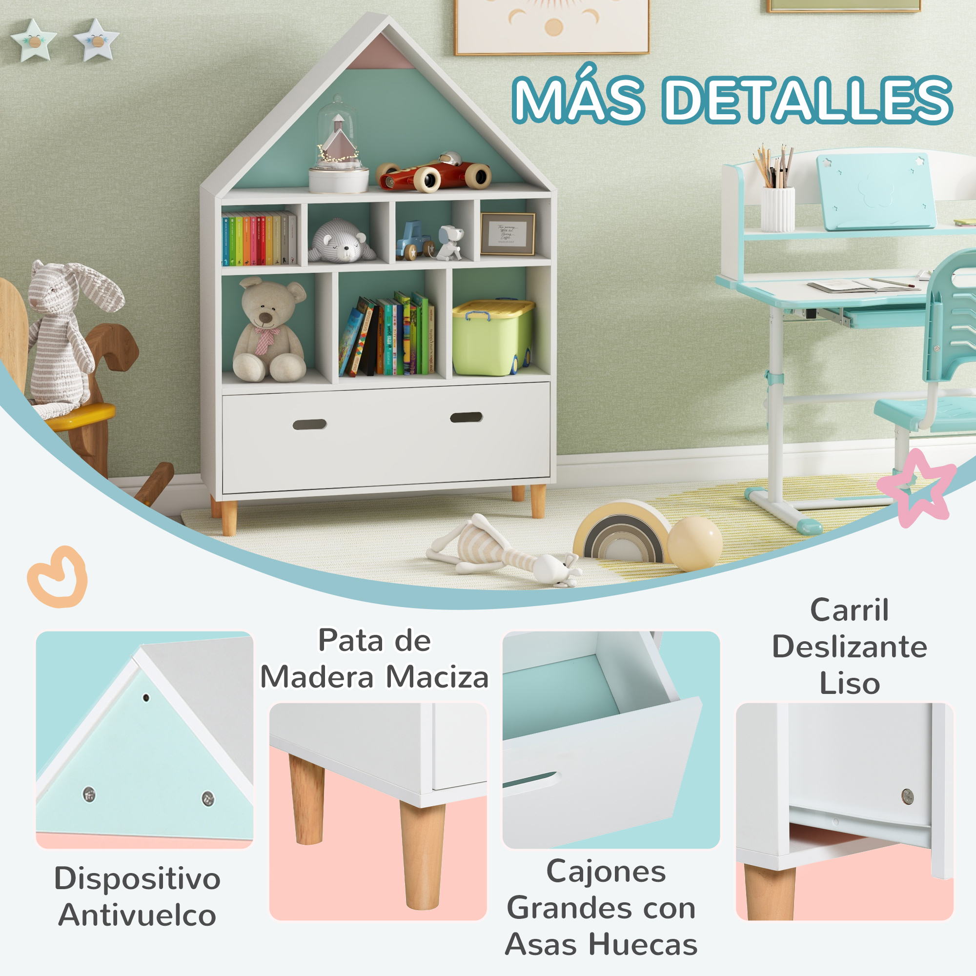 Este conjunto de muebles de ZONEKIZ es el complemento ideal para el espacio de aprendizaje y autonomía de tu hijo. Compuesto por una estantería para juguetes o libros, una mesa y una silla, este conjunto favorece la autonomía de los pequeños, proporcionándoles un espacio propio para leer, pintar, jugar y organizar sus pertenencias. Funcional y llamativo, este conjunto es la solución perfecta para satisfacer las necesidades de las habitaciones infantiles, combinando practicidad y diseño. Características: La mesa y la silla tienen altura ajustable para adaptarse al crecimiento de los niños El ángulo de la mesa puede inclinarse hasta 45° para mayor comodidad durante las actividades La estantería con 8 compartimentos ofrece la solución de almacenamiento ideal para cualquier habitación infantil Requiere montaje Cada producto incluido en el conjunto se vende por separado y mantiene sus características individuales Especificaciones: Color: azul y blanco Material: melamina de madera y madera de pino (estantería) y PP, MDF y acero (mesa y silla) Medidas de la estantería: 82x30x126 cm (LxANxAL) Medidas de la mesa: 80×54,5×82-104 cm (LxANxAL) Medidas de la silla: 36x44x64-76 cm (LxANxAL) Carga máxima: 30 kg (estantería), 80 kg (mesa) y 100 kg (silla) Edad recomendada/certificada: 6-12 años Referencia: 312-P022 Nota Importante: Cada producto incluido en el pack se vende por separado y mantiene sus características individuales. Por favor, asegúrate de verificar la información detallada de cada producto antes de realizar tu compra El paquete incluye: ● 1 x Estantería para juguetes (referencia: 311-010); ● 1 x Escritorio y silla infantil (referencia: 312-106V80BU); ● 2 x Manual de instrucciones