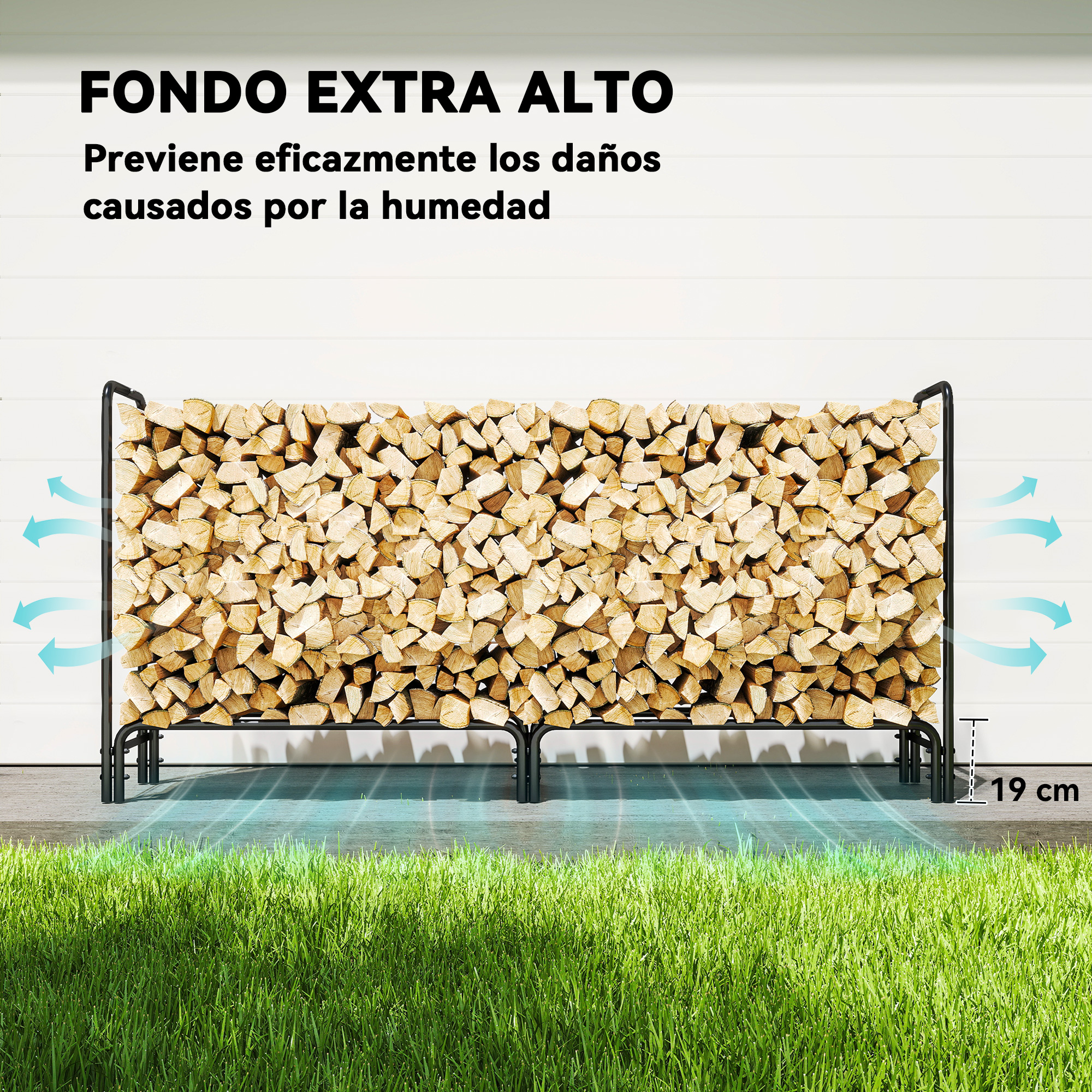 Organiza tu leña de manera efectiva con este leñero de Outsunny. Con una capacidad de 0,6 m³ y una resistencia para hasta 200 kg, mantendrás tus troncos ordenados y protegidos. La base elevada de 19 cm y la funda de PE protegen contra la humedad, garantizando la preservación de la leña tanto en interiores como exteriores. Características: Soporte para leña con capacidad de 0,6 m³ para almacenar grandes cantidades de leña de manera ordenada La cubierta de PE protege la madera de las inclemencias del tiempo La base elevada a 19 cm evita que la humedad del suelo dañe los troncos de madera Estructura de metal con recubrimiento en polvo para mayor durabilidad y resistencia Longitud personalizable ajustando el número de secciones del soporte inferior montadas Fácil de montar con todas las herramientas necesarias incluidas Especificaciones: Color: negro y verde oscuro Material: metal y PE Medidas totales: 200x36x99 cm (LxANxAL) Espacio de almacenamiento: 195×36 cm (LxAN) Altura inferior: 19 cm Medidas de la cubierta: 200x50x95 cm (LxANxAL) Carga máxima: 200 kg Referencia: 842-348V01DG El paquete incluye: ● 1 x Soporte para leña; ● 1 x Cubierta resistente al agua; ● 1 x Manual de instrucciones