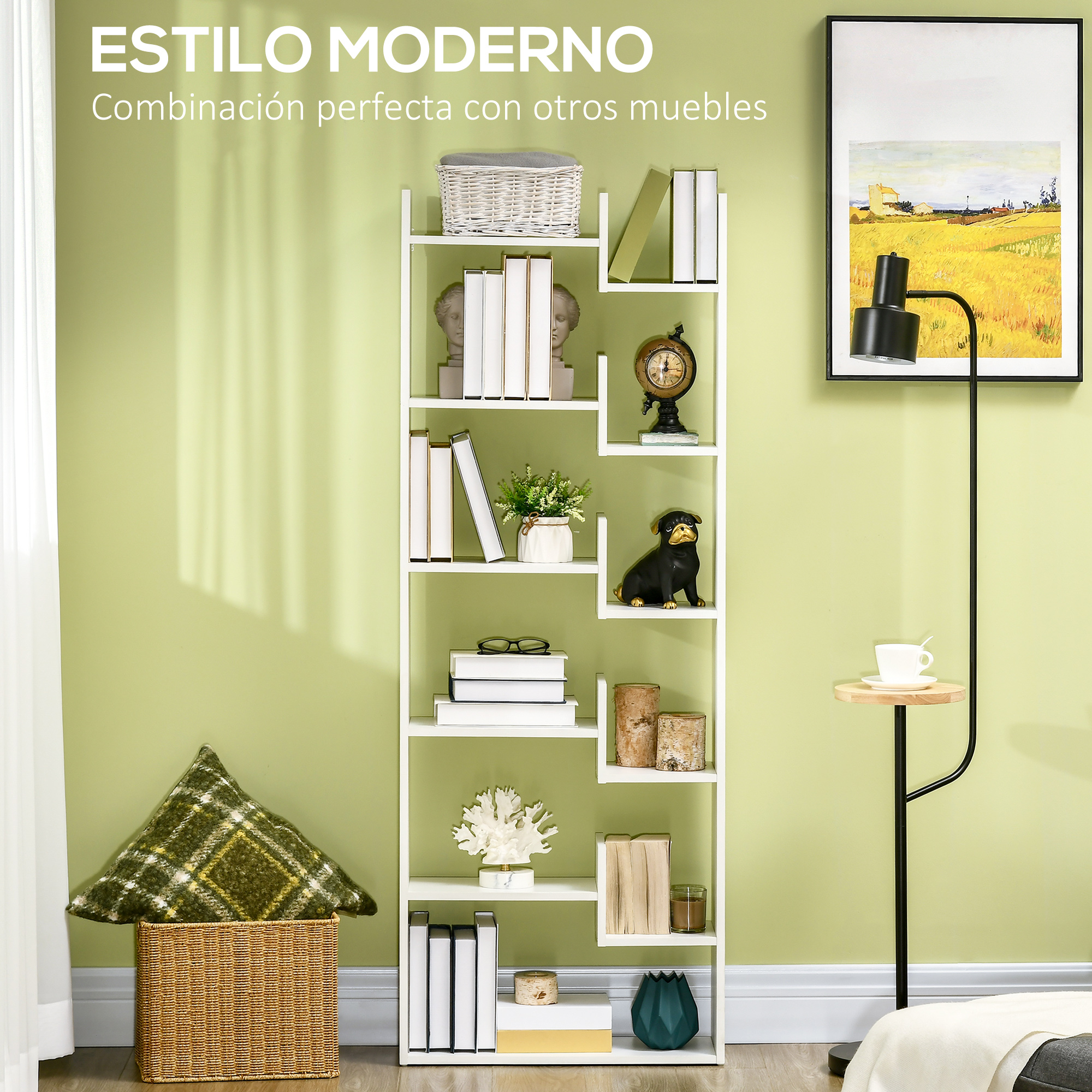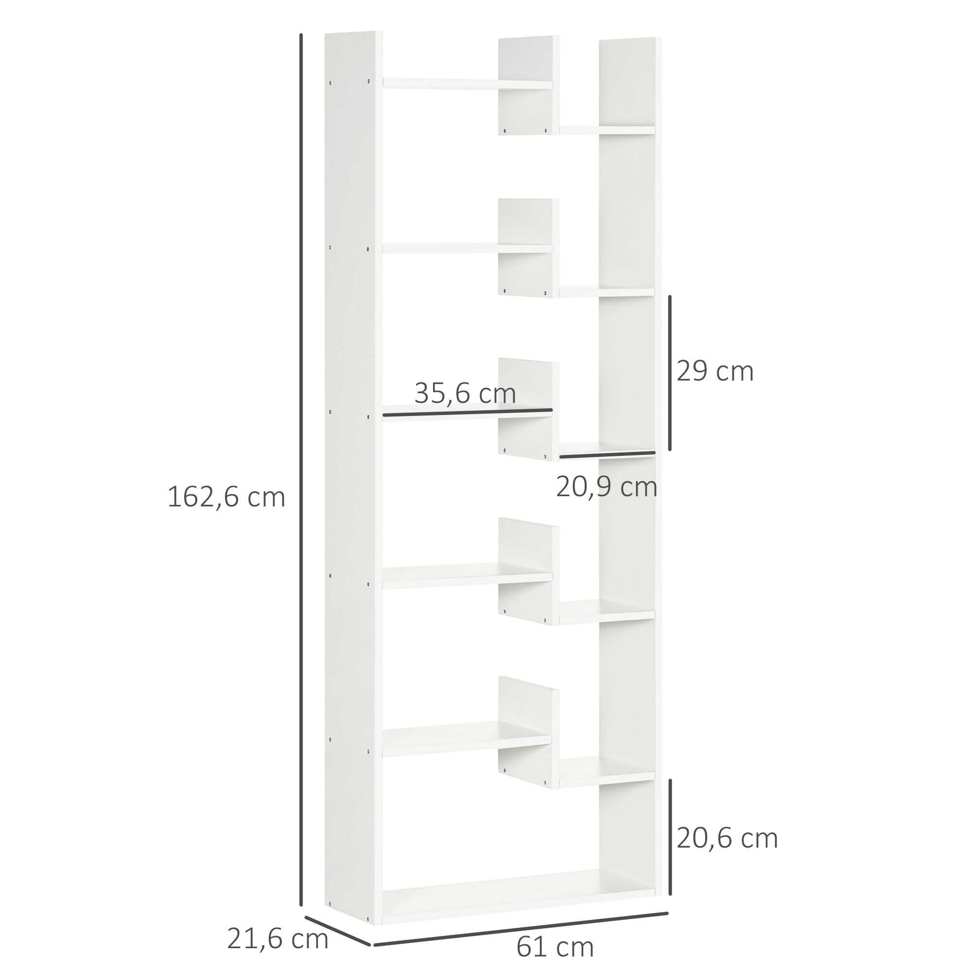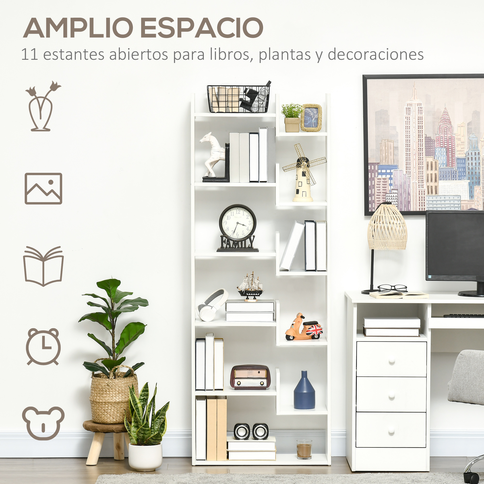 HOMCOM Estantería Librería de 6 Niveles Estantería de Madera con 11 Compartimientos Abiertos para Salón Oficina Estudio Antivuelco Carga 30 kg 61×21,6×162,6 cm Blanco