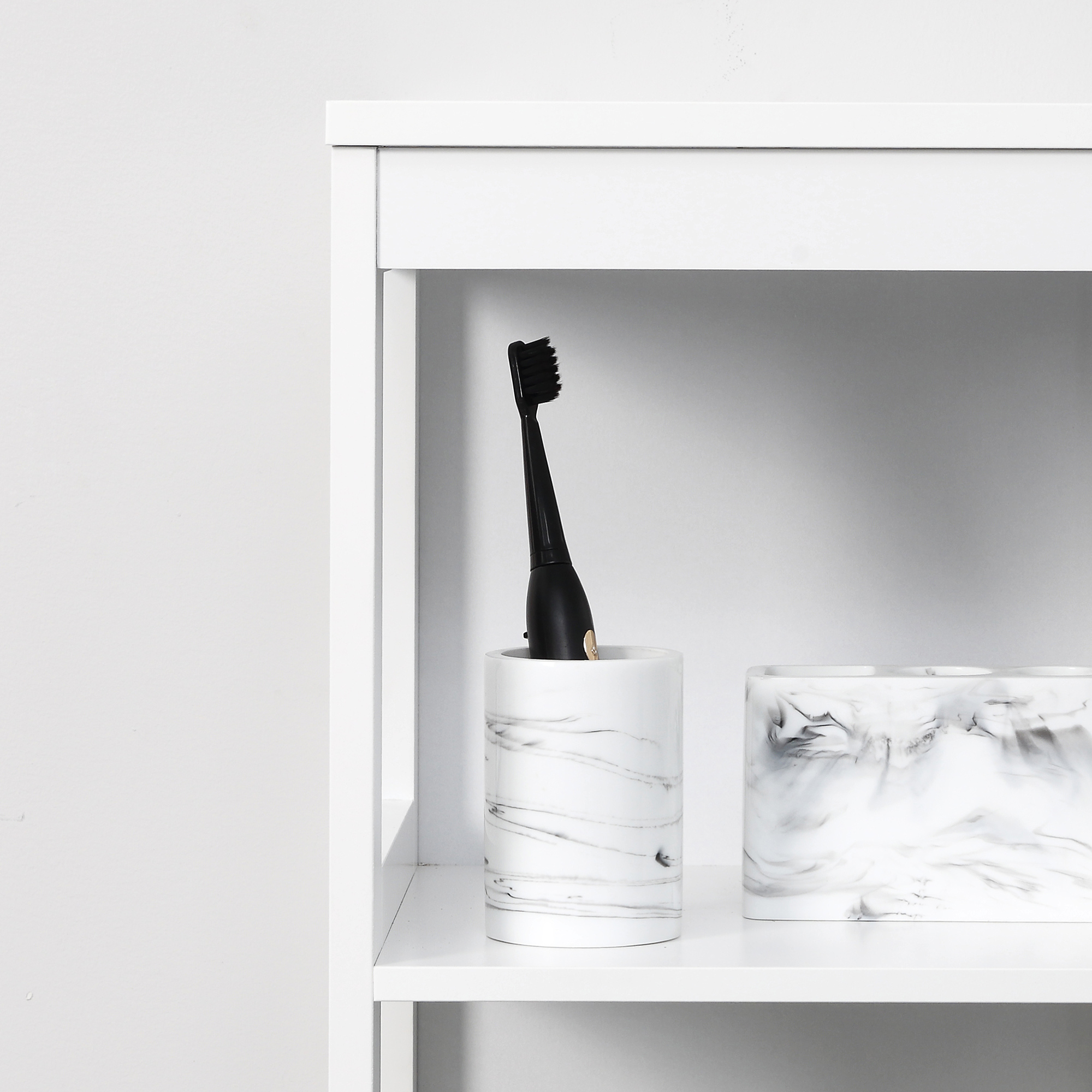 kleankin Estantería de Baño de Suelo de 5 Niveles Mueble Auxiliar de Almacenaje para Cocina Salón Dormitorio Estilo Moderno Antivuelco Carga 30 kg 30x30x140 cm Blanco