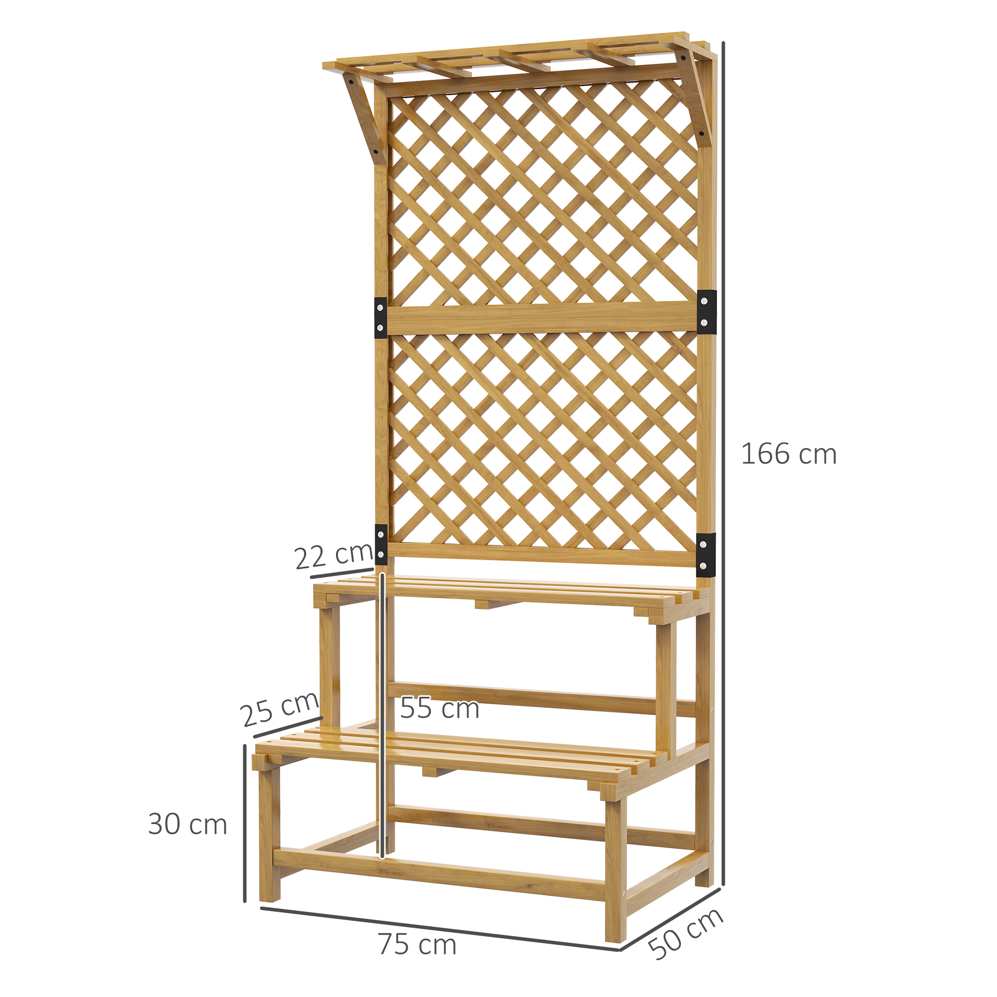 Outsunny Soporte para Plantas de Madera Estantería para Plantas de 2 Niveles Soporte para Macetas Exterior con Enrejado para Jardín Patio Terraza 75x50x166 cm Natural
