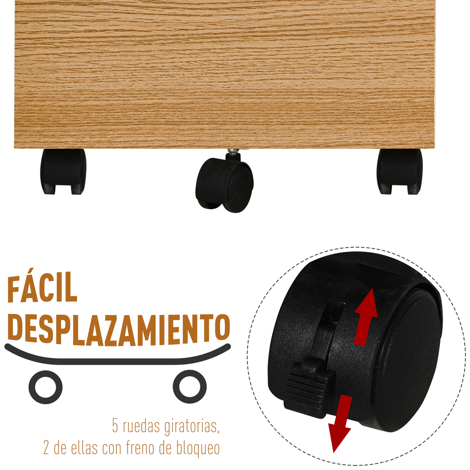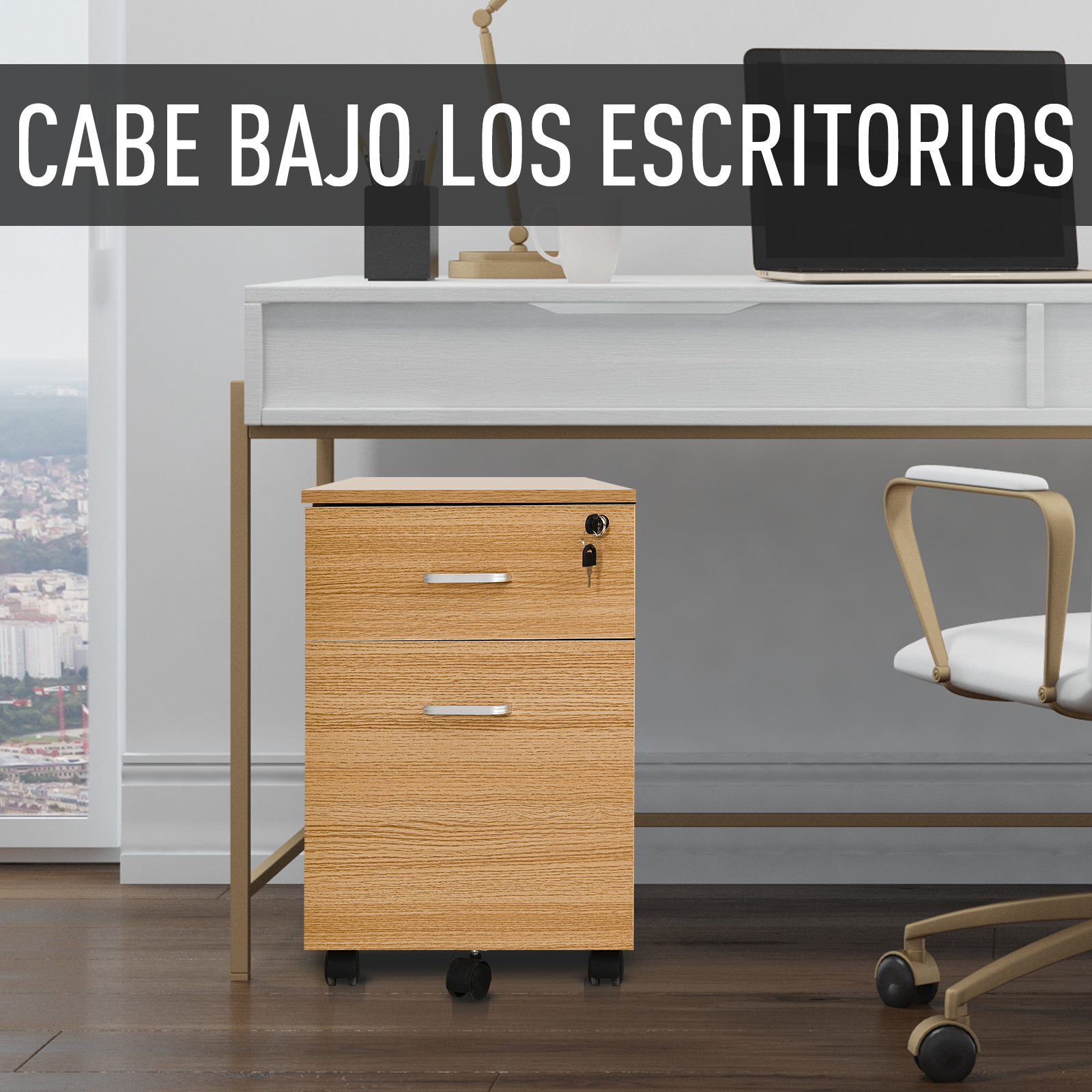 Con este fantástico mueble para oficina de Vinsetto le darás el toque final a tu despacho o zona de estudio. No importa si trabajas en casa o lo haces en una oficina compartida con otros compañeros: gracias a la cerradura siempre mantendrás tus documentos y pertenencias a salvo de la mirada curiosa de otros. Este fantástico mueble para oficina con 5 ruedas y cerradura, resulta muy estable incluso cuando está abierto. Podrás moverlo a donde lo necesites de forma cómoda y cuando quieras dejarlo fijo, simplemente lo podrás bloquear mediante sus frenos. ¡No dejes la oportunidad de llevar el orden de tu zona de trabajo o estudio al próximo nivel! Características: Archivador de madera con gran capacidad gracias a sus 2 amplios cajones de diferente tamaño, en el grande puedes guardar, de forma horizontal, documentos de tamaño A4 Su cerradura con 2 llaves mantiene tus archivos seguros Sus cajones se deslizan suavemente Fácil movilidad gracias a sus ruedas giratorias con 2 frenos de bloqueo Diseño compacto pero con gran espacio para almacenaje, ideal para oficina y hogar Archivador con llave hecho de tablero de partículas con superficie de melamina, fácil de limpiar con un paño húmedo Requiere montaje Especificaciones: Color: natural Material: tablero de partículas Carga máxima: (total) 30 kg, (cada cajón) 10 kg Medidas totales: 40x49x58 cm (LxANxAL) Medidas del cajón pequeño (interior): 31x38x10 cm (LxANxAL) Medidas del cajón grande (interior): 31x38x23 cm (LxANxAL) Referencia: 924-017ND El paquete incluye: ● 1 x Cajonera de oficina; ● 1 x Manual de instrucciones