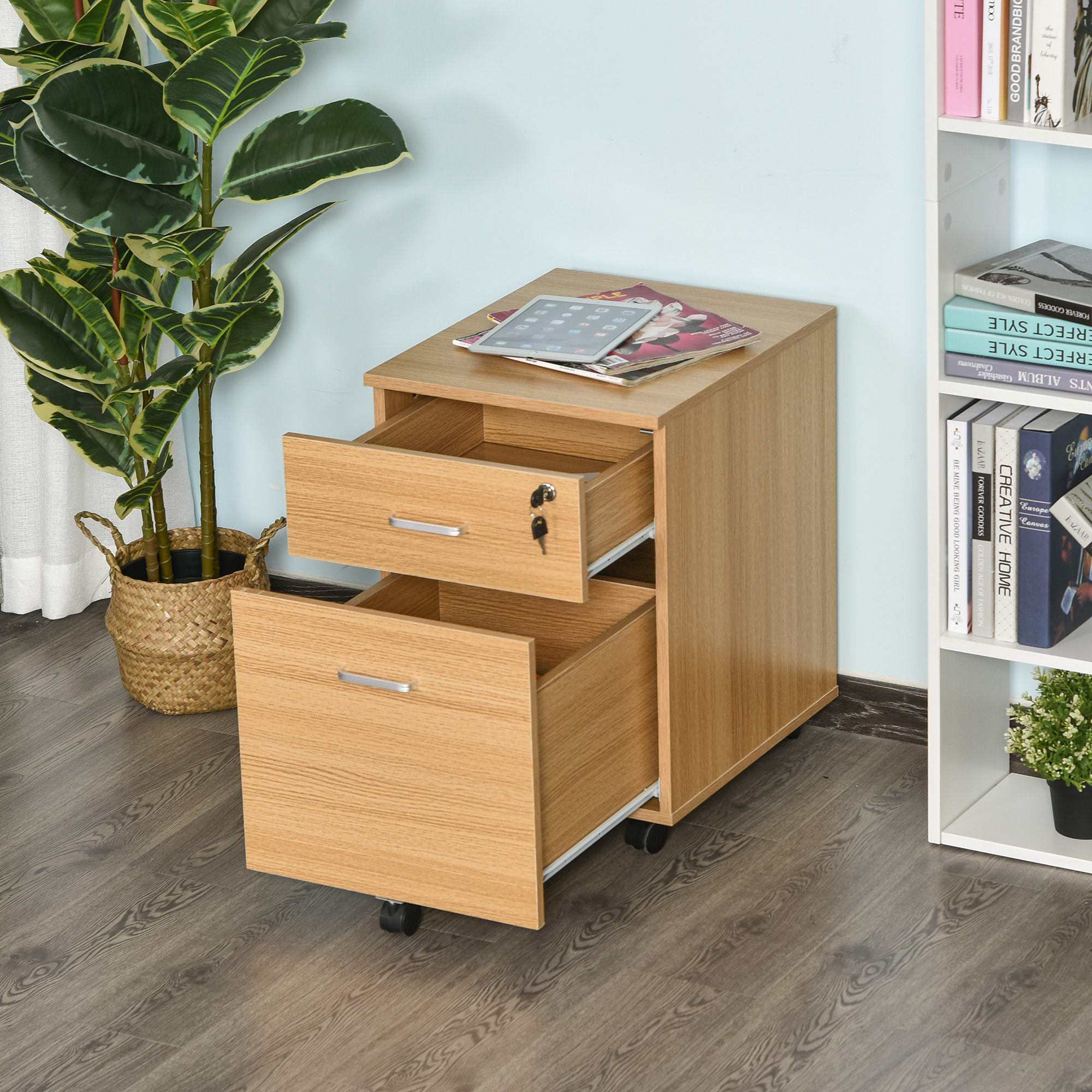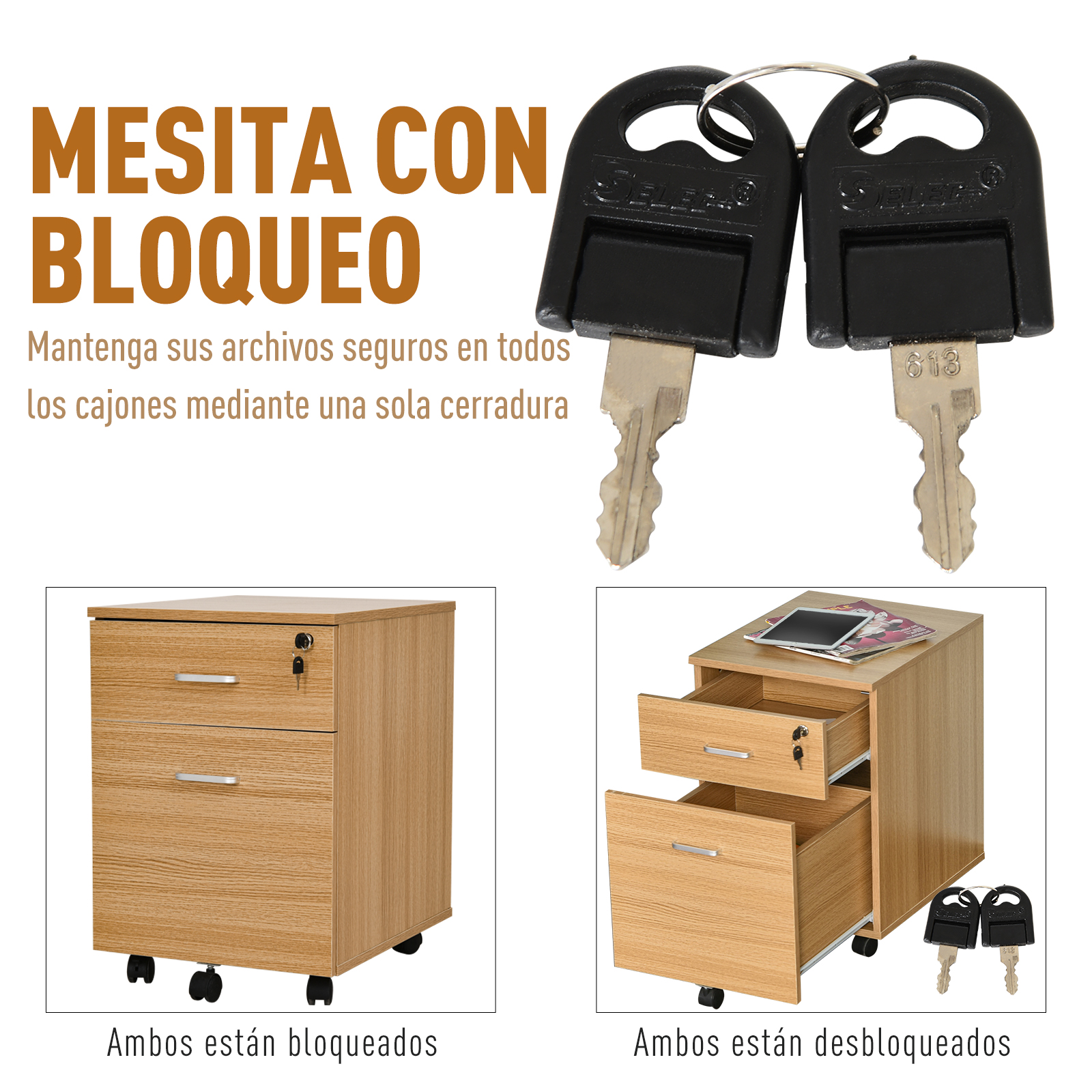 Vinsetto Cajonera de Oficina con Ruedas Mueble Archivador con 2 Cajones para Documentos en Tamaño A4 Cerradura y Llaves 40x49x58 cm Natural