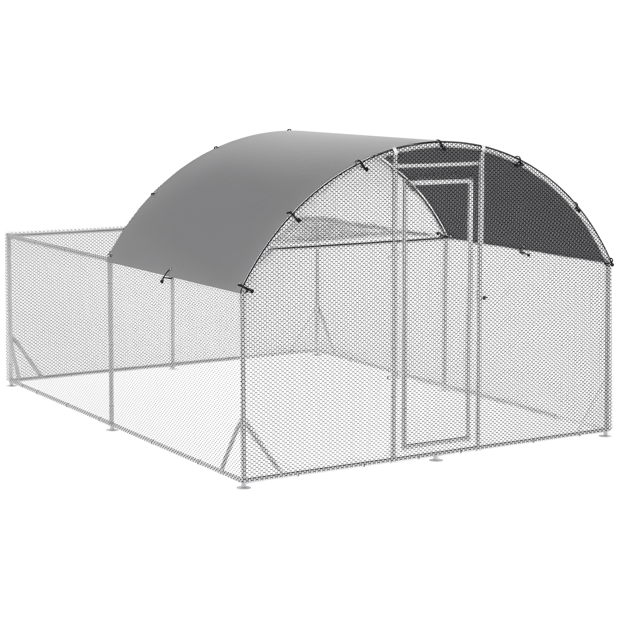 PawHut Gallinero Exterior Grande 380x280x195 cm Jaula para 10-12 Gallinas de Acero Galvanizado con 2 Pisos Cubierta de Tejado Puerta Corral para Pollos Conejos Patos Plata