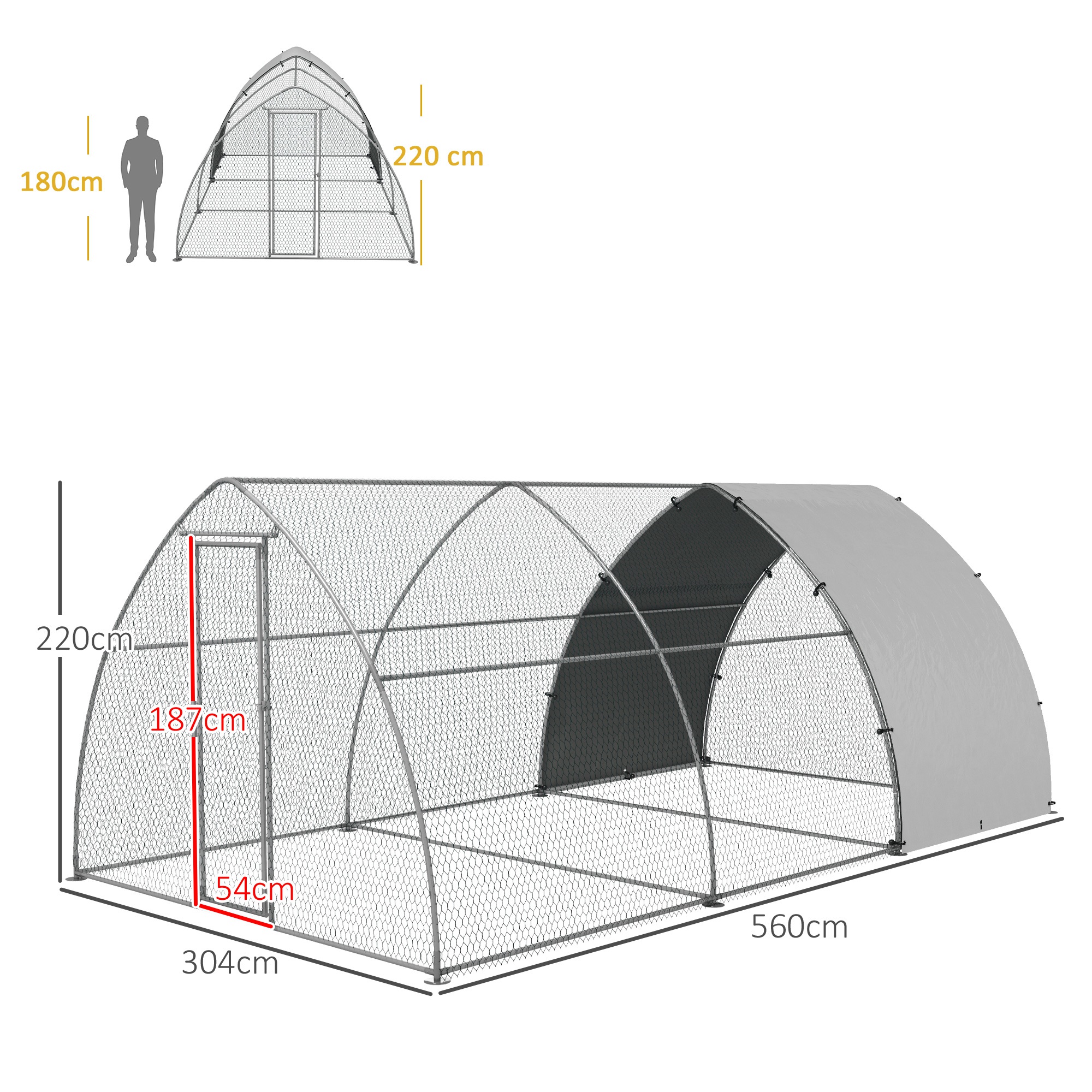 PawHut Gallinero para Exterior 304x560x220 cm Gallinero para Gallinas de Acero Galvanizado Cubierta de Tela Oxford Resistente a los Rayos UV e Impermeable para Patio Plata