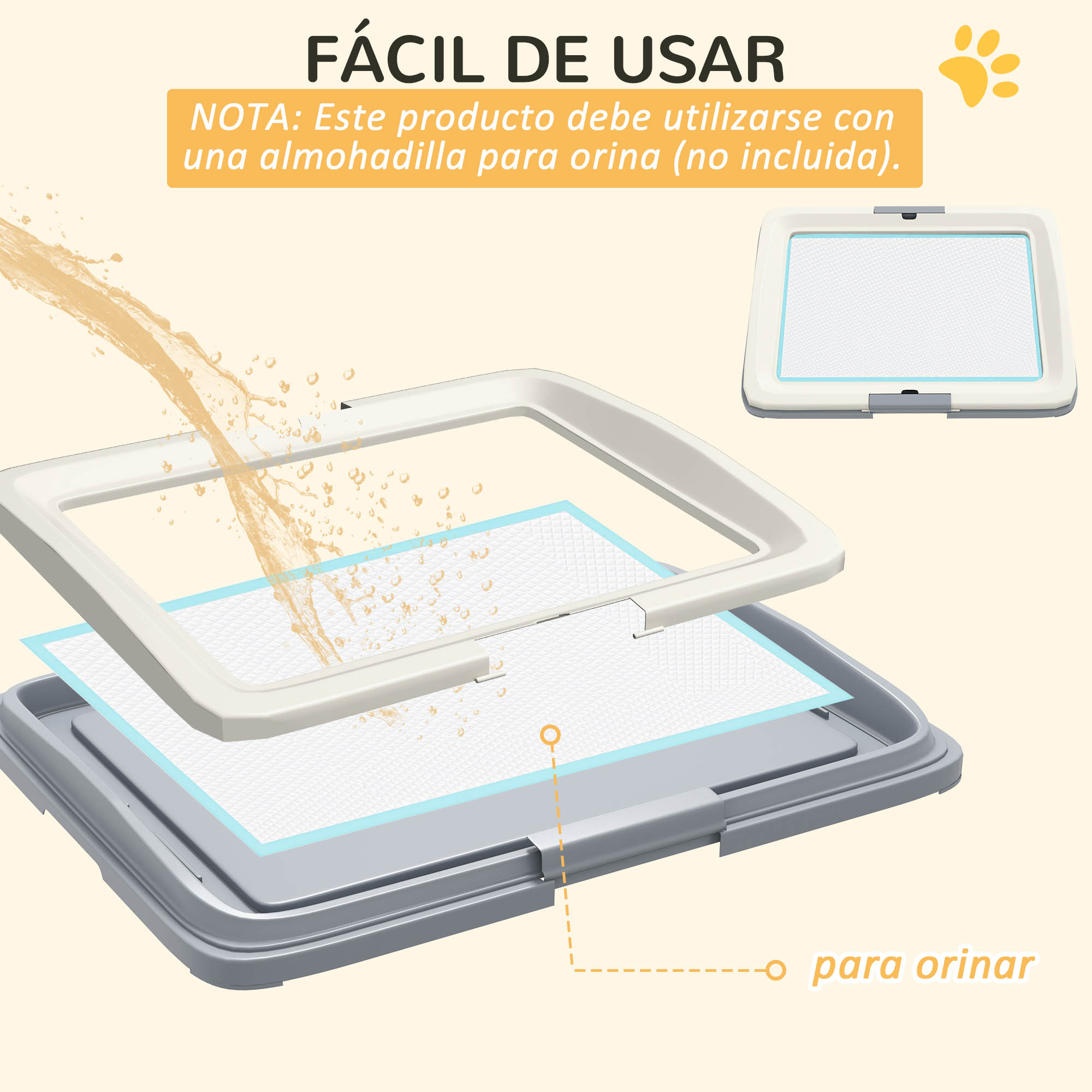 Explora la funcionalidad de este inodoro para perros de PawHut, perfecto para perros hasta 37 cm. Este arenero para perros cuenta con un diseño fácil de limpiar, con bandeja y marco desmontables para un mantenimiento sin complicaciones. La alfombrilla antideslizante asegura que el urinario para perros se mantenga firmemente en su lugar. Perfecto para uso tanto interior como exterior, facilita el entrenamiento de tu mascota, proporcionando una solución higiénica para tu amigo peludo. Características: Bandeja sanitaria para perros para facilitar el entrenamiento de tu mascota Permitiendo que tu perro haga sus necesidades de manera cómoda y ordenada Tamaño adecuado para perros de hasta 37 cm de longitud Limpieza sencilla con bandeja y marco desmontables Alfombrilla antideslizante bajo la bandeja para mayor estabilidad Material sin olor que facilita el entrenamiento sin estrés No requiere montaje Nota: Este producto debe usarse con una almohadilla absorbente de orina (no incluida) Especificaciones: Color: gris, blanco Material: PP Medidas totales: 63×48,5×6 cm (LxANxAL) Espacio interior: 49×34 cm (LxAN) Empapador de orina recomendado: 60×45 cm (LxAN)(no incluido) Referencia: D07-050V01GY El paquete incluye: ● 1 x Inodoro para perros; ● 1 x Manual de instrucciones