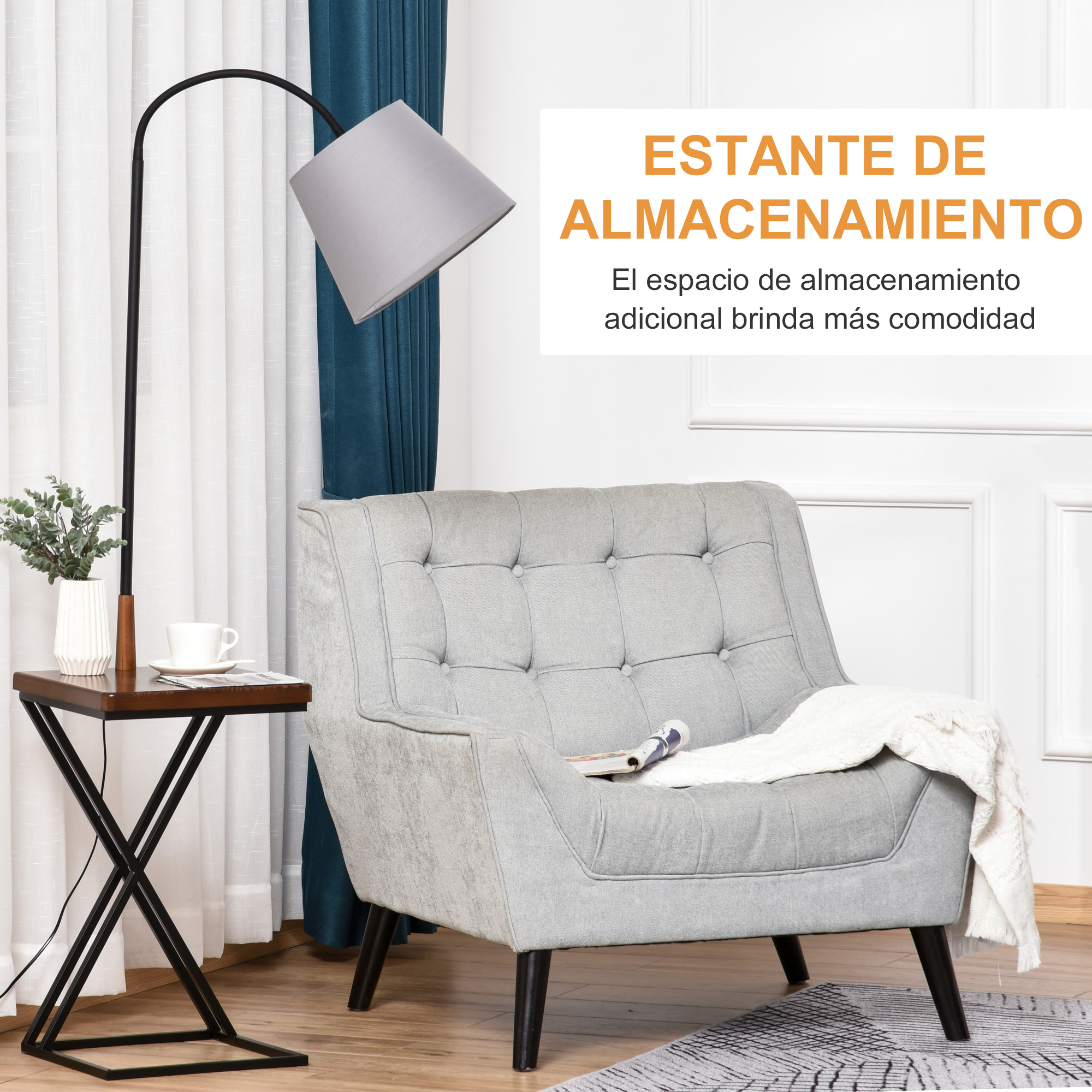 Esta lámpara de pie con mesita de HOMCOM tiene un foco práctico y elegante, además de flexible. Podrás orientar la luz tanto hacia arriba como hacia abajo, adaptándola así a tus necesidades. La base para bombillas es E27, la bombilla no está incluida en el paquete. Da el toque definitivo a la decoración de tu casa apostando por una buena iluminación. Comprando esta lámpara de pie con espacio de almacenaje no sólo tendrás una luz de ambiente perfecta, sino que te sirve como mesa auxiliar. ¡No la dejes escapar! Características: El diseño elegante y clásico de esta lámpara con mesita se adapta a cualquier lugar La pantalla es flexible, por lo que puede orientarse hacia arriba o hacia abajo Tendrás una mesa auxiliar extra para colocar objetos pequeños, como un reloj, el teléfono y más La estructura en X y su base proporcionan la estabilidad que la lámpara necesita Interruptor de pie para controlar fácilmente el encendido / apagado Cable de alimentación de 1,8 m Enchufe estándar europeo Especificaciones: Color: negro, marrón, gris Material: acero, madera de pino, tela T/C Medidas totales: 36x36x165 cm (LxANxAL) Medidas de la pantalla: Ф22xФ32×20 cm (Diam.xDiam.xAL) Medidas de la base: 36×36 cm (LxAN) Medidas del estante: 36x36x62 cm (LxANxAL) Capacidad de carga: 10 kg Base de bombilla E27 (bombilla no incluida) Potencia de la bombilla: 40 W Certificación: CE-LVD, EMC, RoHS Referencia: B31-176 El paquete incluye: 1 x lamd lamp; 1 x manual;