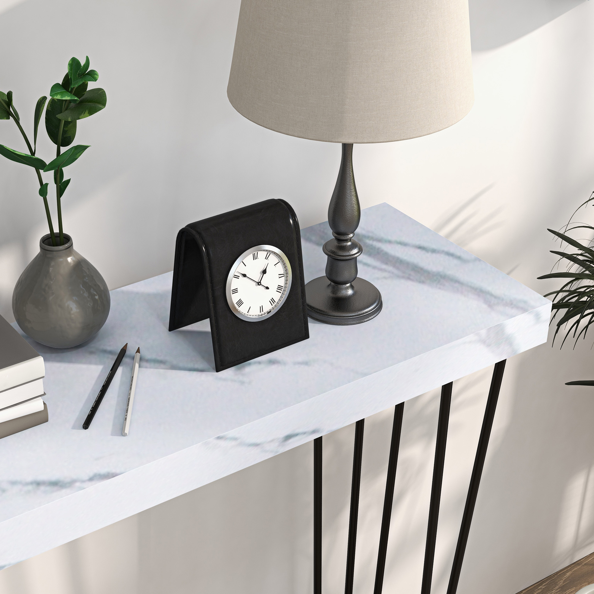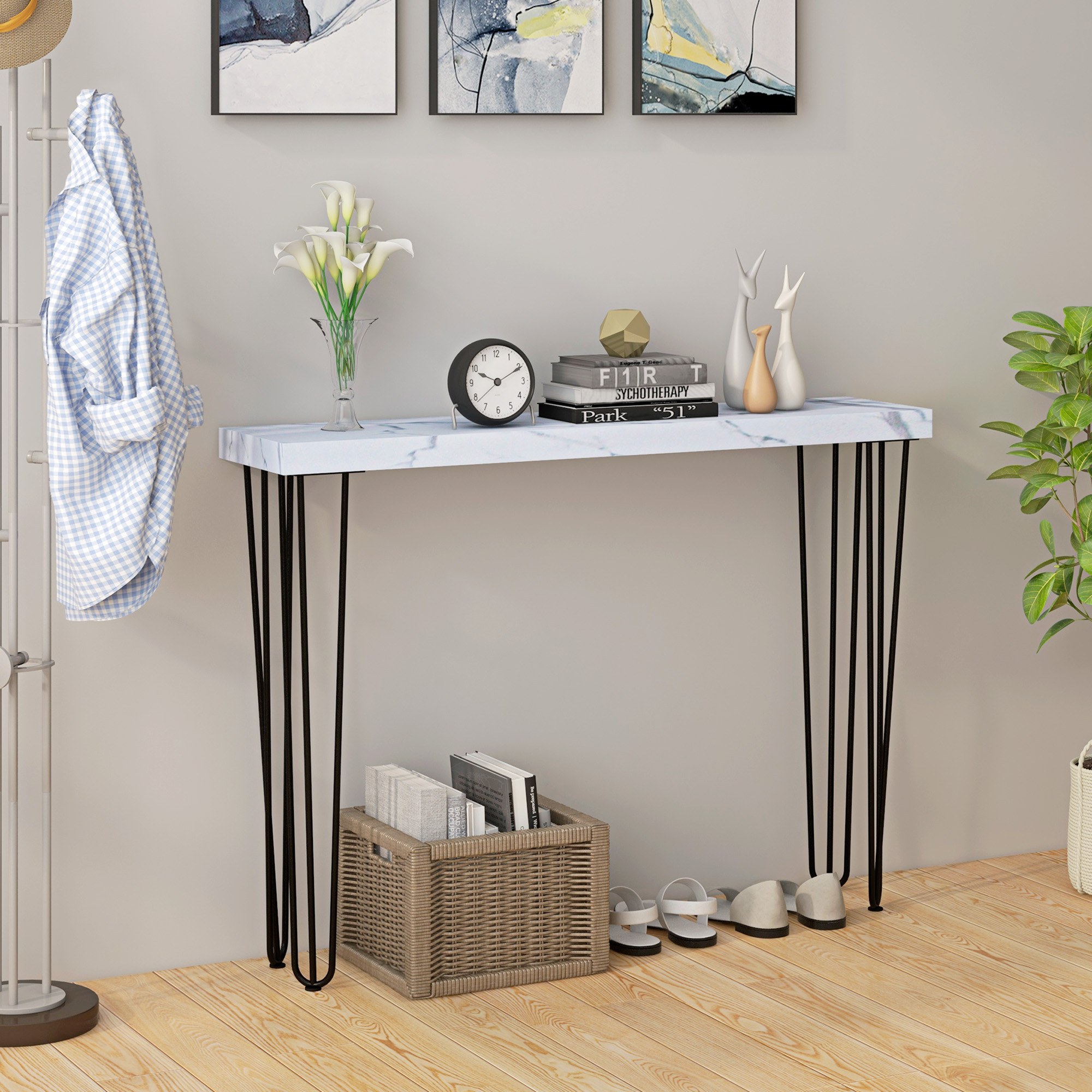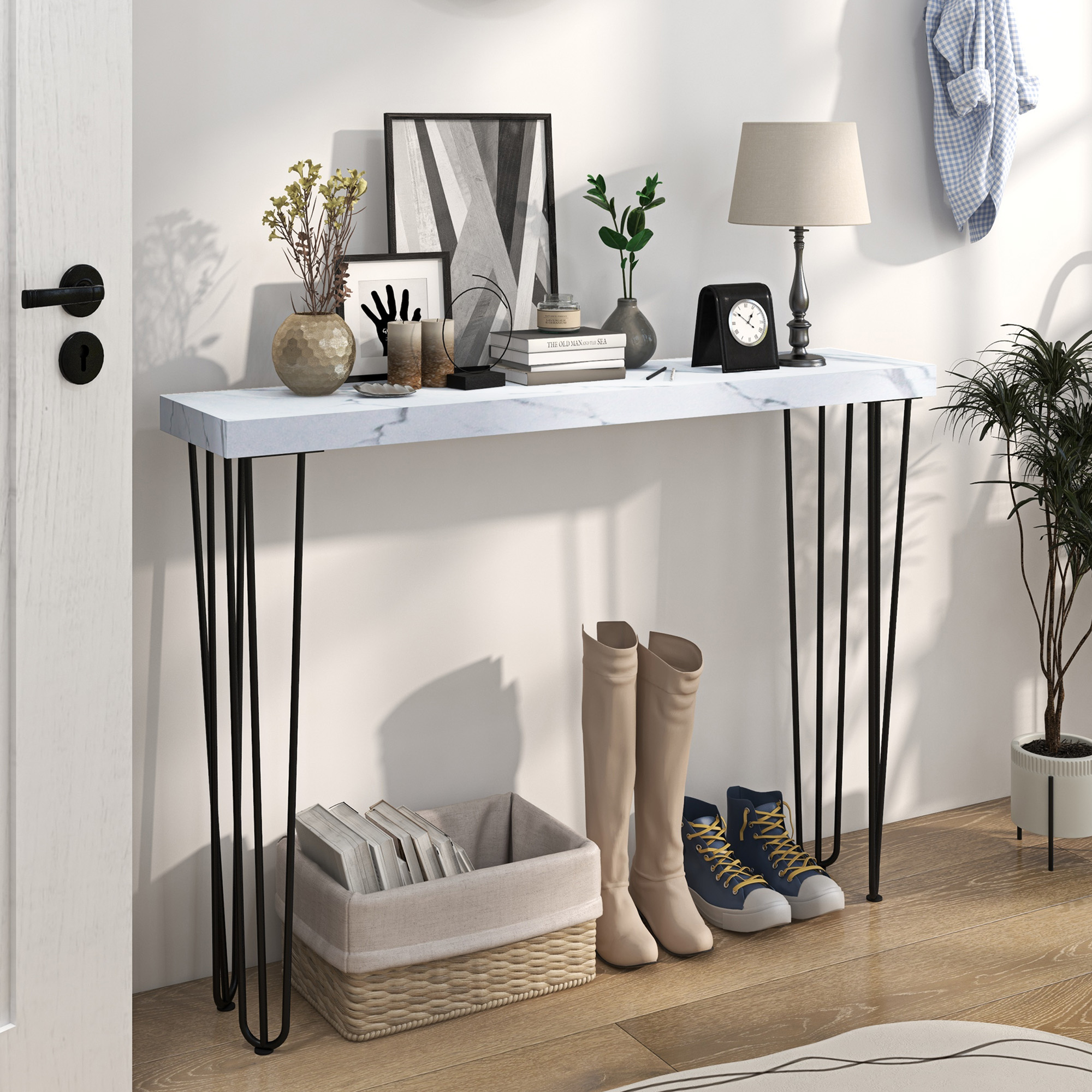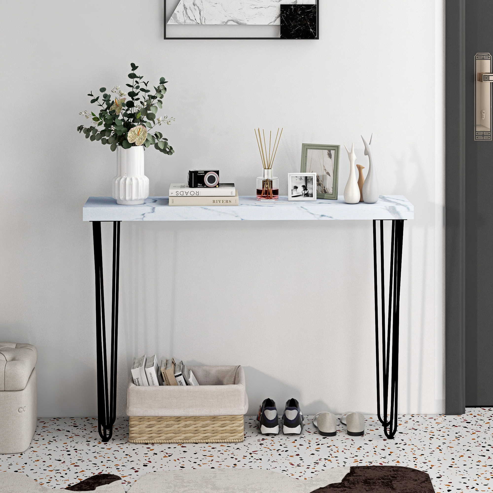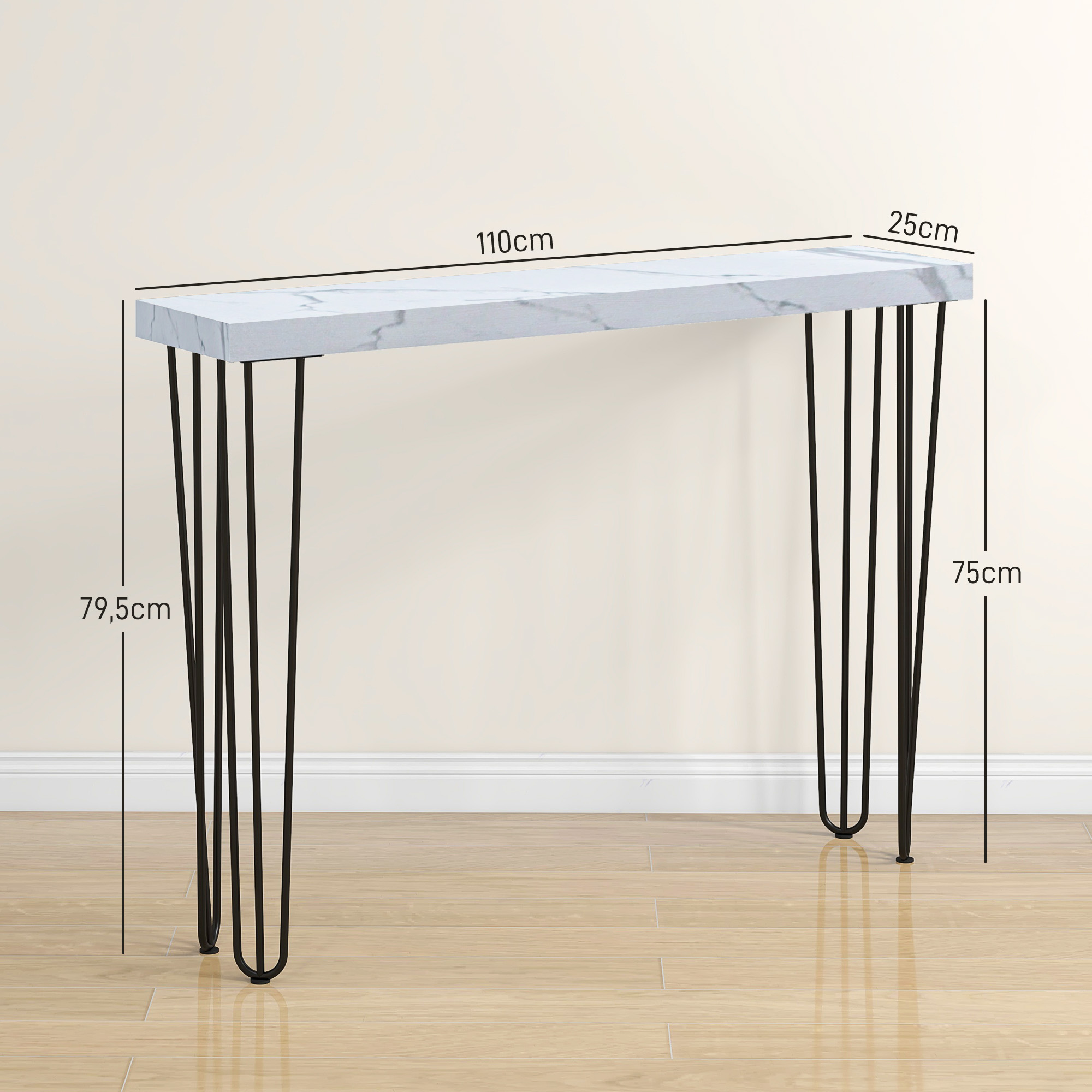 HOMCOM Mesa Consola Moderna Mesa de Entrada con Patas de Acero Antivuelco Mueble de Recibidor para Salón Pasillo 110x25x79,5 cm Blanco