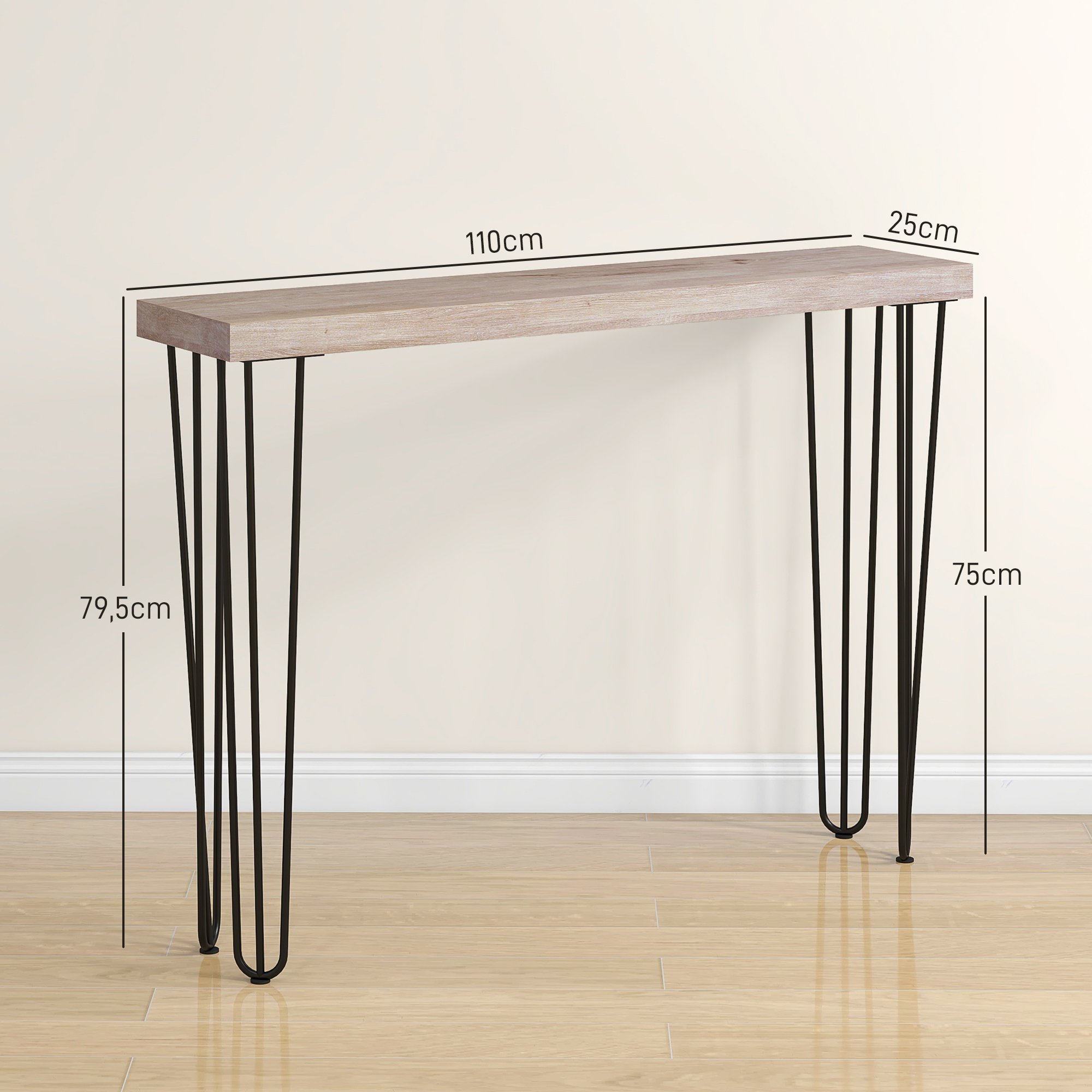 HOMCOM Mesa Consola Moderna Mesa de Entrada con Patas de Acero Antivuelco Mueble de Recibidor para Salón Pasillo 110x25x79,5 cm Natural