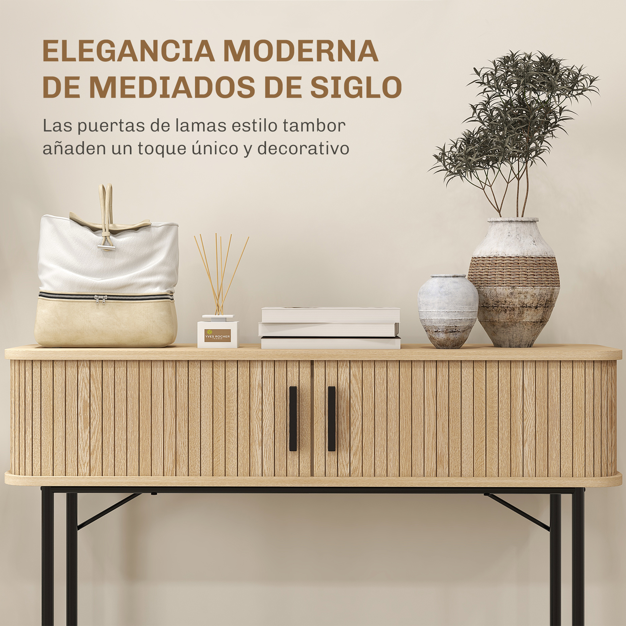 HOMCOM Mesa Consola Vintage Mueble para Recibidor con 2 Puertas Correderas de Tambor y Compartimientos Consola para Recibidor Entrada Pasillo 100x30x80 cm Roble