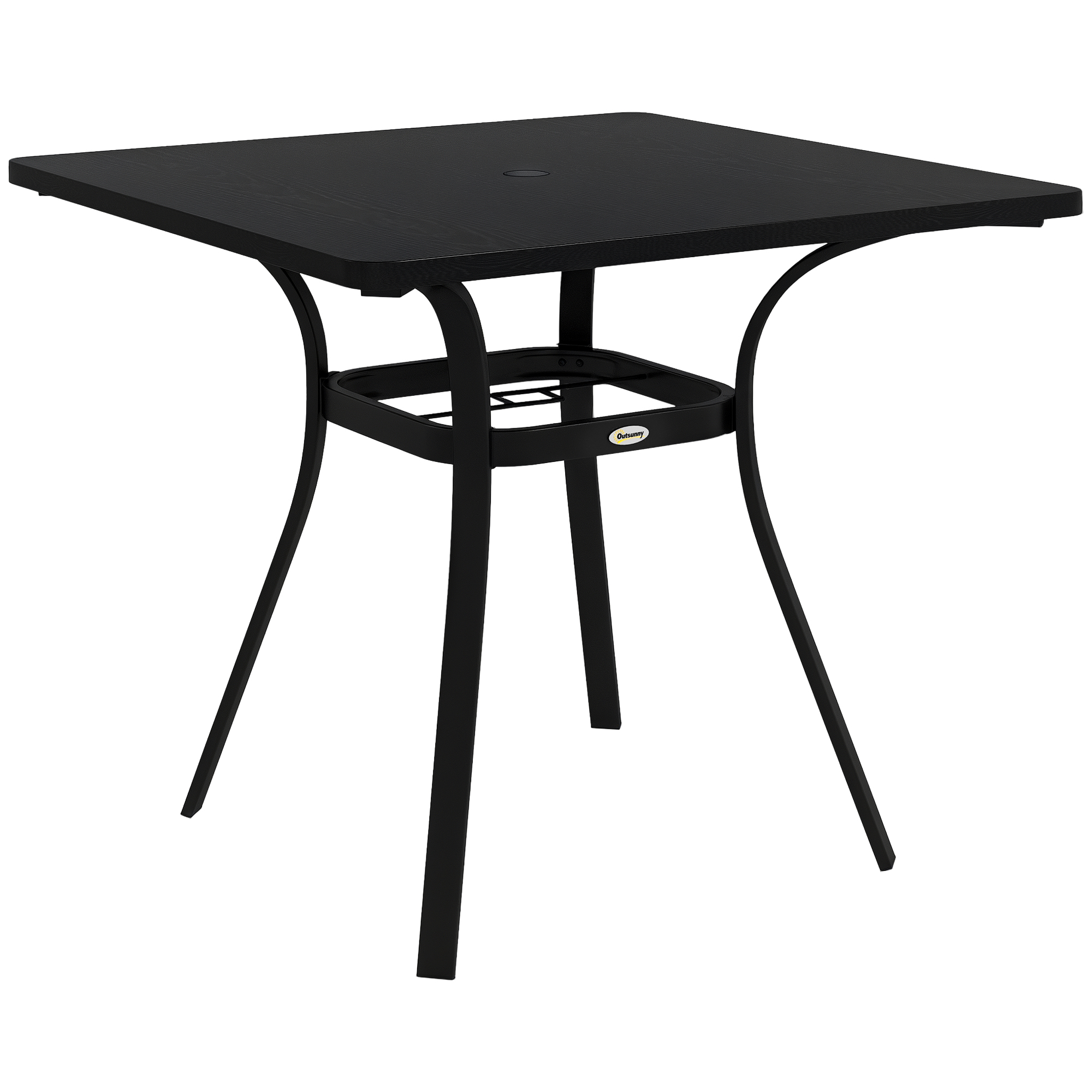 Outsunny Mesa de Jardín con Orificio para Sombrilla Mesa de Terraza con Estructura de Acero Tablero de Metal y Almohadillas para Pies para Balcón Patio 80x80x72 cm Negro