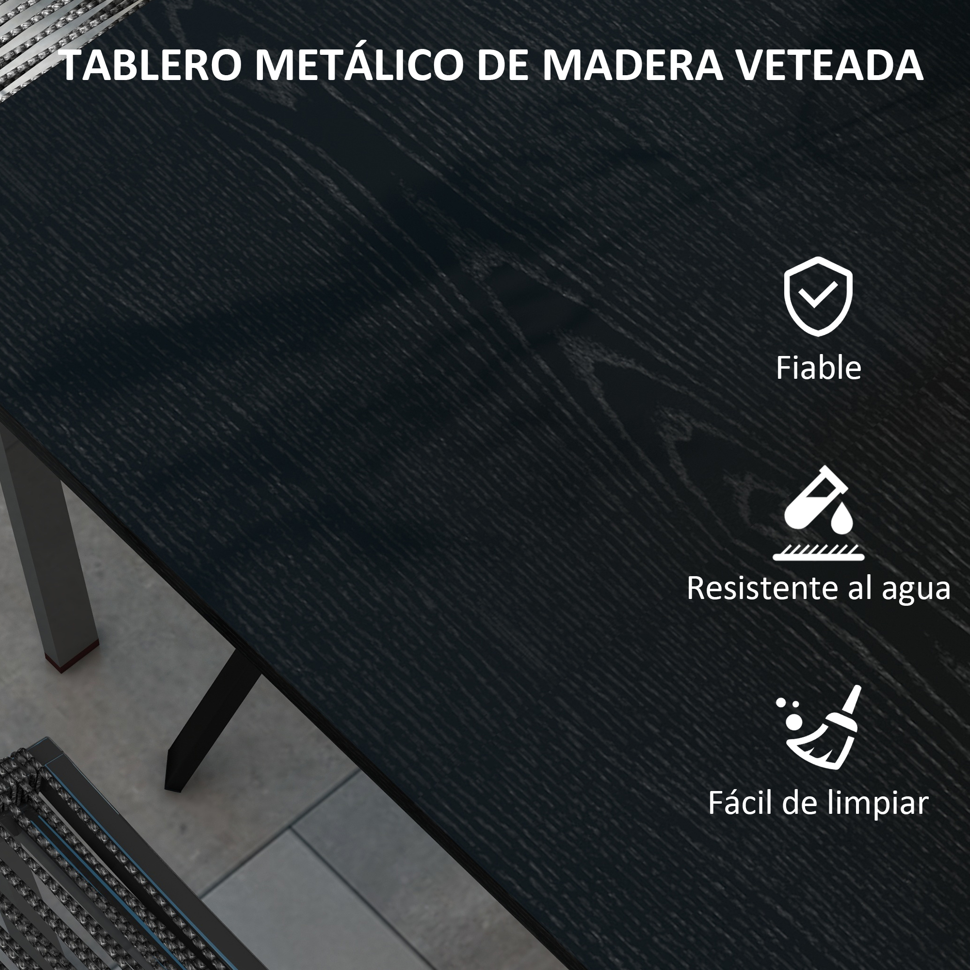 Decora tu espacio al aire libre con esta mesa de exterior de Outsunny, fabricada con estilo y funcionalidad para convertirse en el complemento ideal. Con un diseño espacioso, puede alojar cómodamente hasta cuatro personas, ideal para comidas o aperitivos al aire libre. Su estilo moderno añade un toque contemporáneo, mientras que su resistente construcción de acero ofrece robustez y durabilidad a la intemperie. Gracias a su encimera de metal podrás mantenerla limpia e impecable en todo momento. Características: Espaciosa mesa de jardín en el que caben hasta cuatro personas a su alrededor Fabricada en acero, ofrece una estructura robusta y resistente a la intemperie Diseñada con una encimera metálica fácil de limpiar Su estilo moderno se integrará a tu espacio exterior, dándole un atractivo toque decorativo a tu jardín Cuenta con almohadillas en los pies para evitar arañazos y marcas en el suelo Adecuada para interiores y exteriores, como jardín, patio, balcón o patio Requiere montaje Especificaciones: Color: negro Material: acero Medidas totales: 80x80x72 cm (LxANxAL) Orificio para la sombrilla: Ø4 cm Carga máxima: 70 kg Referencia: 84G-369V00BK El paquete incluye: ● 1 x Mesa de jardín; ● 1 x Manual de instrucciones