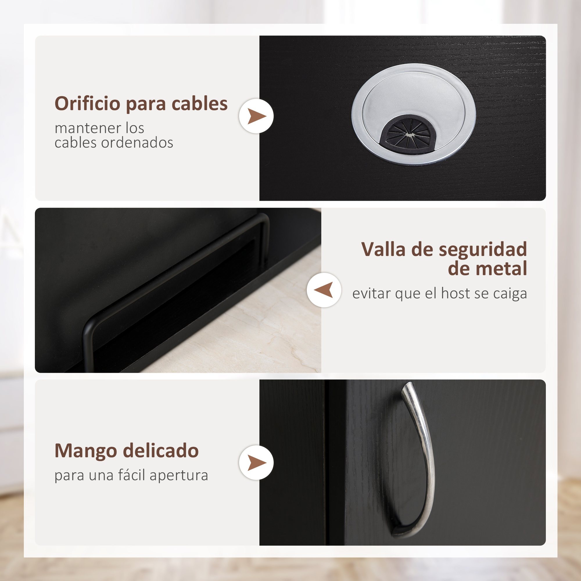 HOMCOM Mesa Escritorio para PC Mesa de Ordenador con Estantes abiertos y baldas Ajustables Armario Soporte para CPU y Bandeja Extraíble 120x60x74 cm Negro