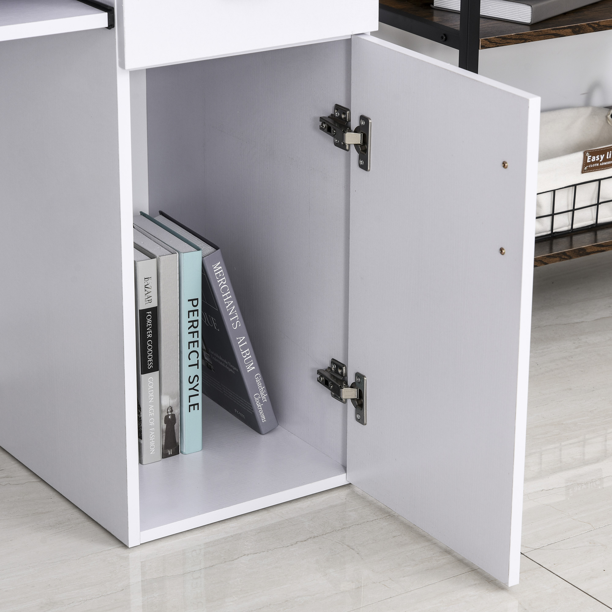 HOMCOM Mesa Escritorio para PC Mesa de Ordenador con Estantes abiertos y baldas Ajustables Armario Soporte para CPU y Bandeja Extraíble 120x60x74 cm Blanco