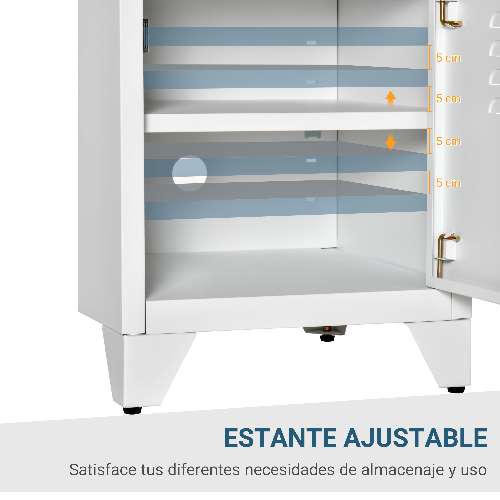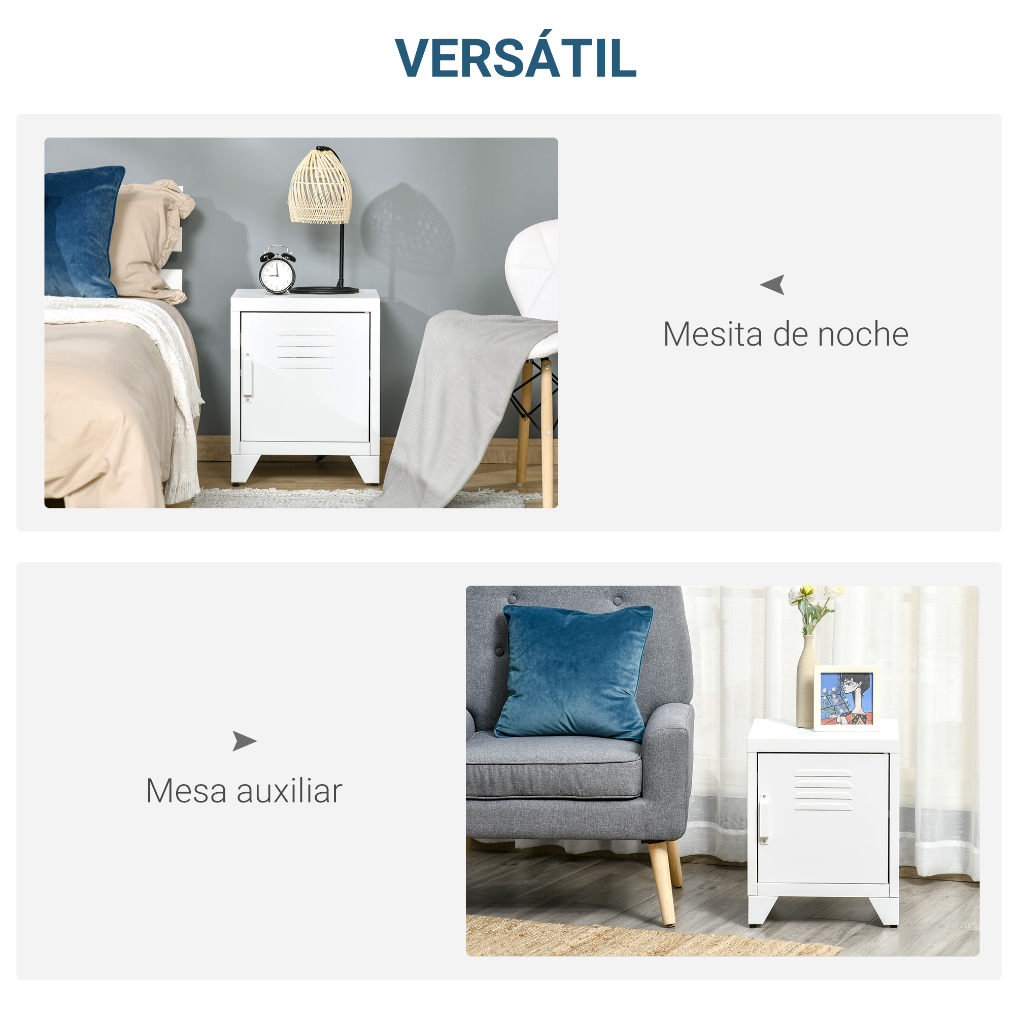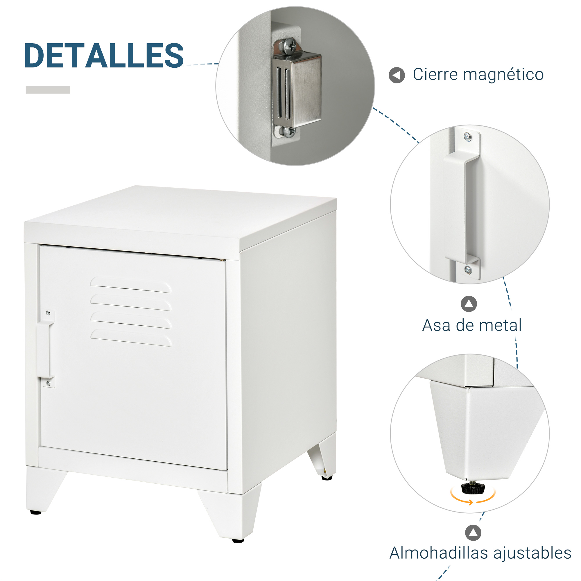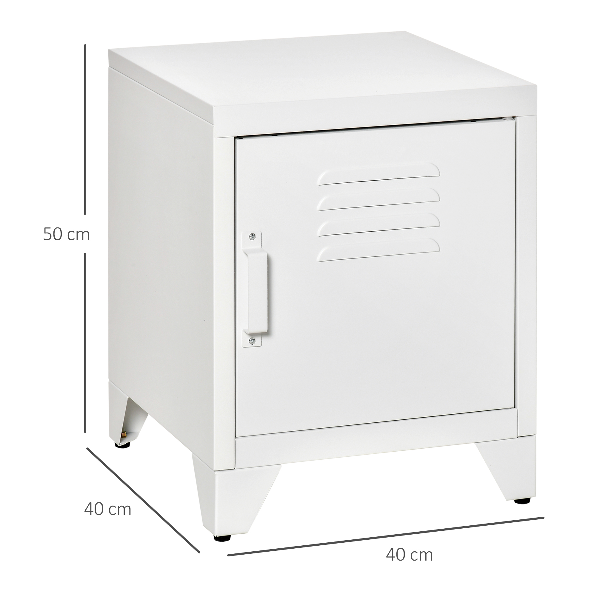 HOMCOM Mesilla de Noche de Metal para Dormitorio Mesita Auxiliar con 1 Puerta y Estante Interior Ajustable en 5 Posiciones para Salón Oficina 40x40x50 cm Blanco