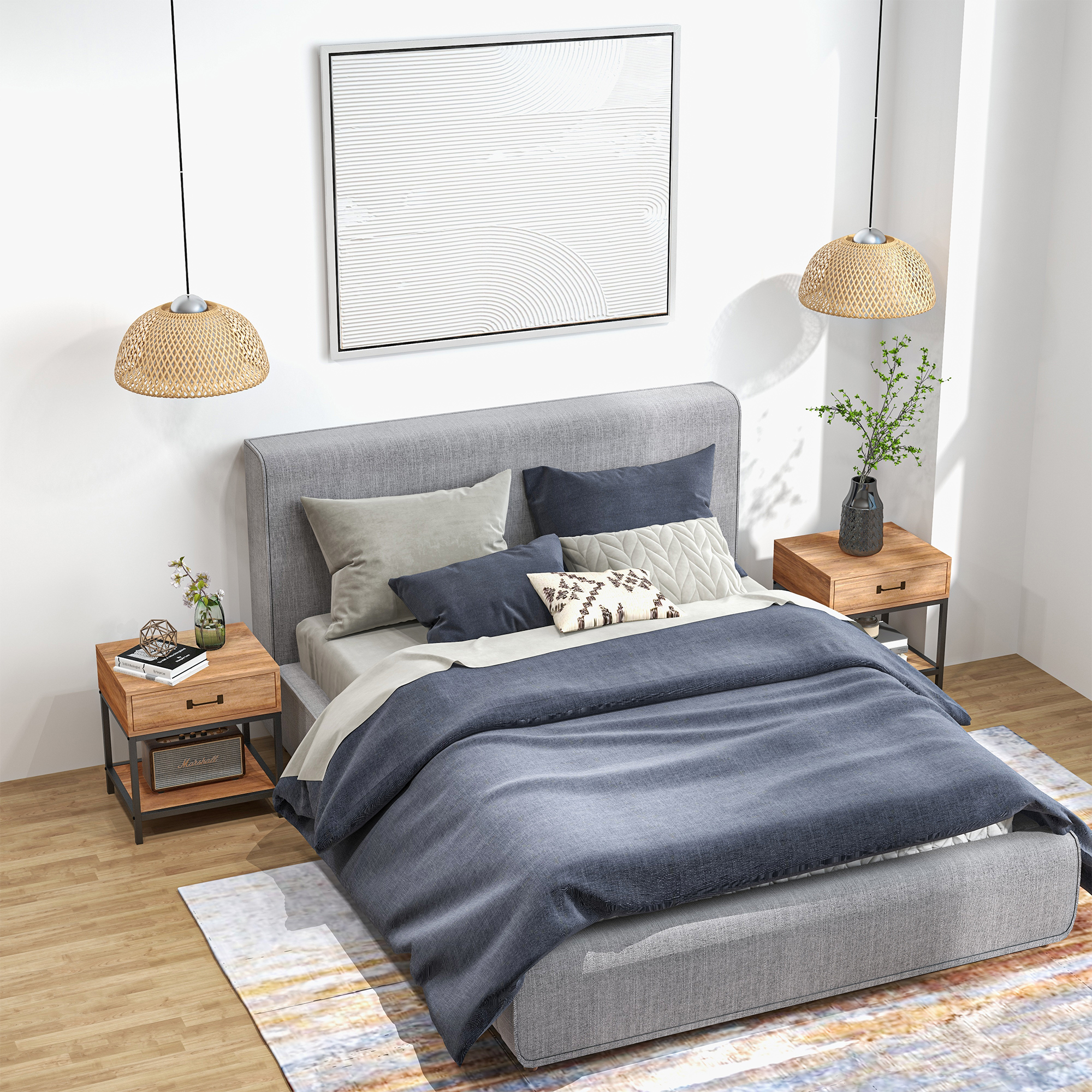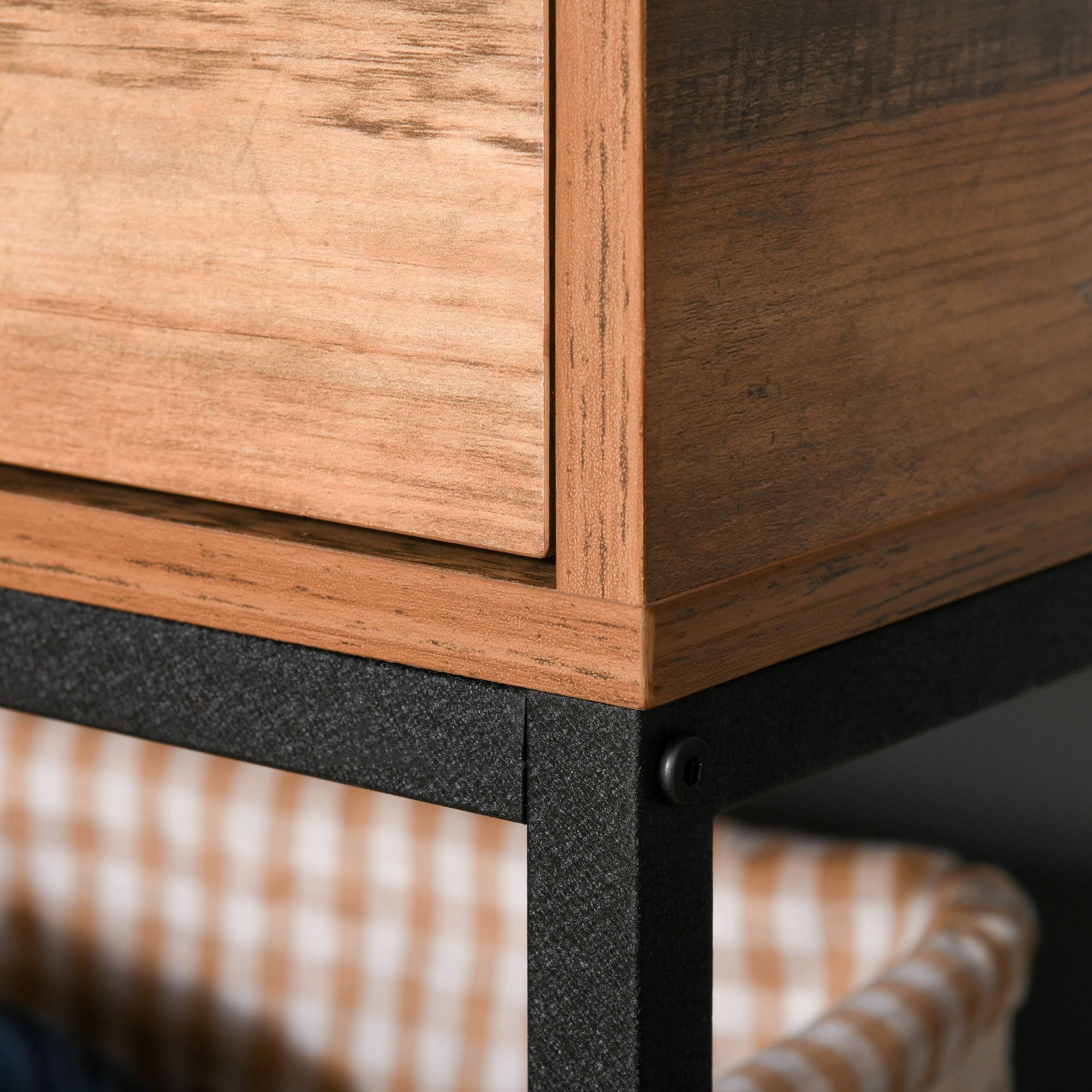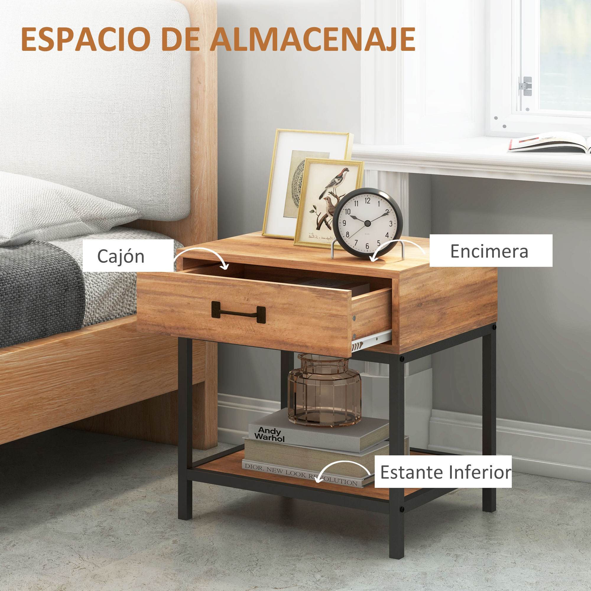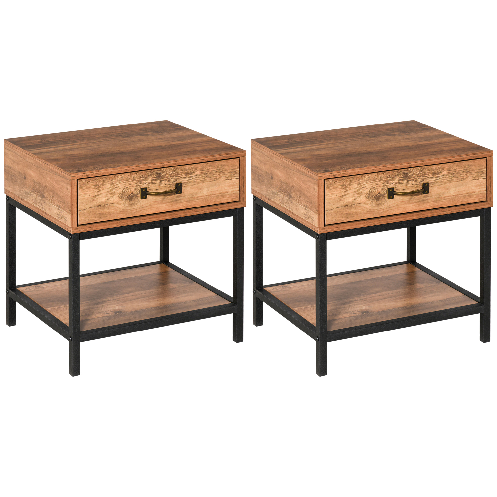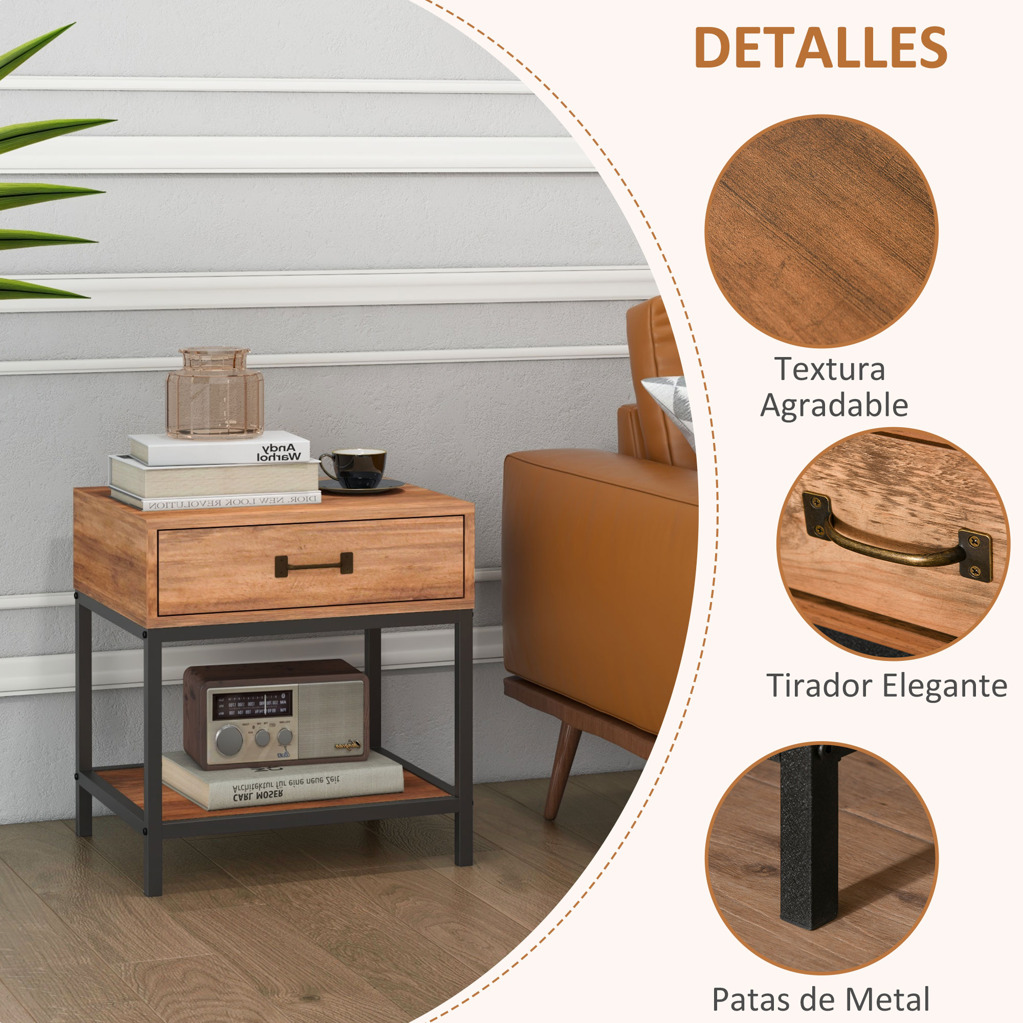HOMCOM Conjunto de 2 Mesitas de Noche Mesillas de Noche con Cajón y Estante Abierto Estilo Industrial Mesa Auxiliar para Dormitorio Sala 48x40x51,5 cm Teca y Negro