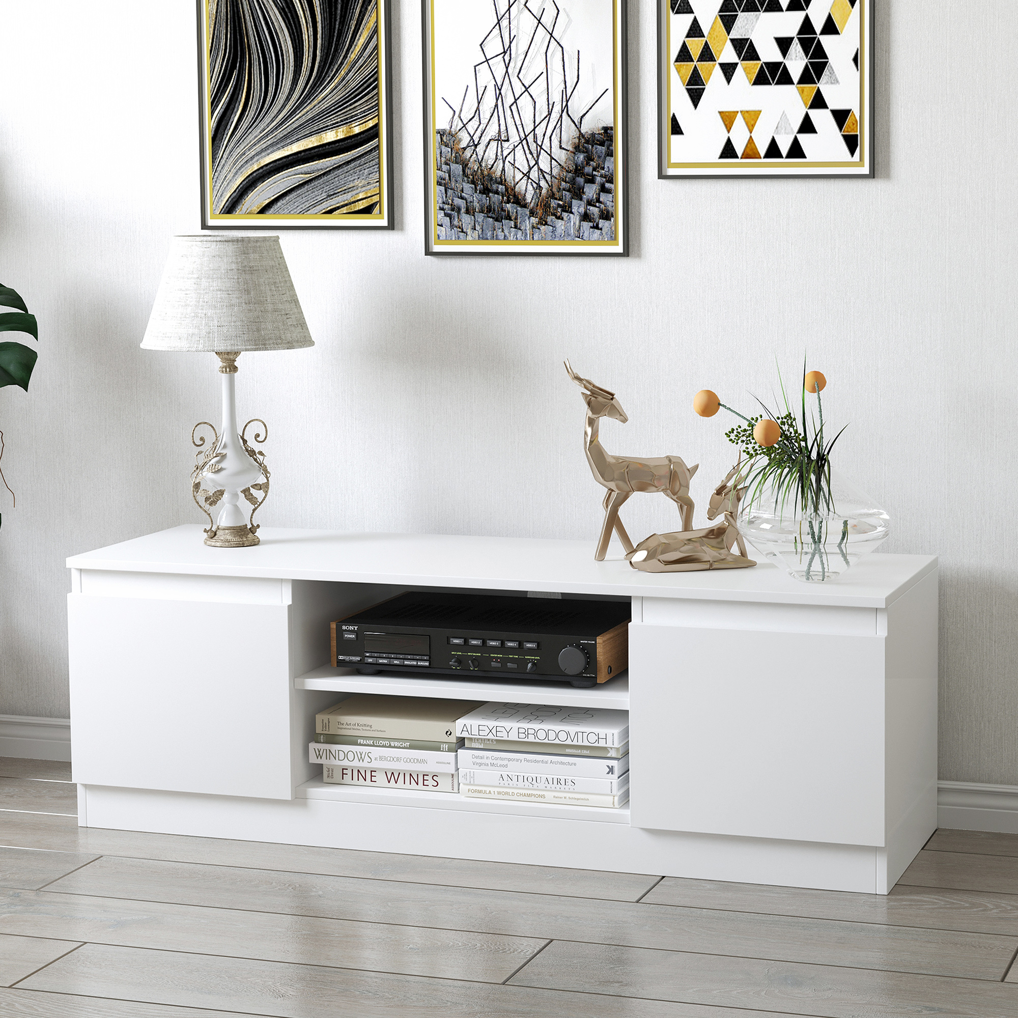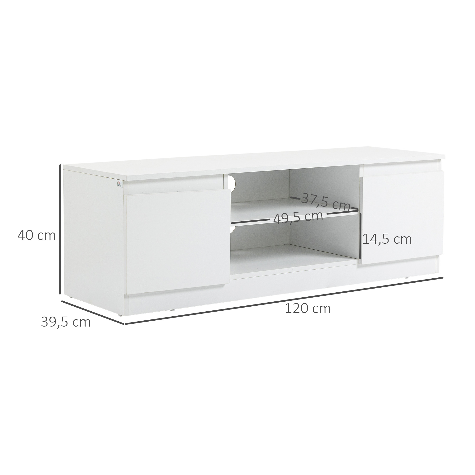 HOMCOM Mueble de TV Moderno Mesa de TV de Salón con 2 Puertas 2 Estantes Abiertos Mueble para Televisores de 55 Pulgadas 120×39,5×40 cm Blanco