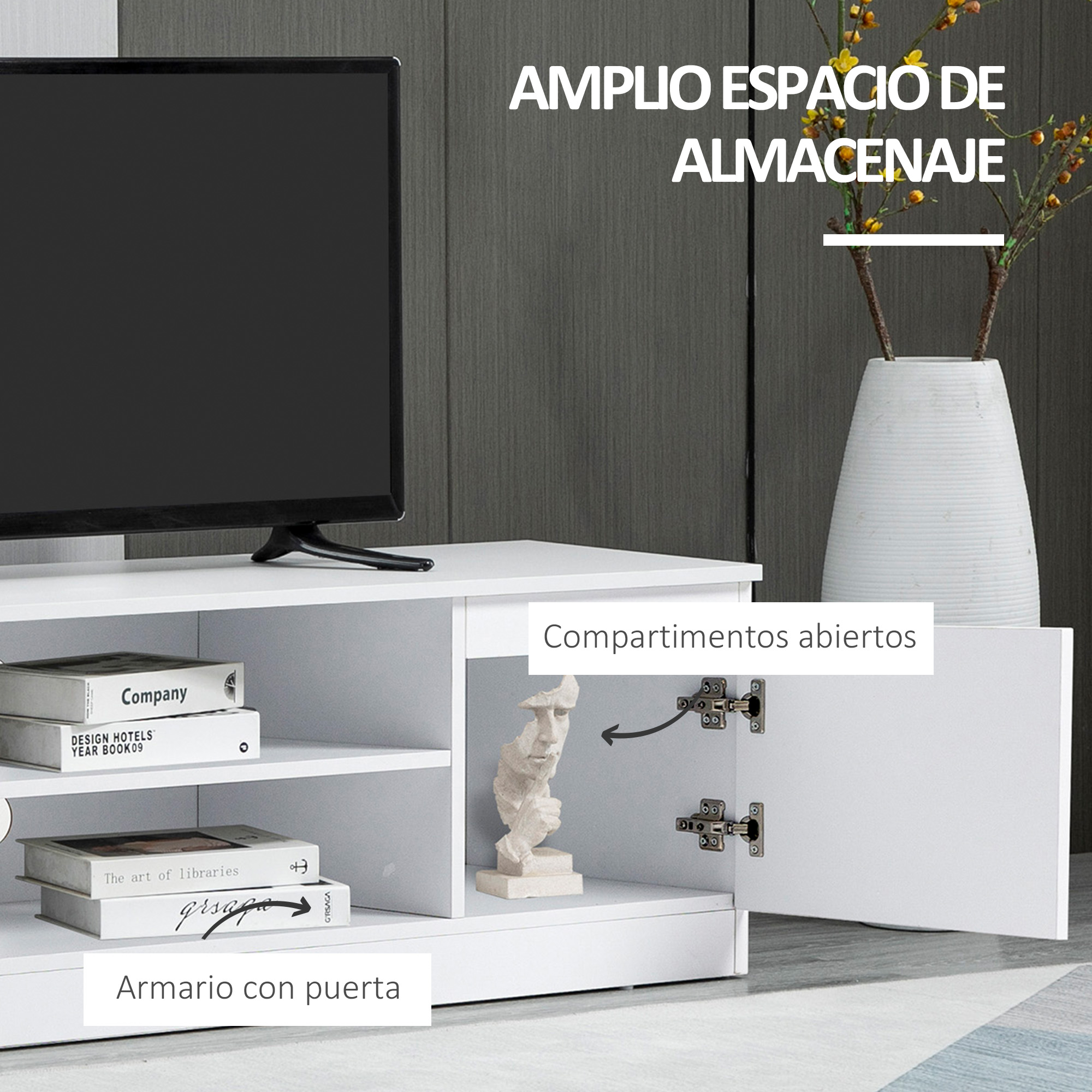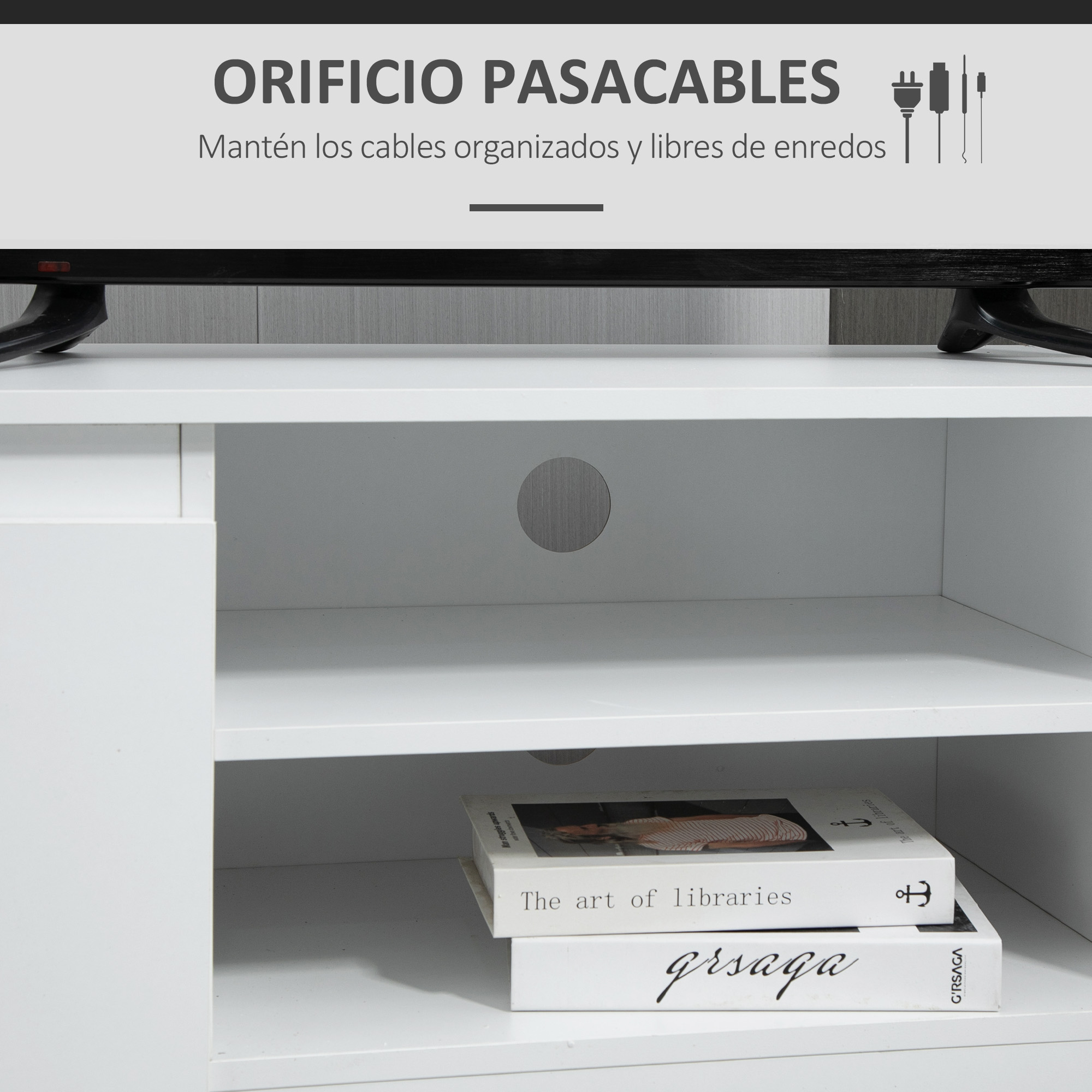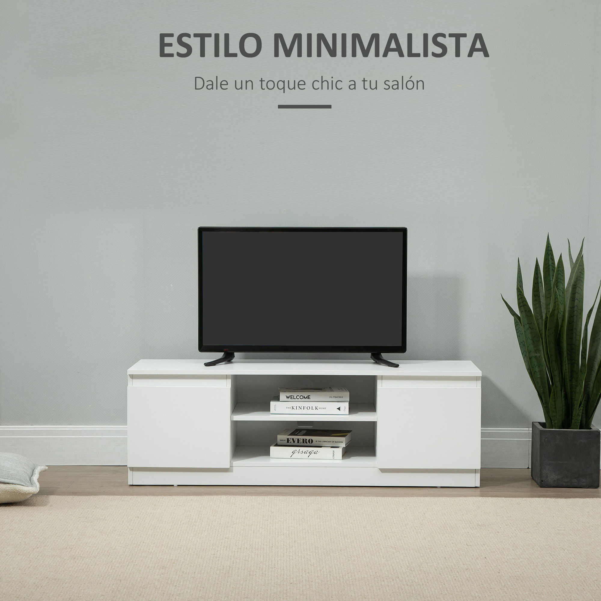 Dale un toque elegante y moderno a tu salón, dormitorio o sala de entretenimiento con este increíble mueble para TV de HOMCOM. Hecho de melamina, este mueble puede soportar hasta 40 kg, siendo ideal para tus dispositivos electrónicos, libros y otros objetos. Con dos estantes abiertos y dos compartimentos con puertas, tendrás espacio de sobra para mantener todo organizado. Además, los pasacables en la parte trasera ayudan a mantener todos los cables organizados y fuera de la vista. Características: Mueble para TV compuesto de una amplia encimera y compartimentos abiertos y cerrados Perfecto para salas de estar, dormitorios y más La mesa para TV de 120 cm de longitud ofrece amplio espacio para tu televisor de pantalla plana y otras decoraciones Apto para televisores de hasta 55 pulgadas/140 cm en diagonal Incluye dos estantes abiertos y dos compartimentos con puertas para almacenar CDs, juegos u otros objetos Hecho de melamina de madera, ofrece un soporte resistente y estable para tu televisor Se requiere montaje Especificaciones: Color: blanco Material: melamina de madera Medidas totales: 120×39,5×40 cm (LxANxAL) Medidas del estante abierto: 49,5×37,5×14,5 cm (LxANxAL)(cada nivel) Medidas de los compartimentos: 32×37,5×24 cm (LxANxAL)(interior) Carga máxima: 40 kg (total), 20 kg (encimera), 5 kg (estante), 5 kg (armario) Referencia: 839-344 El paquete incluye: ● 1 x Mueble para TV; ● 1 x Manual de instrucciones