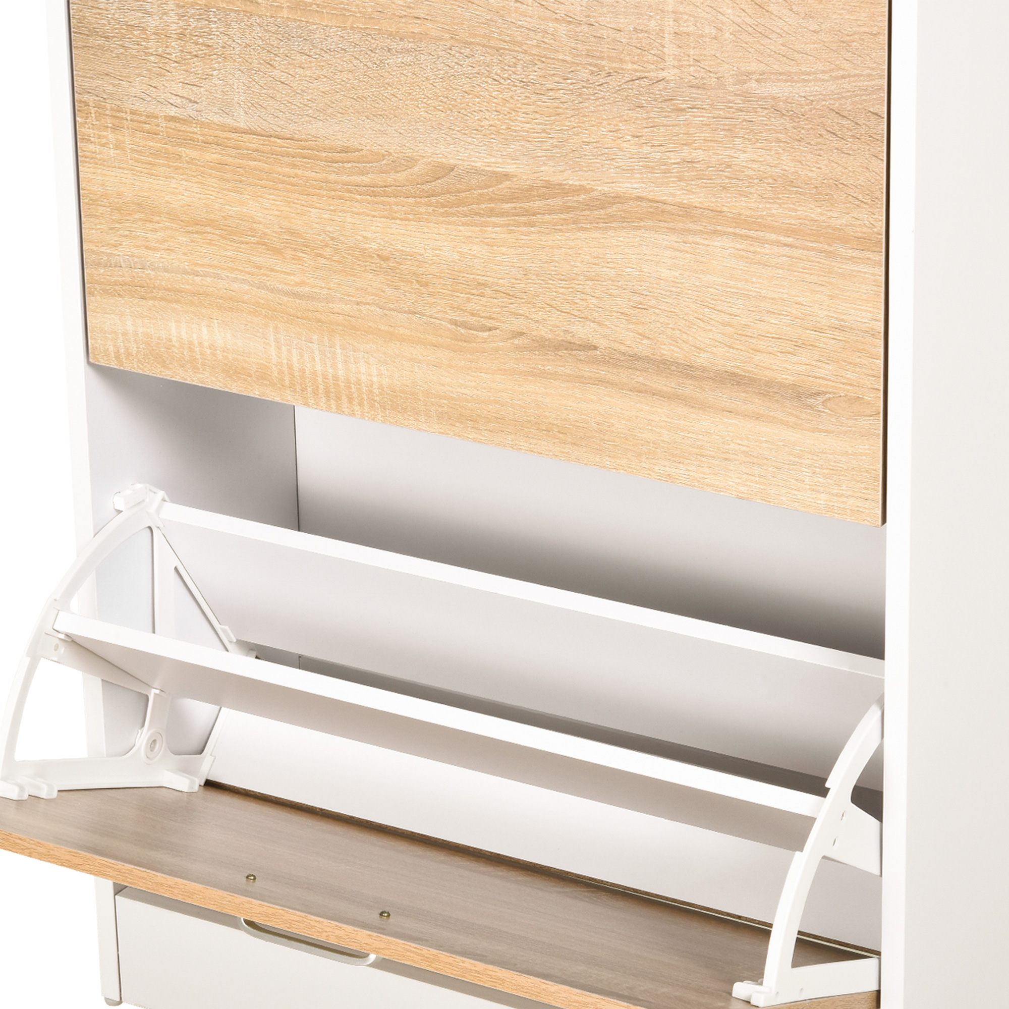 HOMCOM Mueble Zapatero Armario Zapatero con 3 Cajones Estante de Vidrio y Asa de Aluminio para Pasillo Entrada Carga 50 kg 60x24x105,5 cm Natural