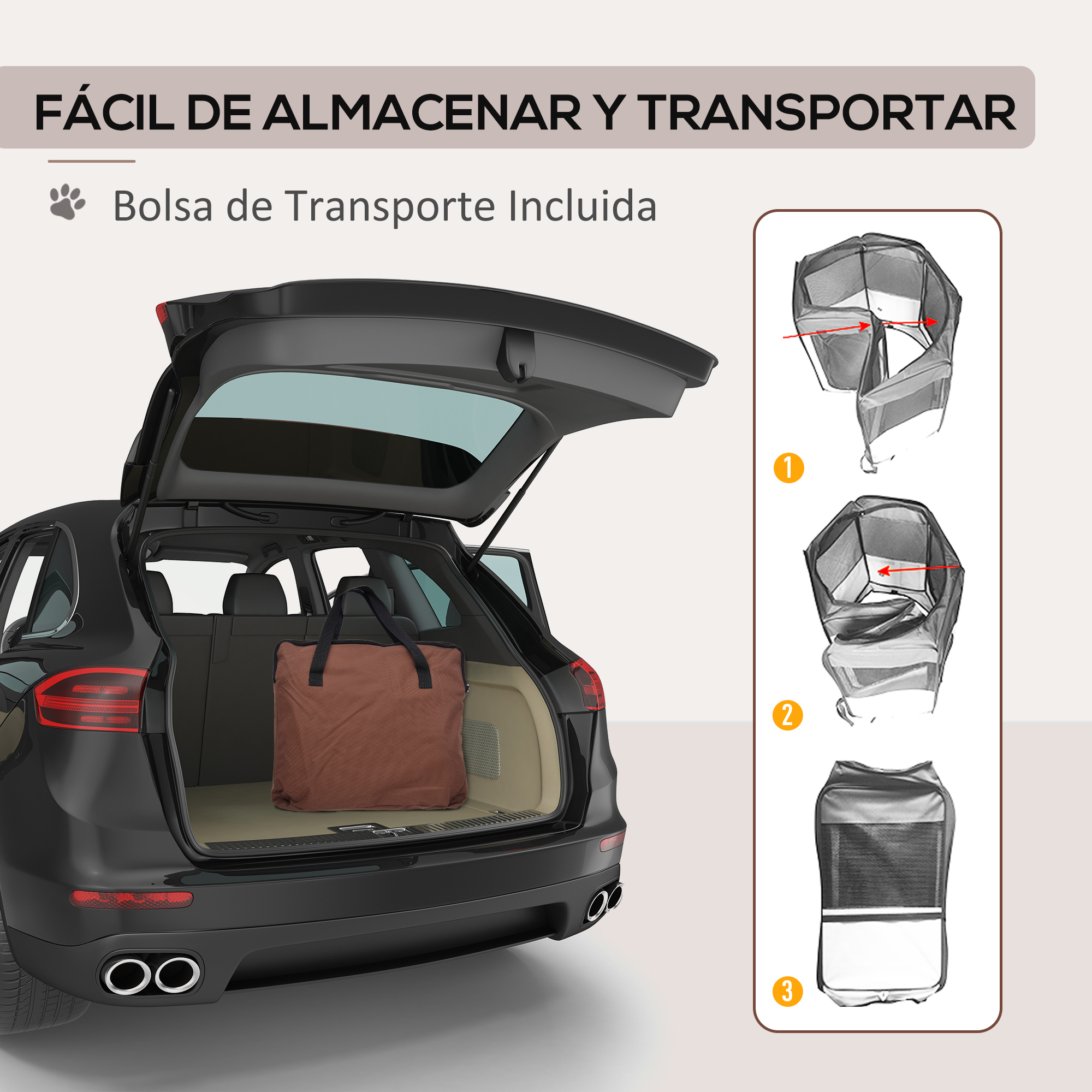 Este elegante parque para mascotas de PawHut es ideal para mantener a salvo a tu perro, gato o cualquier animal pequeño. Cuenta con una estructura de alambre de acero, paneles con tejido Oxford y malla transpirable para una mayor ventilación y visibilidad, 2 puertas con cremallera para facilitar el acceso al interior y una bolsa de transporte para mover cómodamente y llevarlo a todas partes. Es ideal para que tu amigo peludo juegue y se divierta mientras está seguro. Características: Parque para perros plegable y portátil, práctico para ir de viaje Fabricado con estructura de alambre de acero y tejido Oxford resistente al agua Fácil de abril y cerrar gracias a su diseño pop-up Tiene 2 puertas con cremallera para facilitar el acceso El tejido de malla proporciona una mayor ventilación y visibilidad Fácil de limpiar con un paño húmedo Con tapa (malla y tela Oxford) para proteger de otros animales y para que no salten los cachorros Con dos prácticos bolsillos (en el exterior) para el almacenamiento de utensilios útiles Se incluyen 4 estacas de tierra para fijar en el suelo para mayor estabilidad Se incluye una bolsa de transporte para guardarlo y transportarlo rápidamente Especificaciones: Color: marrón café, crema Material: alambre de acero, tela Oxford de 600D con revestimiento impermeable de PVC Medidas totales: Ø117×71 cm (DxAL) Forma: octogonal Medidas de un solo lado: 57,5×71 cm (LxAN) Tamaño de plegado: 61x75x7 cm (LxANxAL) Referencia: D1-0086 El paquete incluye: ● 1 x Parque para mascotas; ● 1 x Bolsa de transporte; ● 4 x Estaca de tierra;